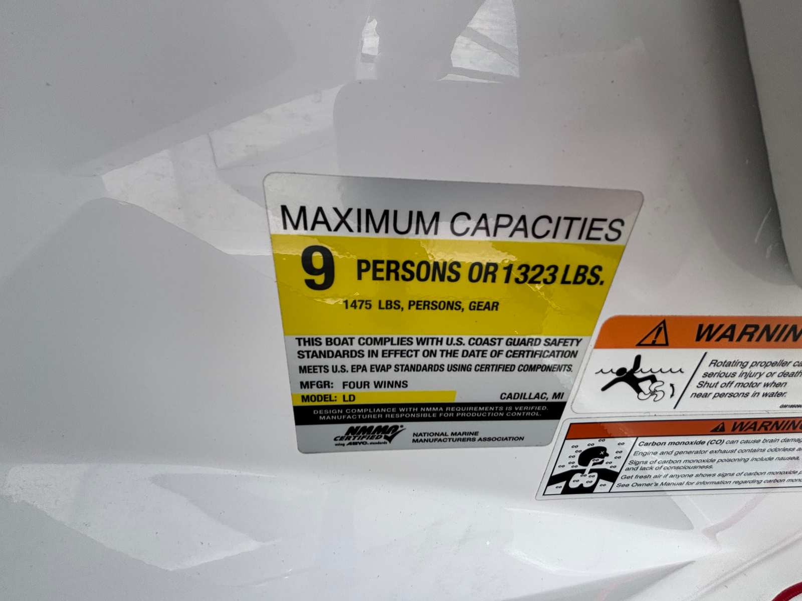 Under the hood, the Four Winns H1 is powered by a single engine delivering an impressive 250 horsepower. This robust engine ensures exhilarating acceleration, smooth handling, and reliable performance, whether you’re navigating calm lakes or coastal waters. The 250-horsepower engine provides plenty of power for towing water toys, wakeboarding, or simply enjoying a spirited ride across the waves. With responsive steering and a well-balanced hull, the H1 offers a confident and enjoyable driving experience for both seasoned boaters and newcomers alike.