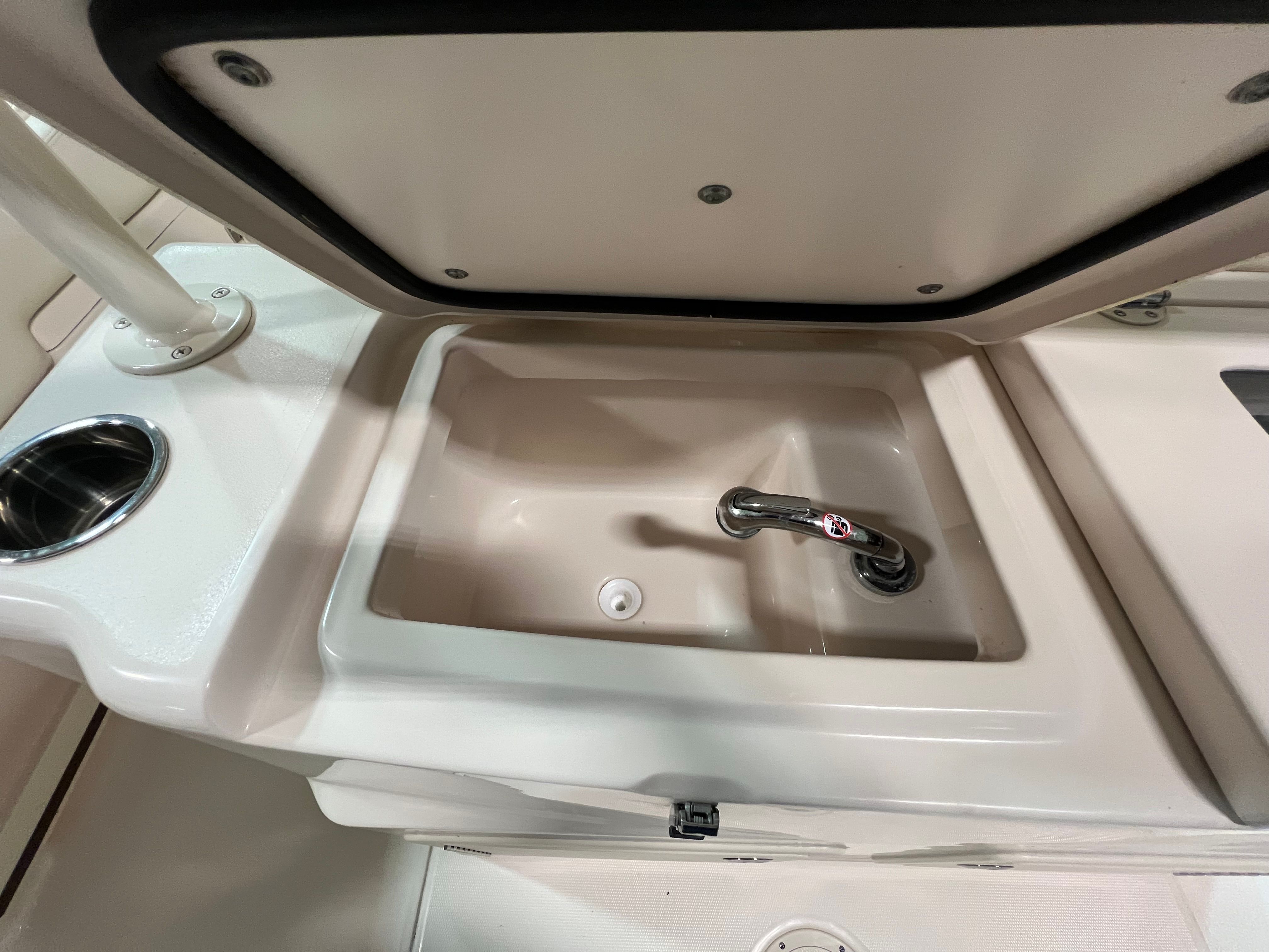 Powering this Grady-White Canyon 306 are twin engines, delivering a combined 600 horsepower. With only 200 engine hours, these reliable motors ensure that you have plenty of adventures ahead. The powerful engine setup provides impressive acceleration, smooth cruising, and the ability to tackle offshore conditions with confidence. Whether you are heading out for a day of fishing or cruising along the coastline, the Canyon 306’s performance capabilities ensure a responsive and exhilarating ride every time you hit the water.