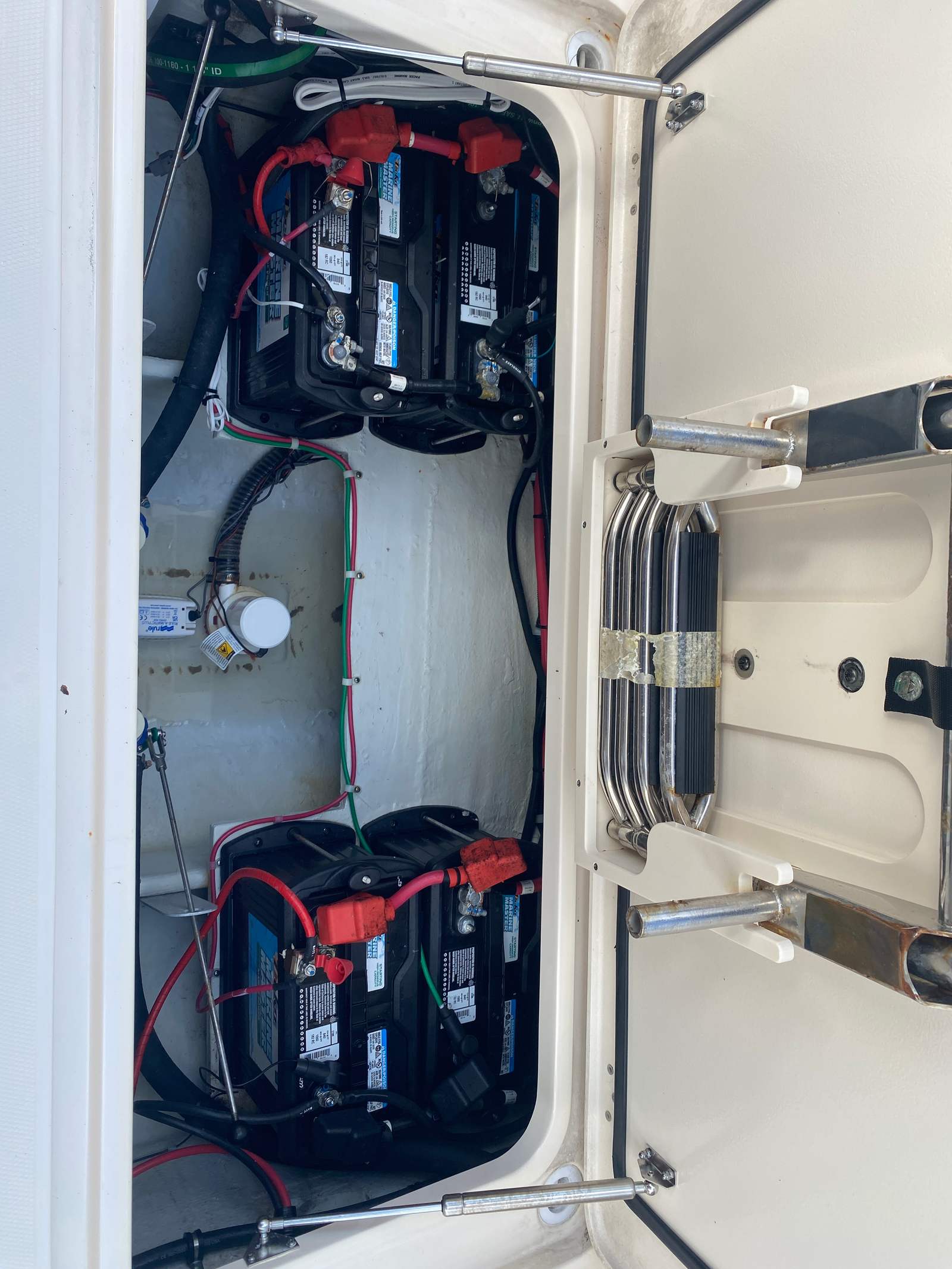 Under the hood, the Grady-White Canyon 326 is powered by twin engines, delivering a combined 600 horsepower. This impressive setup ensures smooth acceleration, responsive handling, and the ability to tackle a variety of water conditions with confidence. Whether you’re heading offshore for a fishing expedition or cruising along the coastline, the Canyon 326’s powerful engines provide the speed and agility you need for an exhilarating ride. With only 65 engine hours, these engines are barely broken in, offering years of dependable performance ahead.