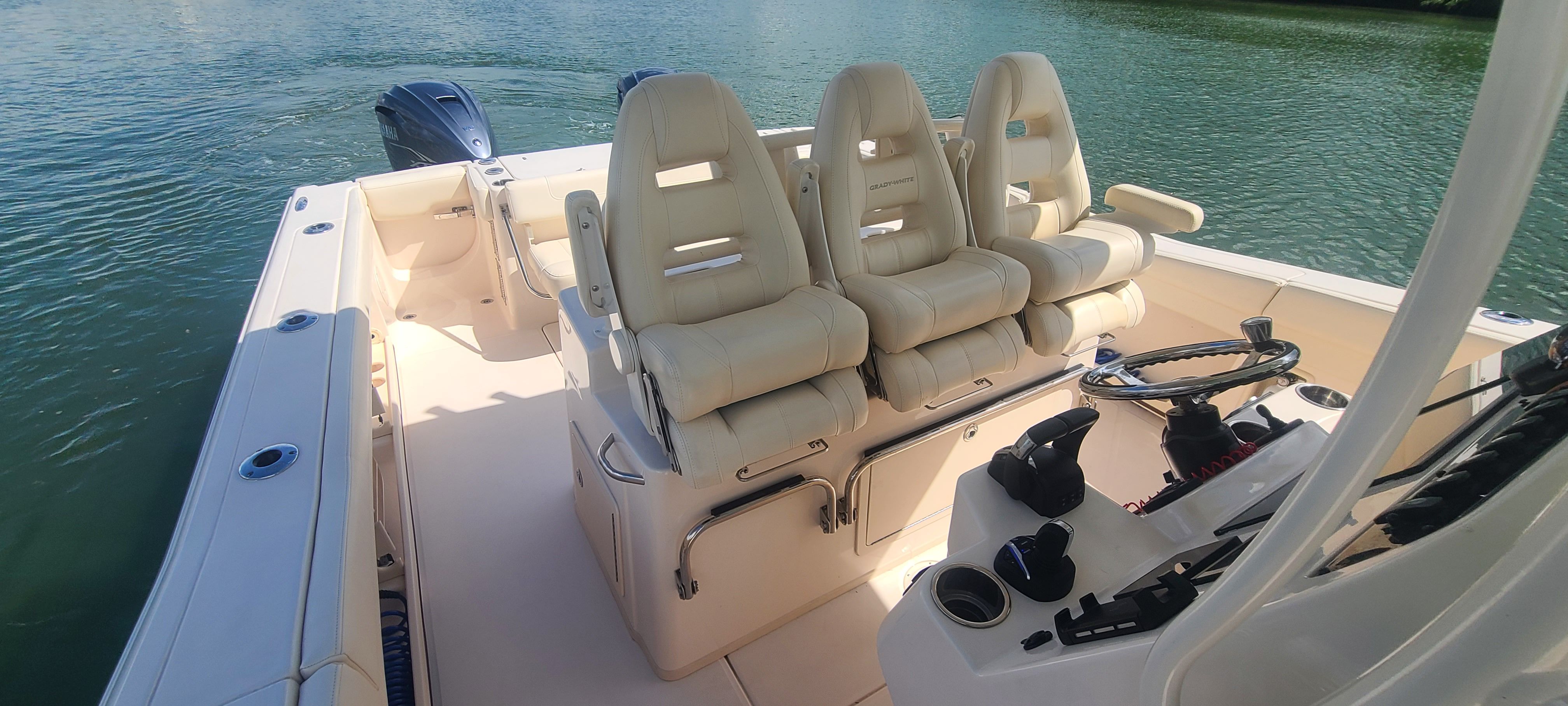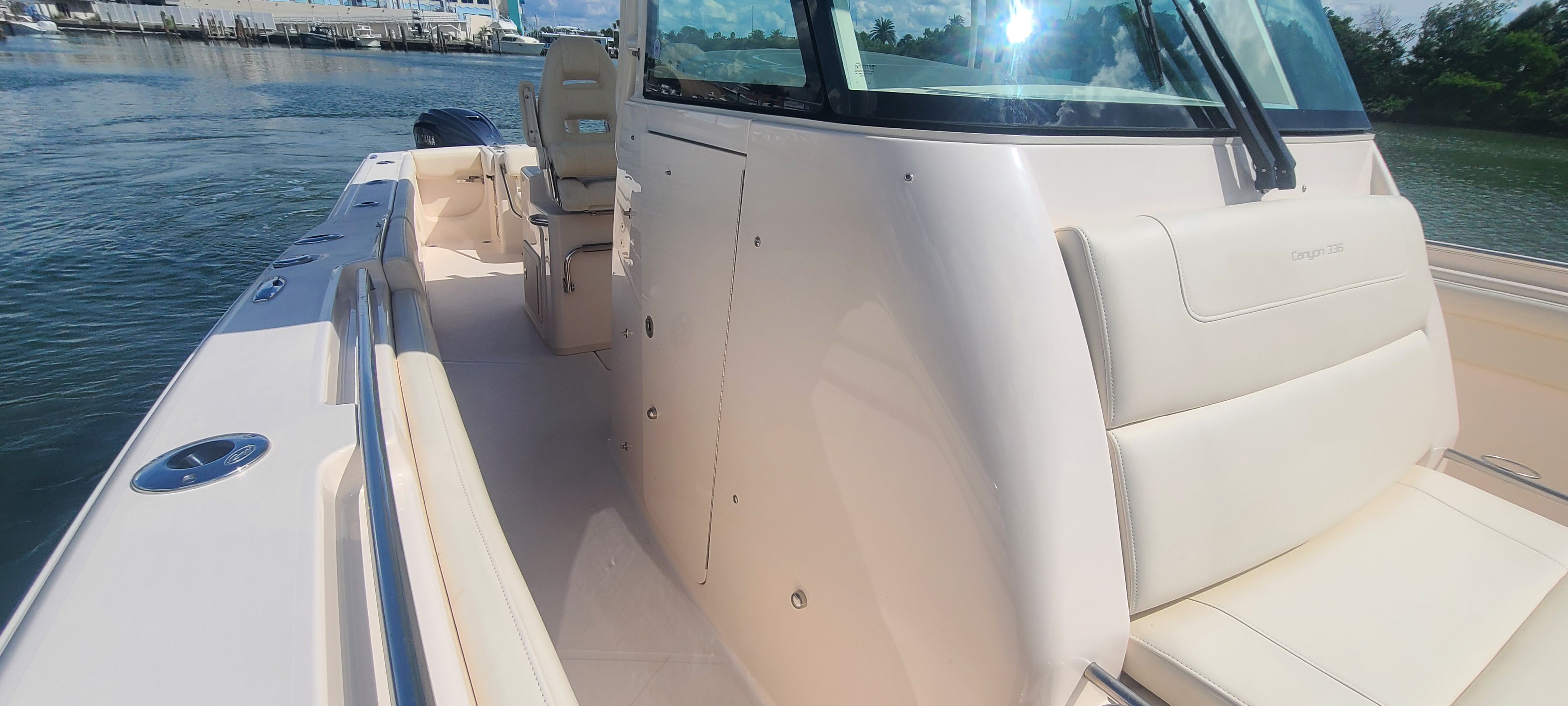 The 2023 Grady-White Canyon 336 shines in a variety of scenarios, making it a versatile choice for any boating enthusiast. For families, it offers a safe and comfortable environment for day trips, picnics, and swimming adventures. The spacious deck and seating make it easy to accommodate guests, while the robust performance ensures a smooth and enjoyable ride.For fishing enthusiasts, the Canyon 336 is a dream come true. Its powerful engines and stable platform make it ideal for offshore fishing trips, while the ample storage and well-designed cockpit cater to serious anglers. The boat’s advanced navigation systems and reliable performance mean you can explore new fishing grounds with confidence.For those seeking luxury and relaxation, the Canyon 336 delivers a premium boating experience. The high-quality finishes, comfortable seating, and spacious layout create an inviting atmosphere for entertaining or unwinding after a long week. Whether you are planning a romantic sunset cruise or a weekend getaway with friends, this Grady-White boat for sale is ready to make every outing special.