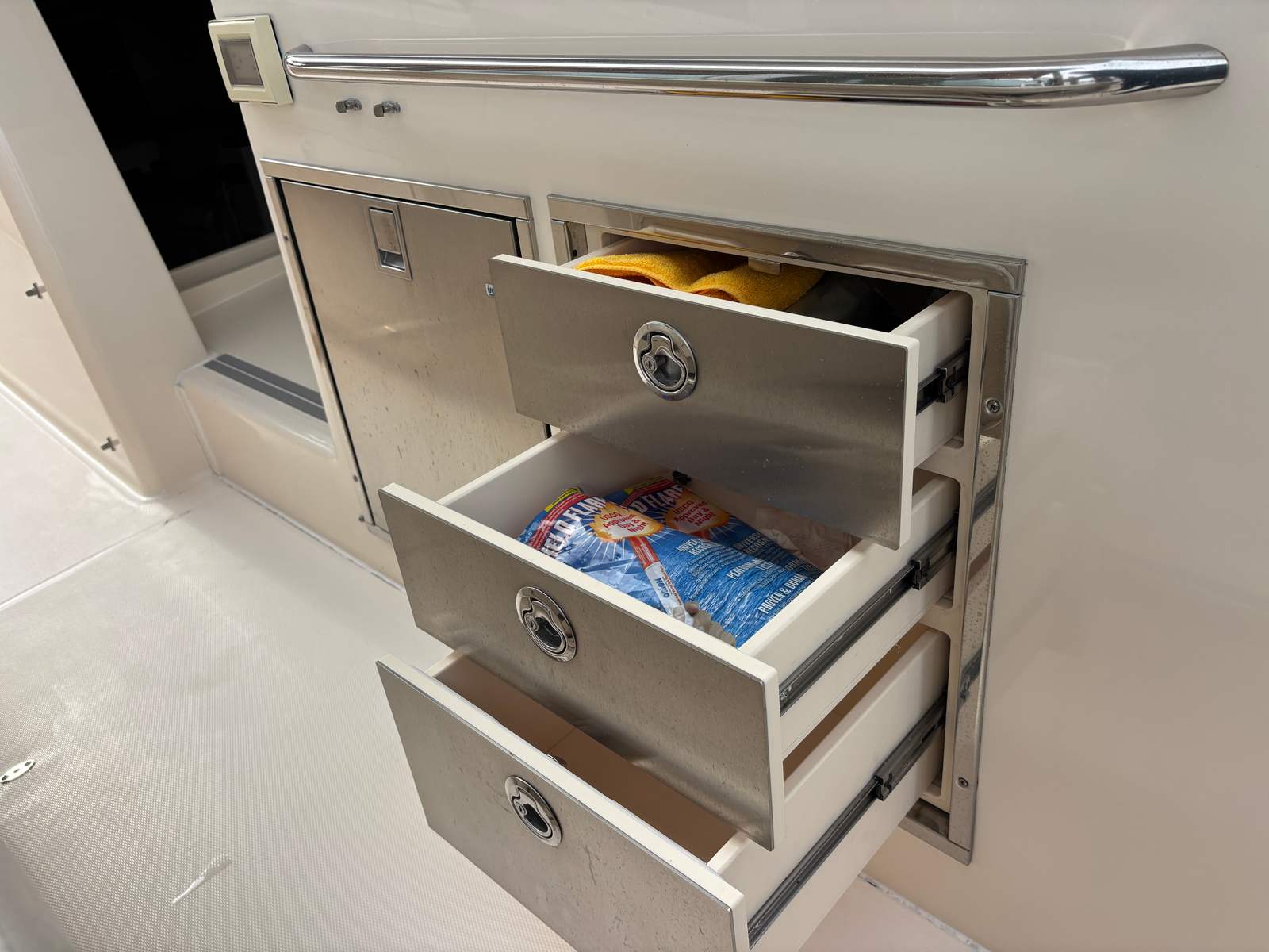 Power and performance are at the heart of the Grady-White Canyon 456. Equipped with four powerful engines delivering a combined 1,700 horsepower, this Center Console boat is built for speed, agility, and reliability. With only 450 engine hours, these engines offer plenty of life and promise exhilarating rides for years to come. The advanced engineering behind the Canyon 456 ensures smooth acceleration, responsive handling, and the ability to reach your favorite destinations quickly and efficiently. Whether you are cruising along the coastline or heading offshore for a day of fishing, this Grady-White boat for sale delivers a thrilling and dependable experience every time you take the helm.