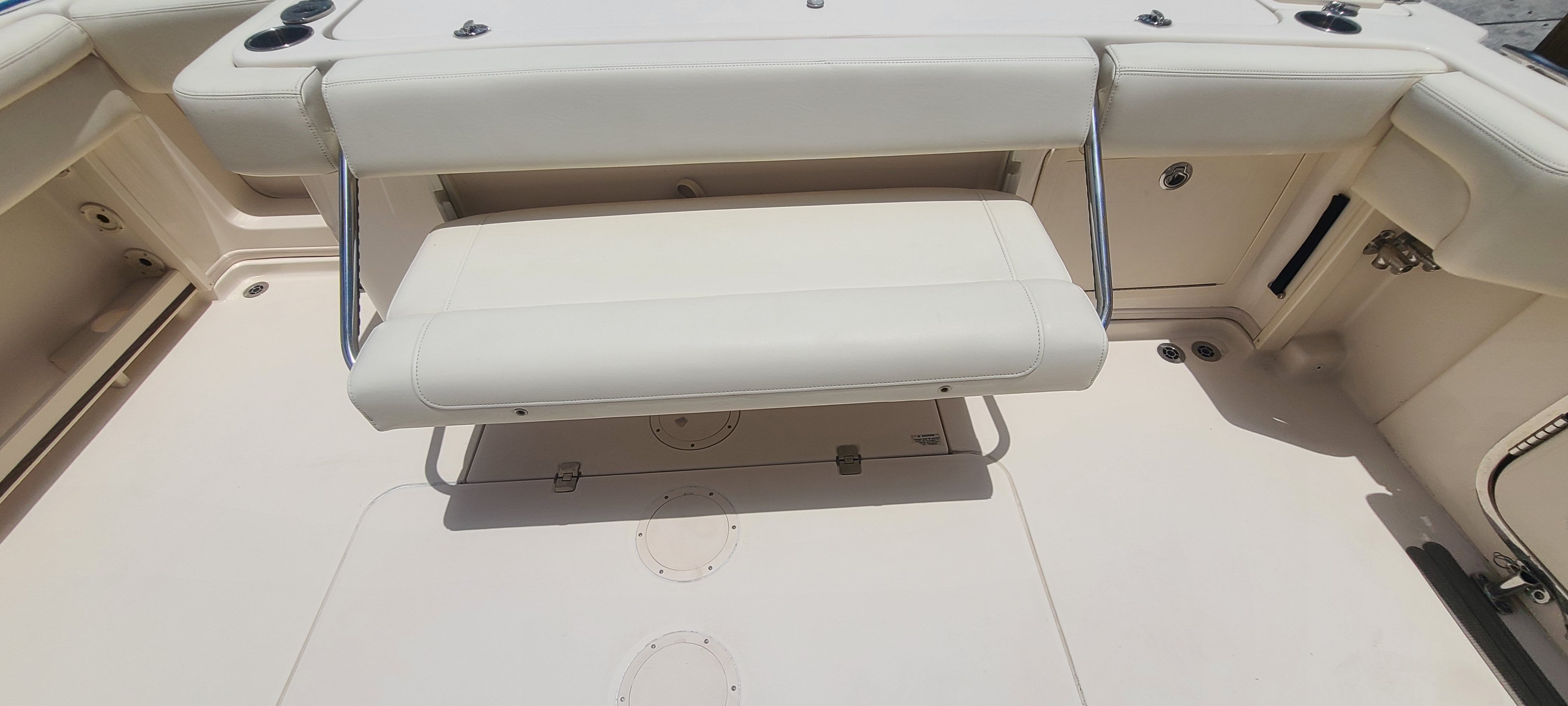 The Grady-White Express 330 is packed with features designed to maximize comfort, convenience, and fishing efficiency. Its spacious cockpit provides plenty of room for multiple anglers to work simultaneously, while the ergonomic helm station offers excellent visibility and easy access to controls. The boat’s layout is optimized for both serious fishing and leisurely cruising, with dedicated spaces for gear storage, bait preparation, and relaxation. The Express 330’s generous beam enhances stability and creates a welcoming environment for guests, whether you’re casting lines or enjoying a sunset cruise.