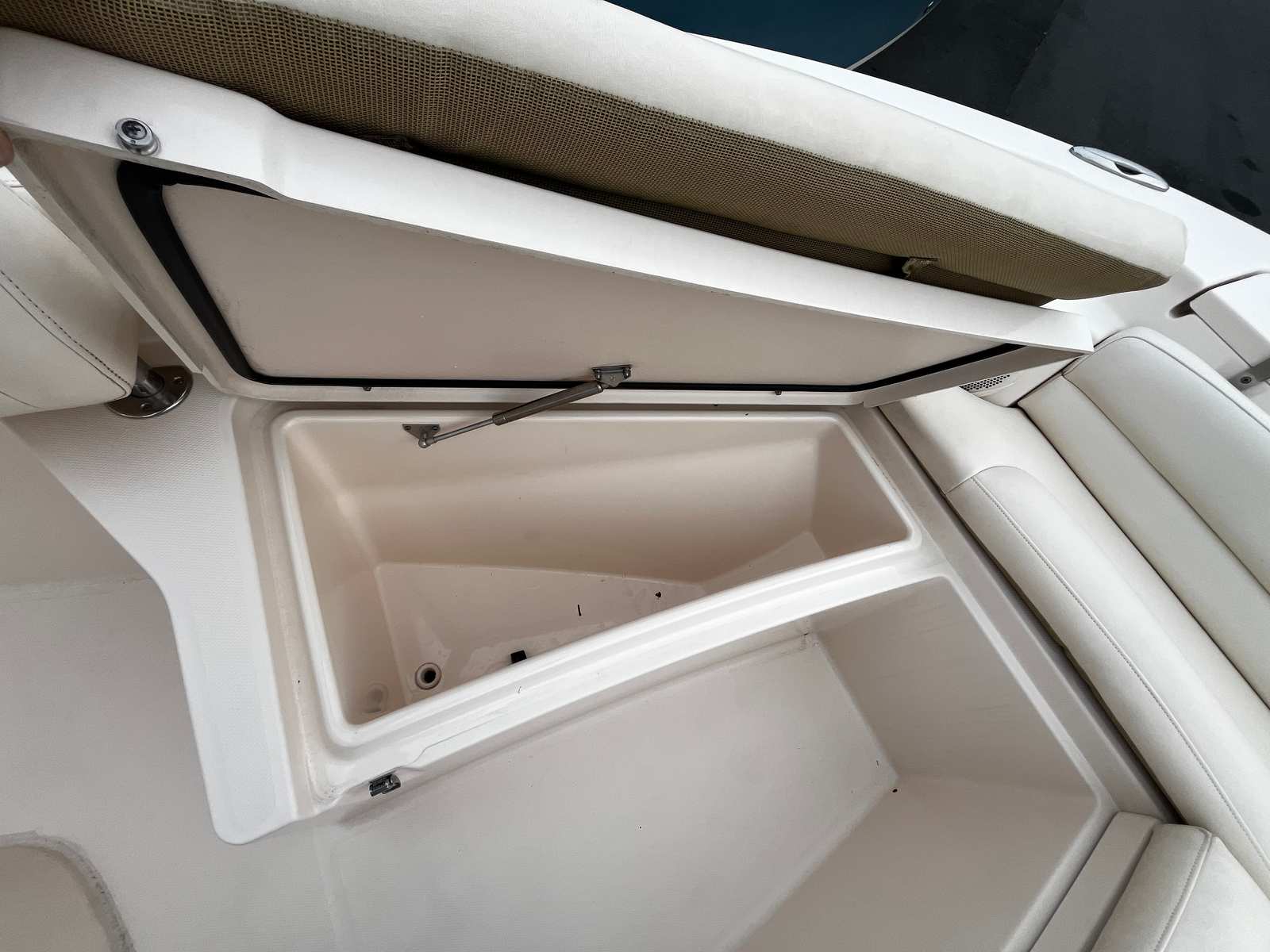 • Deluxe Lean Bar w/ Livewell – Comfortable helm seating with an integrated livewell perfect for keeping bait fresh.