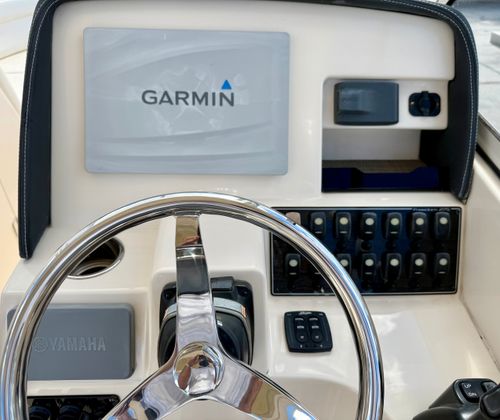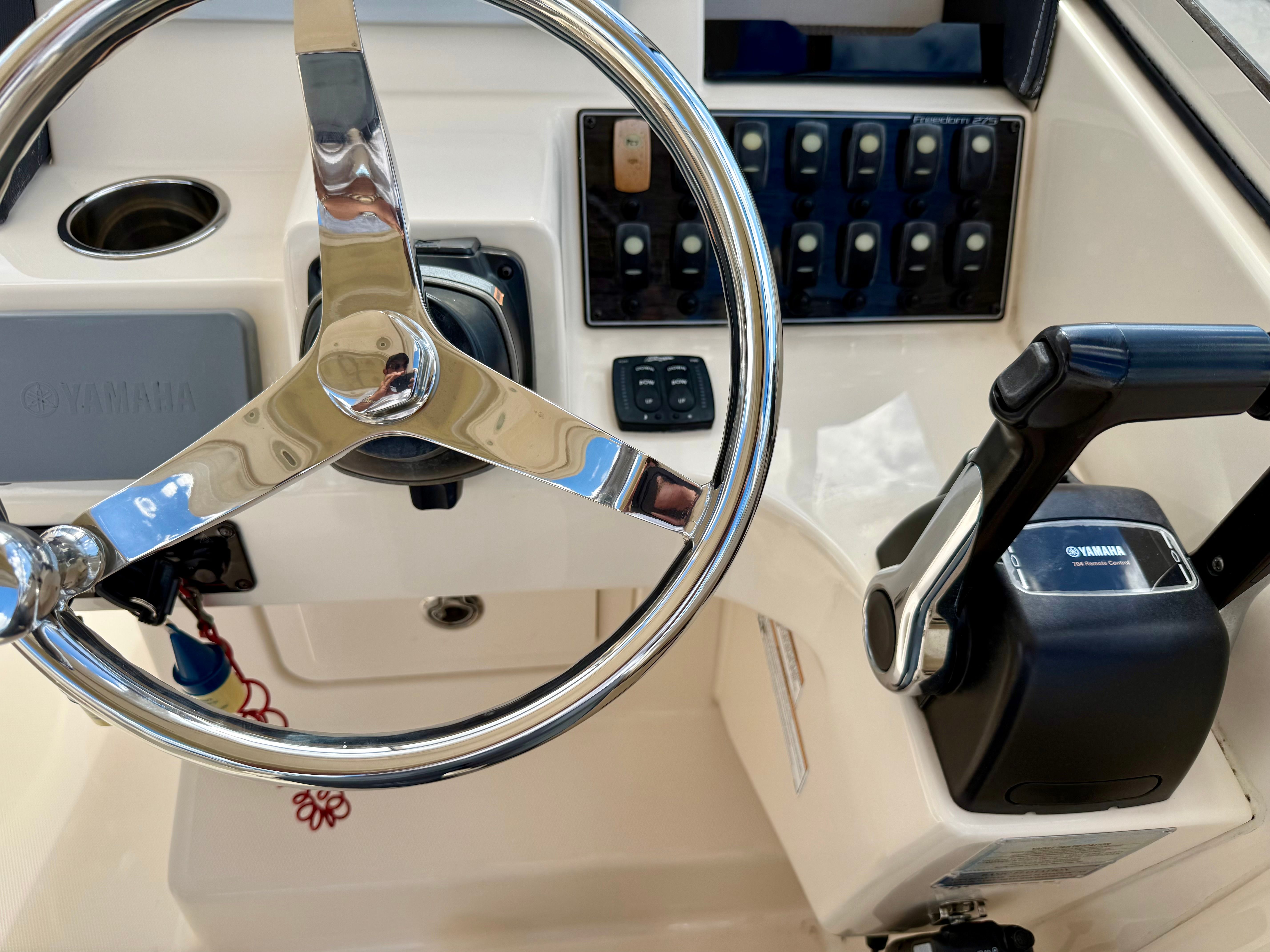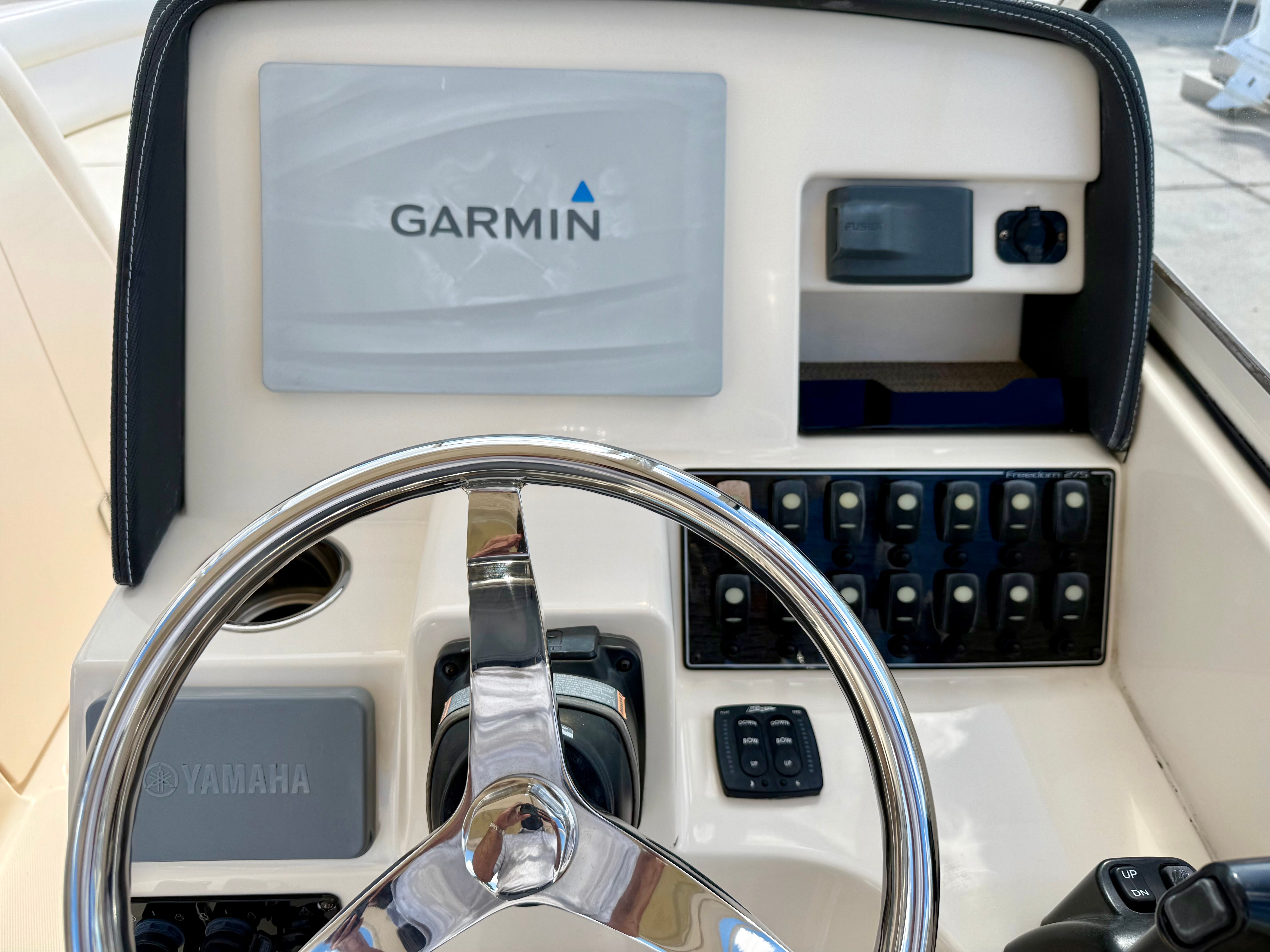 Equipped with the fisherman in mind, this 275 Freedom features a Garmin navigation display with sonar readout, Garmin radar system for enhanced situational awareness, a functional livewell, and Yamaha CL-5 digital gauges providing clear and precise engine data at the helm. Whether you’re running offshore, navigating in low visibility, or dialing in a productive fishing spot, this boat is well outfitted to get the job done.