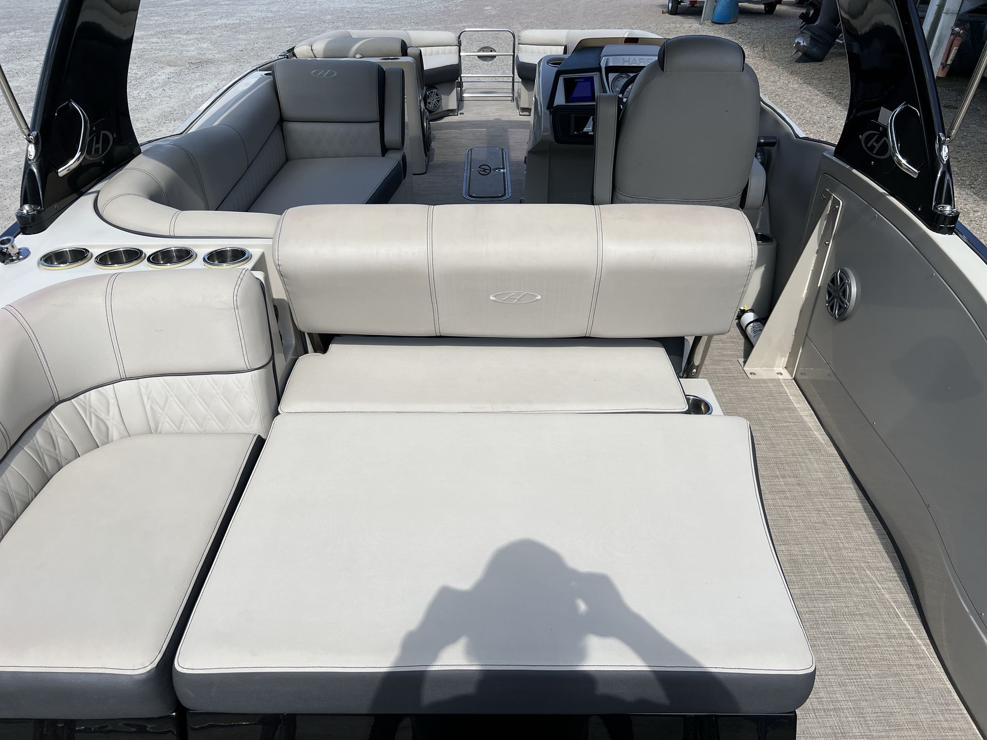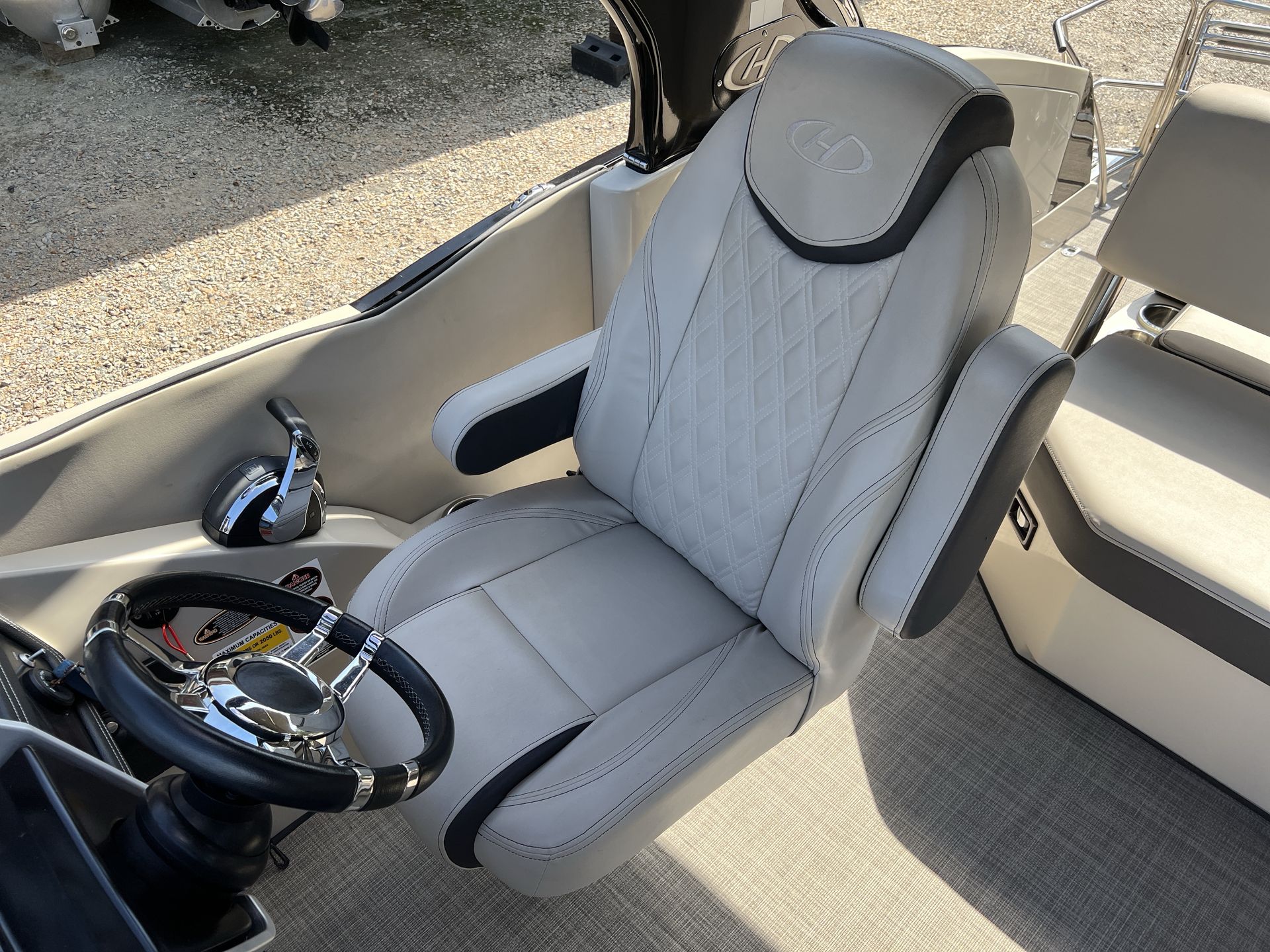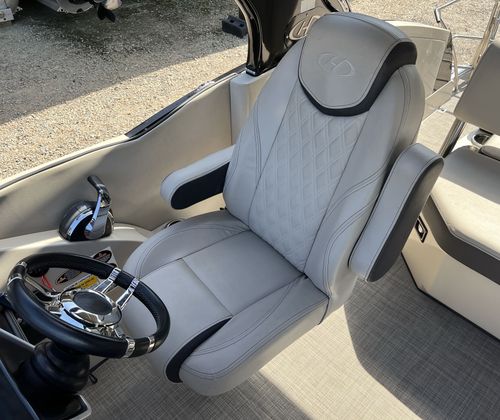 The Harris Crowne 250 is designed with both luxury and functionality in mind. Its spacious deck layout allows for comfortable seating and easy movement, making it ideal for entertaining guests or spending quality time with family. The high-quality construction and attention to detail are evident in every aspect of the boat, from the plush seating to the stylish railings and fixtures. The pontoon’s generous length provides ample room for lounging, dining, and enjoying the sun, while the sturdy build ensures a safe and stable ride in various water conditions.