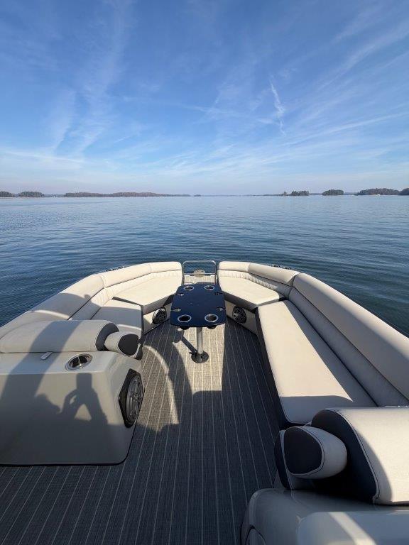 Don’t miss the chance to own this beautiful two-owner 2017 Harris 250 Crowne—one of the most impressive and uniquely styled pontoons on the water today. At first glance you may find yourself wondering, is this a pontoon, a bowrider, or a performance boat? Harris designed the Crowne so you never have to choose. It blends the sleek, modern lines and technology of a fiberglass sport boat with the comfort, space, and stability that only a premium pontoon can deliver.