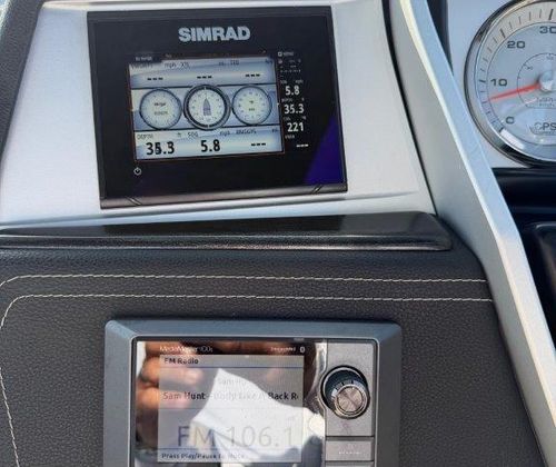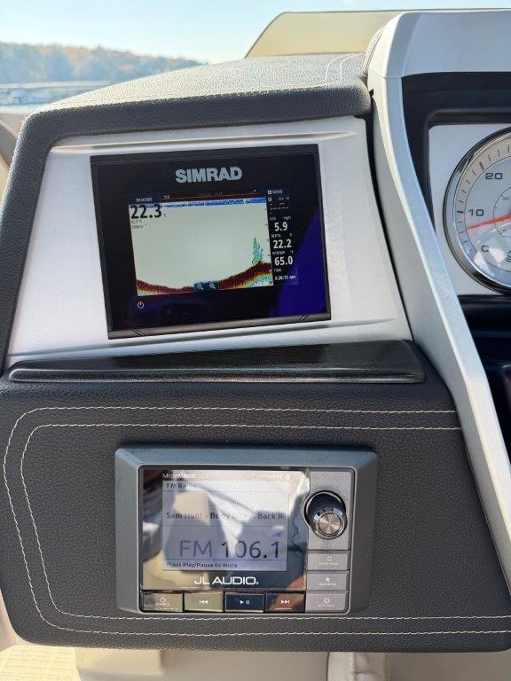 Loaded with premium upgrades, this Crowne includes an impressive JL Audio sound system with Bluetooth and USB connectivity, offering rich, powerful sound throughout the boat. The integrated Simrad electronics package features a plotter, sounder, and engine gauges for confident navigation and monitoring wherever you go.