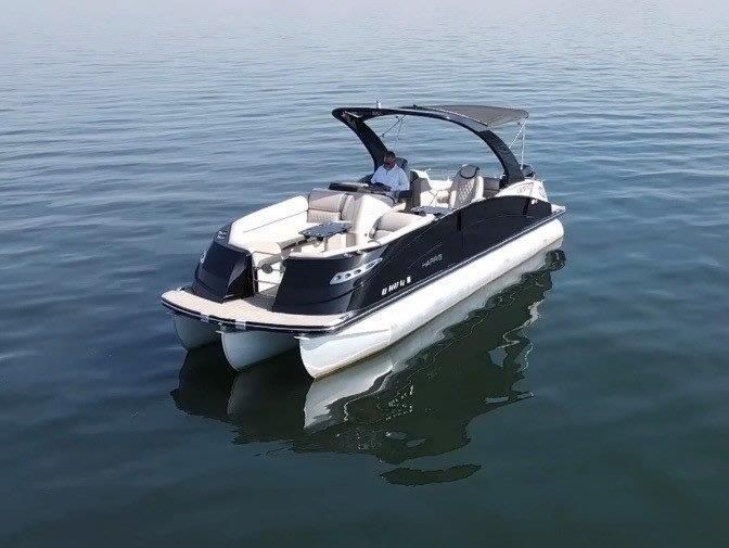 This 2017 Harris 250 Crowne delivers the perfect balance of sport-boat styling and pontoon comfort—an eye-catching, versatile, high-end platform built for relaxation and entertainment.
