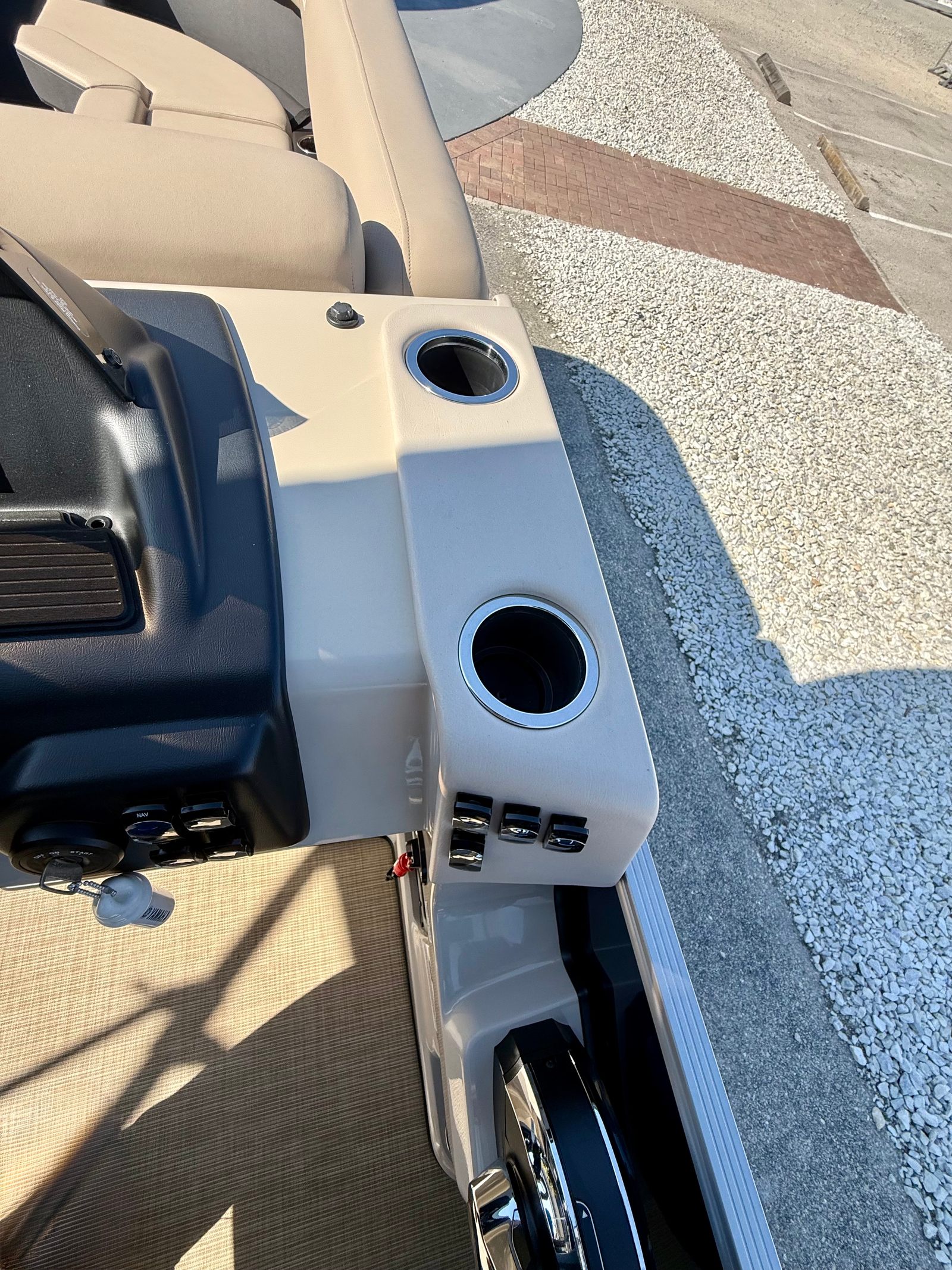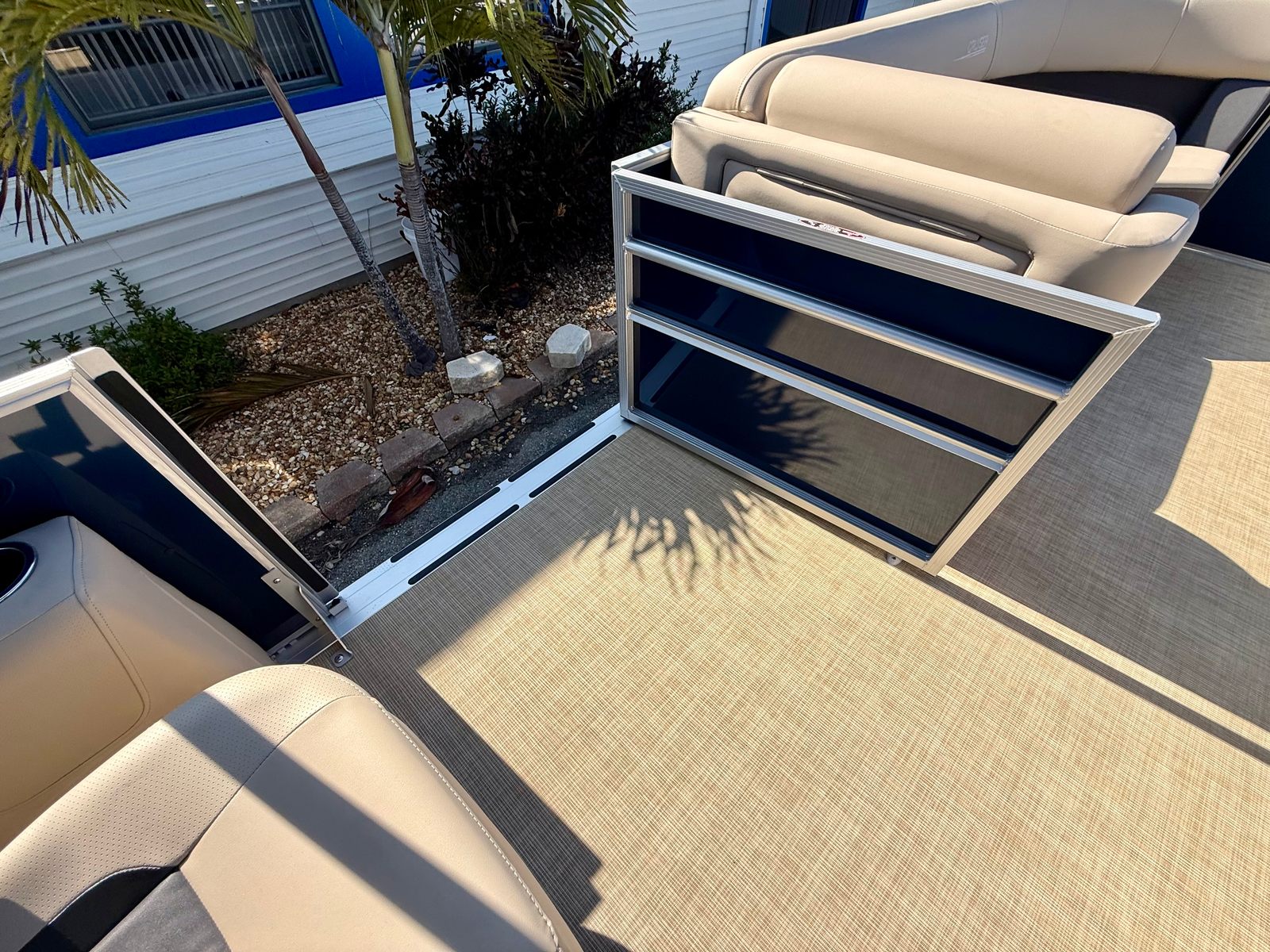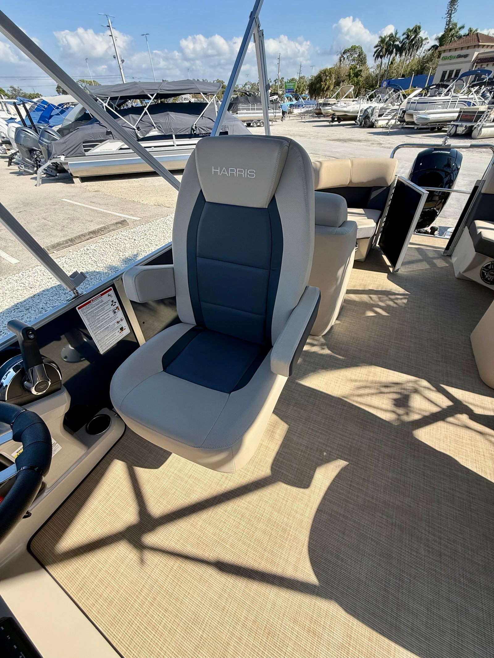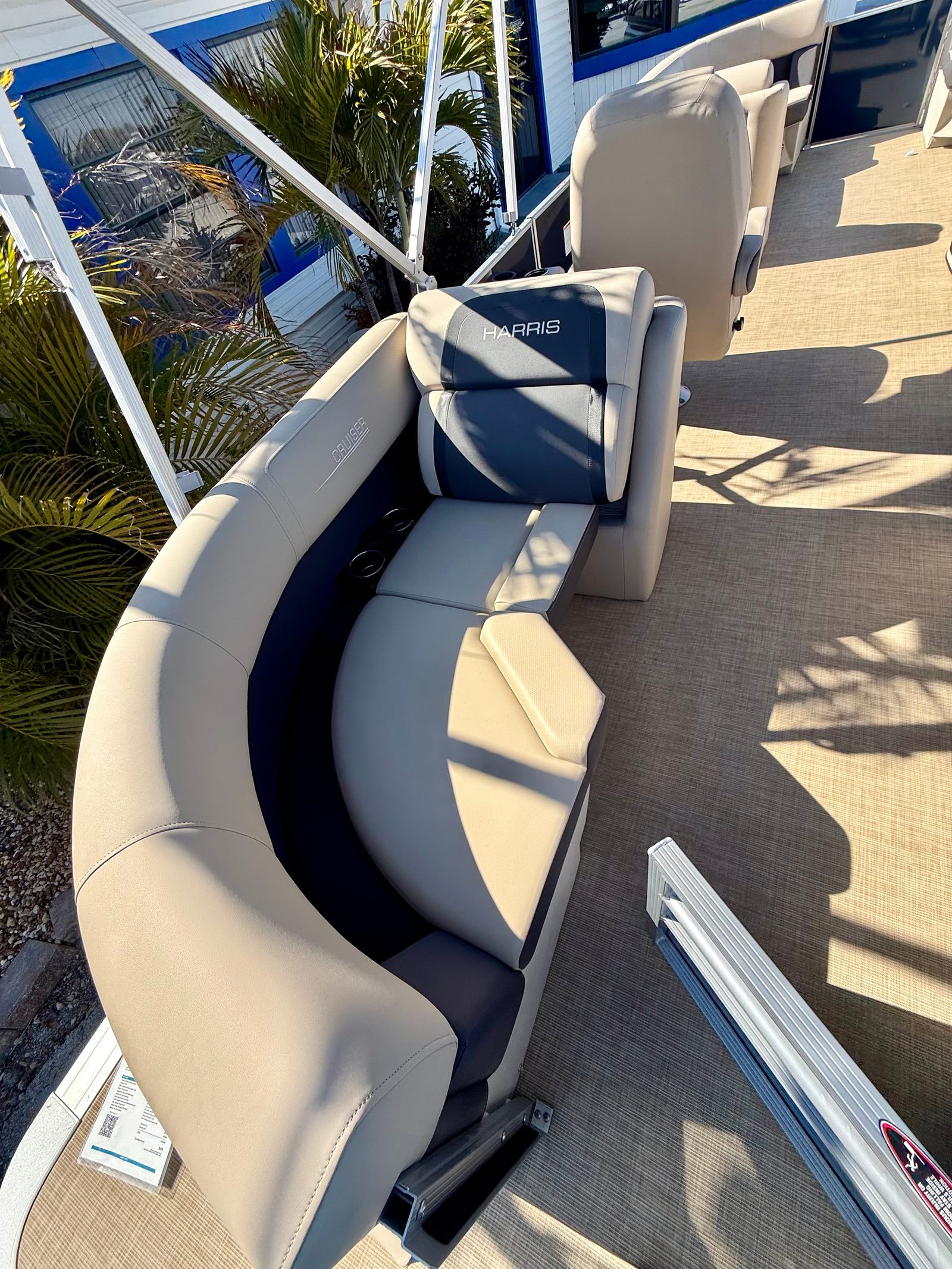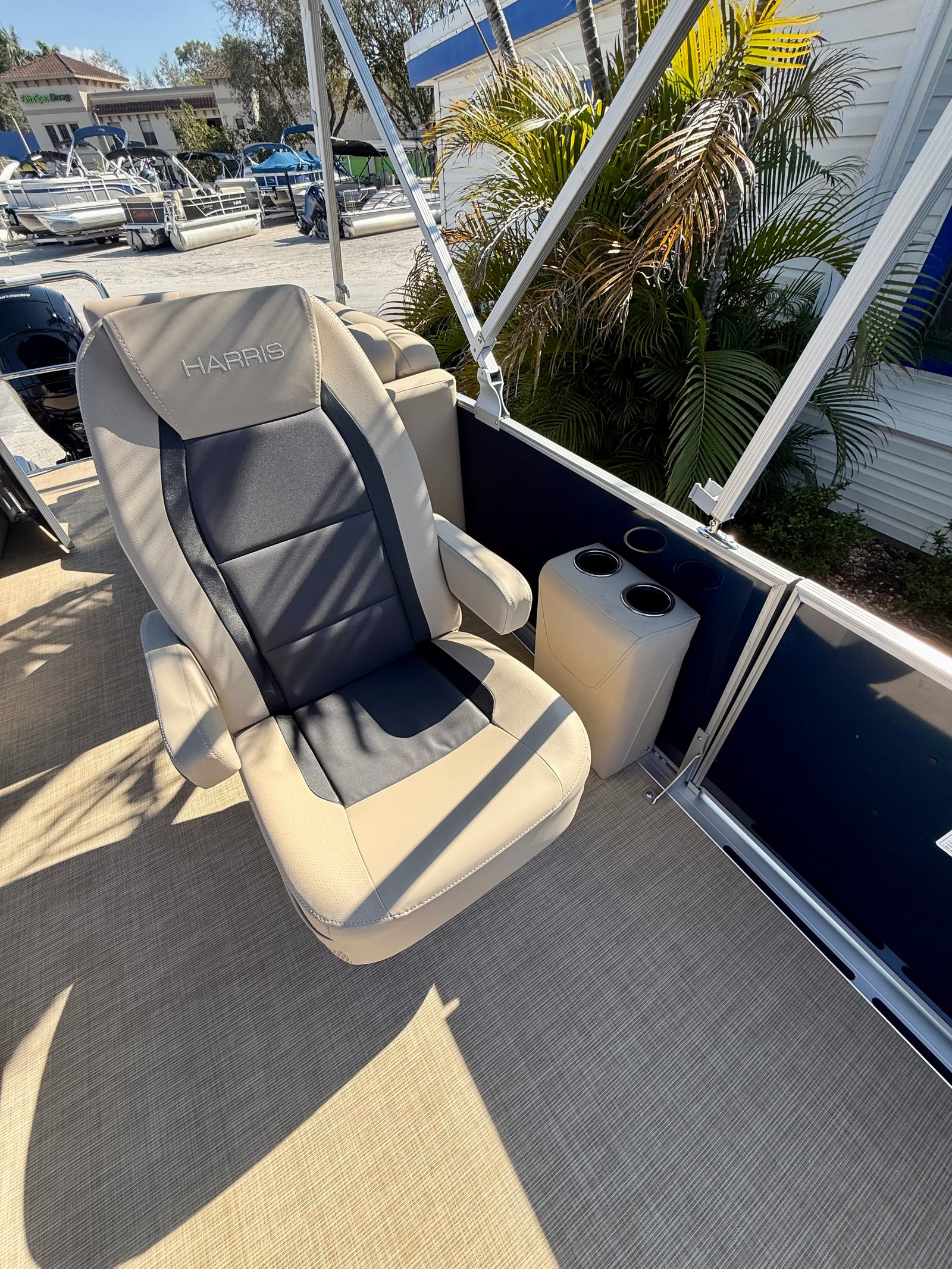 The 2025 Harris Cruiser 230 is loaded with features designed to enhance your boating experience. The boat’s furniture is finished in Dune, offering a sophisticated and comfortable seating arrangement for all passengers. The flooring is covered in Desert Beige Seagrass, providing a plush and stylish surface that is both durable and easy to maintain.For those who love to entertain, the Clarion Stereo system, complete with four Clarion speakers, delivers high-quality sound throughout the boat, setting the perfect mood for any occasion. The captain’s seat is thoughtfully designed with adjustable height, a slider, and swivel functionality, ensuring maximum comfort and control at the helm.Practical features include a Battery Disconnect Switch with a single tray for added safety and convenience, as well as a 4-step telescoping stainless steel stern ladder for easy access in and out of the water. The American flag, dealer-installed, adds a patriotic touch to your boating adventures.