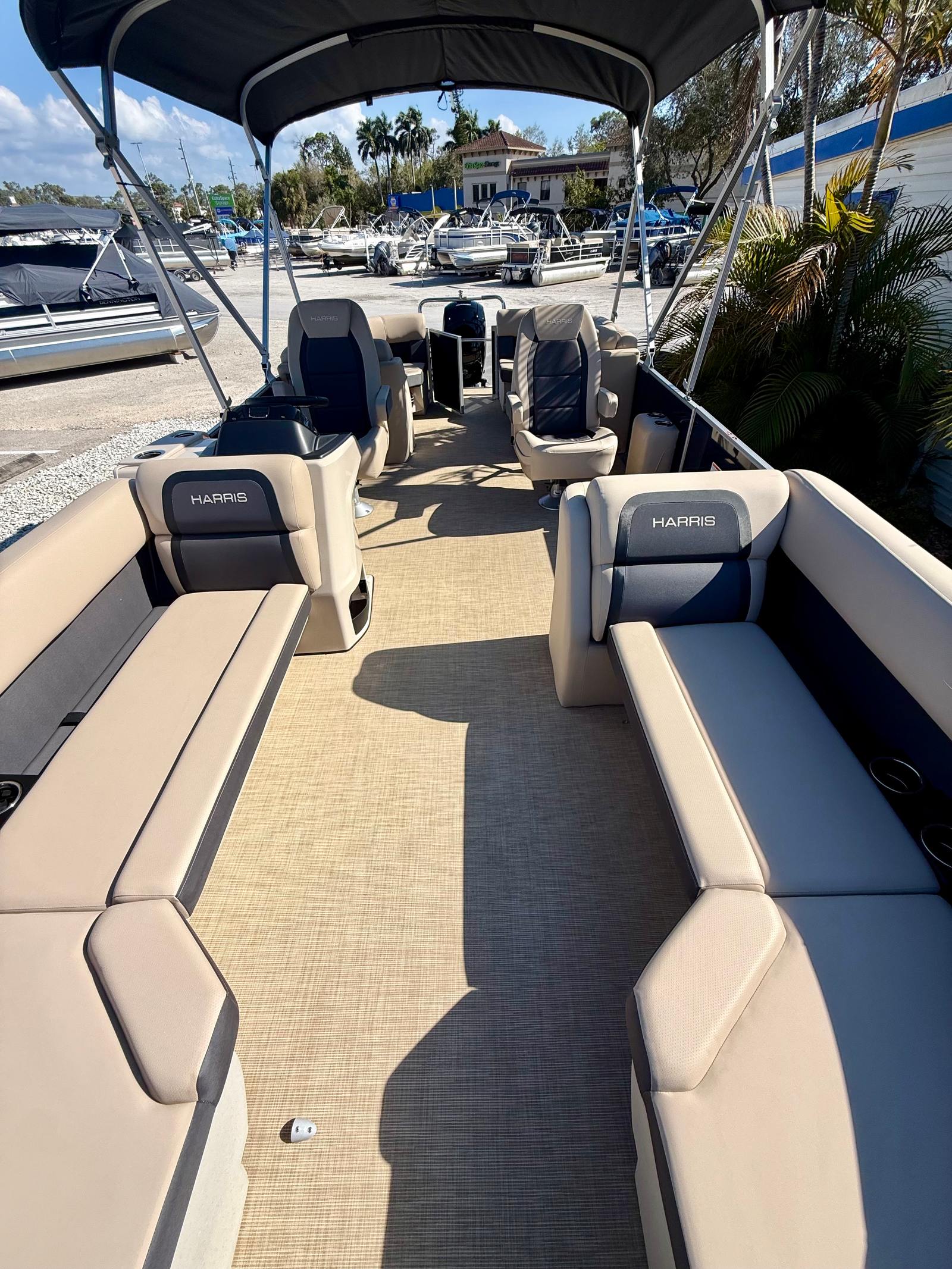 Owning the Harris Cruiser 230 pontoon boat means embracing a lifestyle of fun, relaxation, and connection. The spacious layout encourages socializing, making it perfect for hosting gatherings, family celebrations, or quiet sunset cruises. The plush seating and premium flooring ensure that every passenger enjoys a comfortable and inviting environment, whether you are lounging in the sun or enjoying a meal on the water.The powerful 150-horsepower engine allows you to explore new destinations, try out water sports, or simply cruise at your own pace. The high-quality stereo system transforms every trip into a party, while the protective Bimini ensures you stay cool and comfortable even on the hottest days.