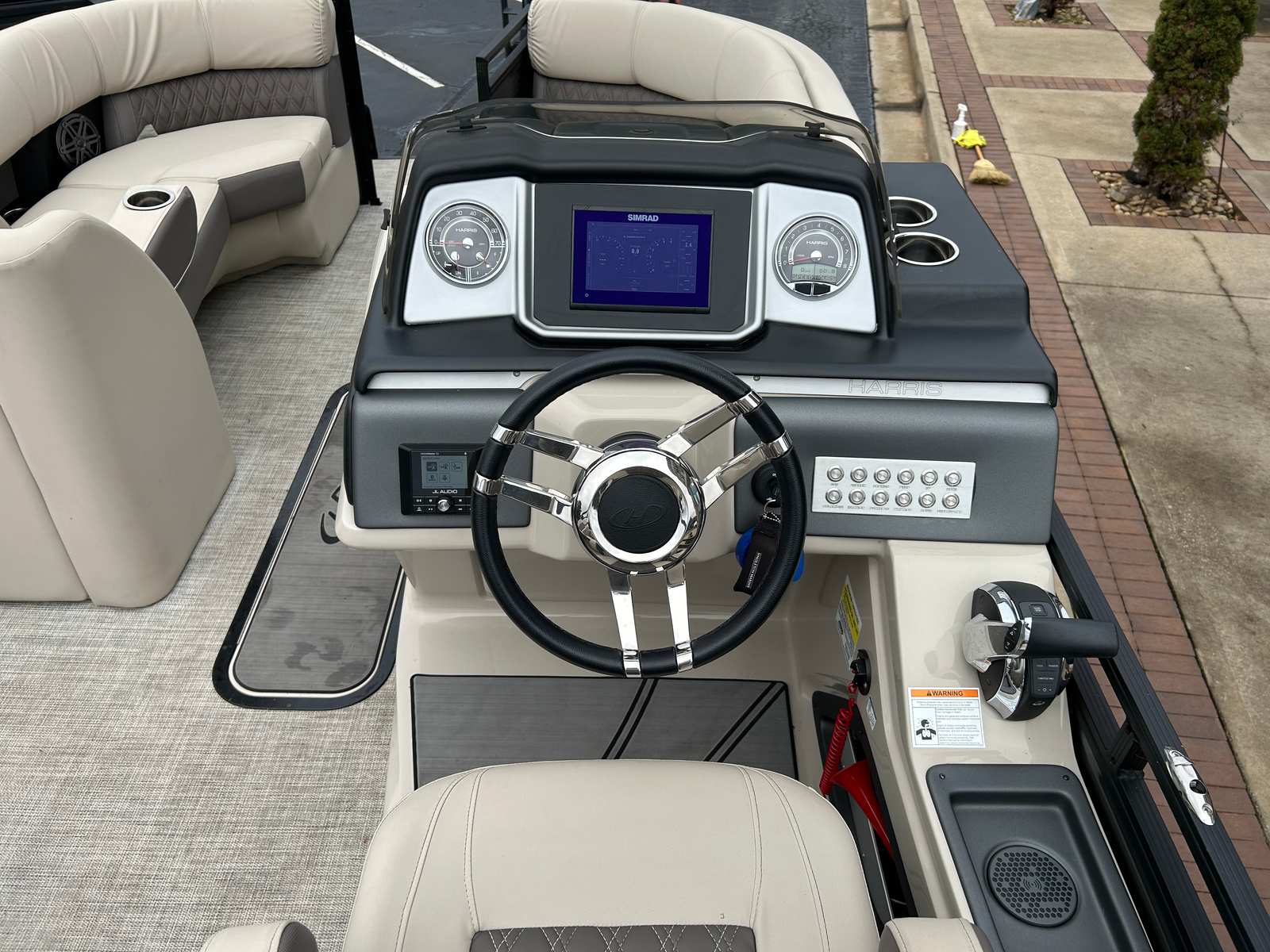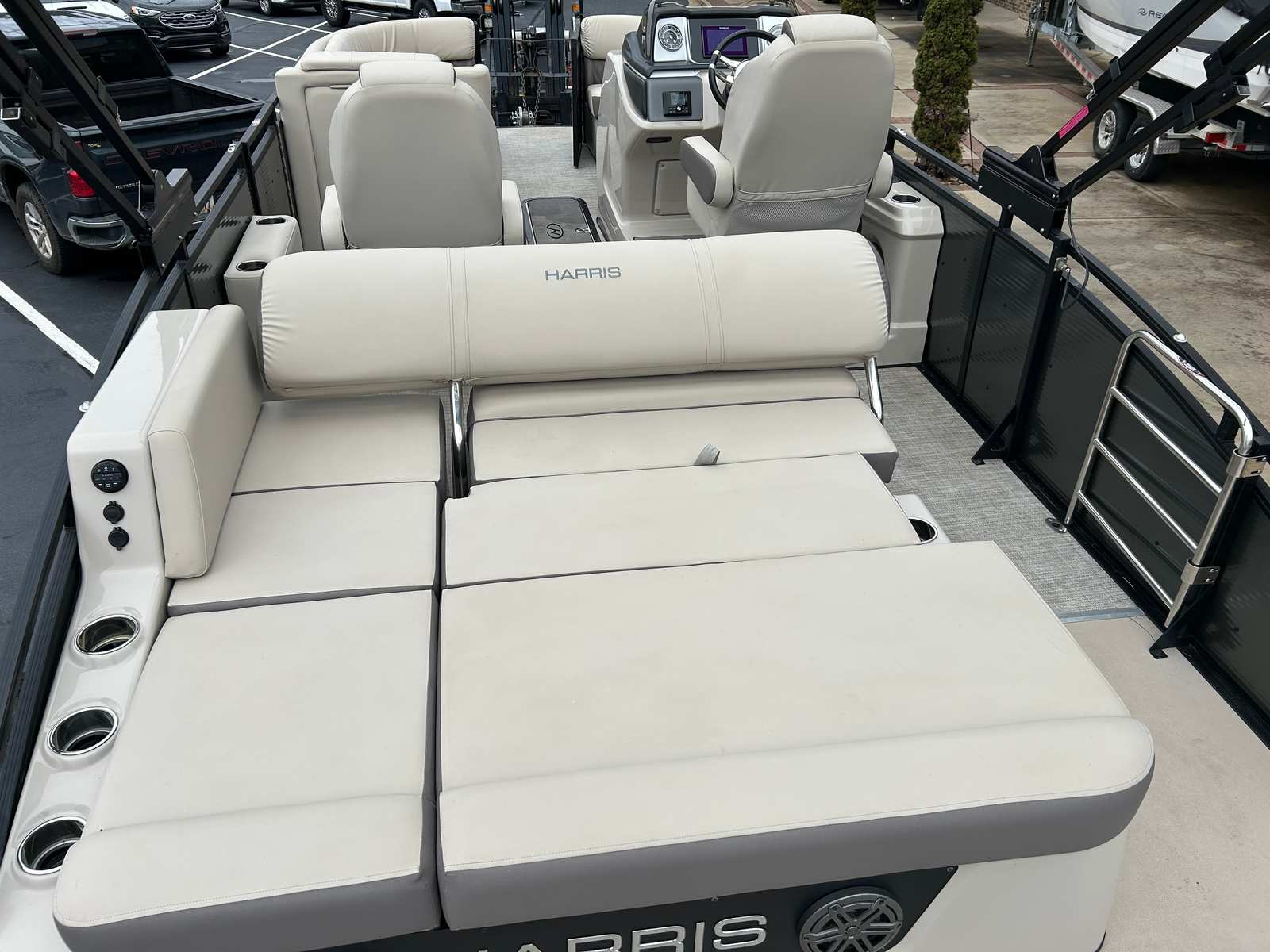 The 2022 Harris Solstice 230 is designed with comfort, convenience, and fun in mind. Its spacious deck layout allows for easy movement and socializing, making it ideal for gatherings and celebrations. The pontoon’s plush seating invites relaxation, while the thoughtfully arranged helm ensures intuitive control and visibility for the captain. The Solstice 230’s premium construction materials and attention to detail are evident throughout, from the stylish exterior to the comfortable, well-appointed interior.Special features of this Harris boat for sale include a powerful 250-horsepower engine, a generous 26.17-foot length, and a low 50 engine hours, all contributing to its outstanding performance and longevity. The pontoon’s design maximizes usable space, offering plenty of room for guests, gear, and recreational equipment. Every detail is crafted to enhance your time on the water, whether you are hosting a party or enjoying a quiet afternoon cruise.