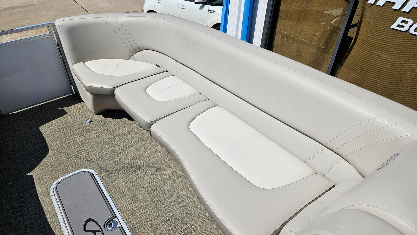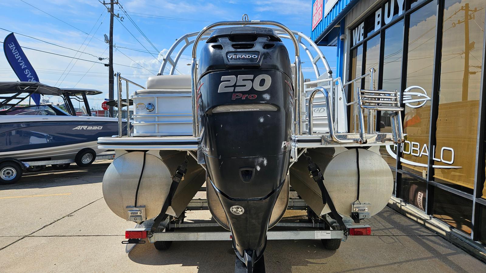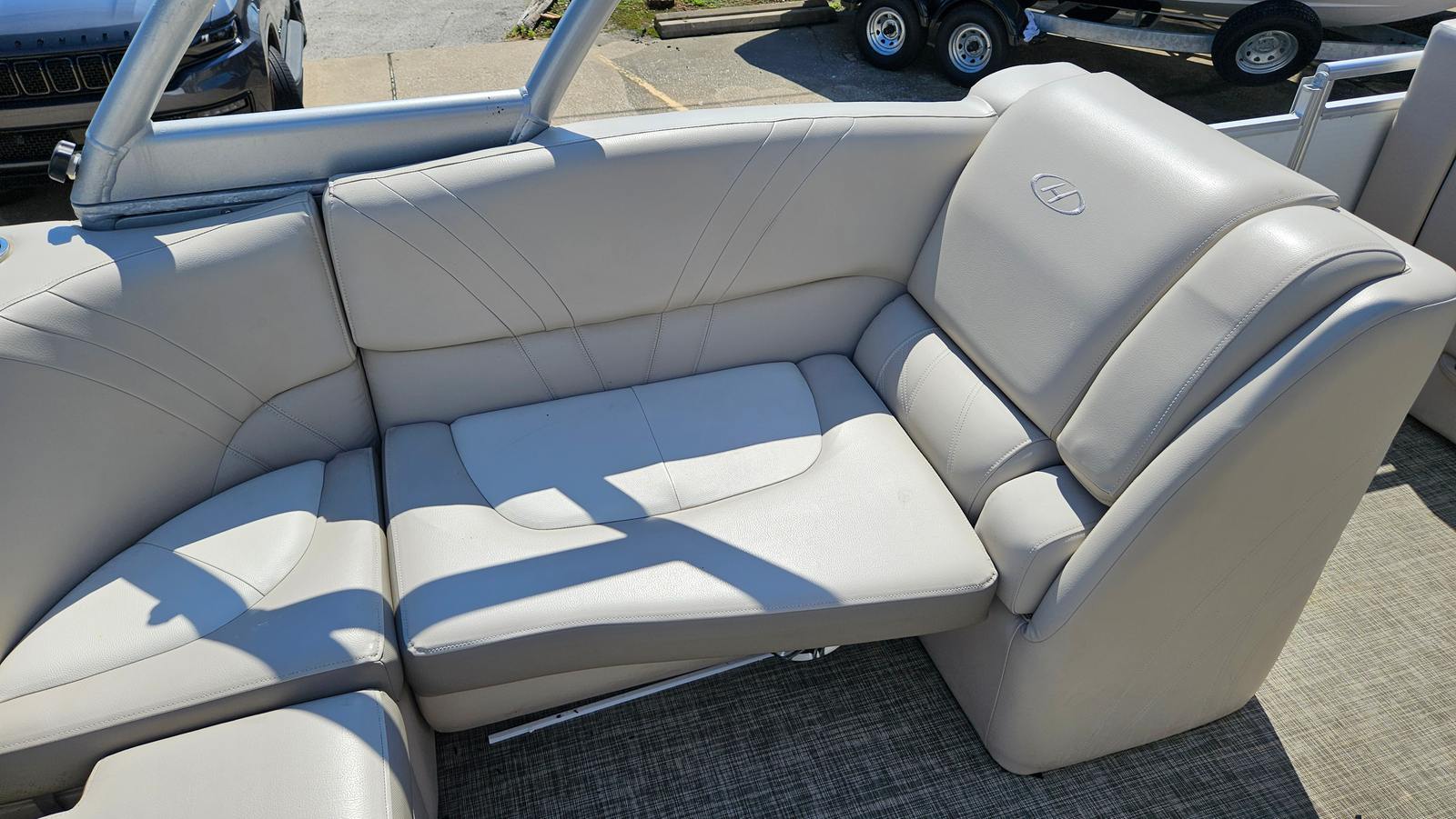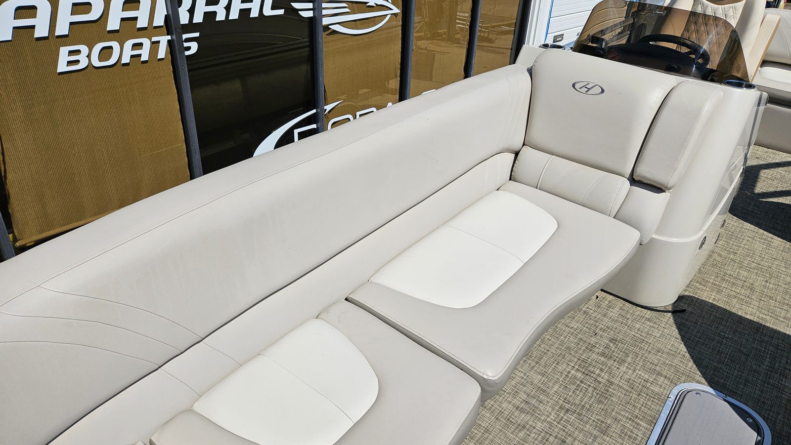 Equipped with a powerful single engine boasting 250 horsepower, the Harris Solstice 240 delivers impressive performance that sets it apart from other pontoon boats for sale. Whether you’re cruising at a leisurely pace or seeking a bit of excitement with higher speeds, this pontoon responds with smooth acceleration and agile handling. The engine’s 154 hours reflect careful use and maintenance, ensuring dependable operation for years ahead. With this level of horsepower, you’ll enjoy effortless navigation, responsive steering, and the ability to explore a wide range of waterways with confidence.