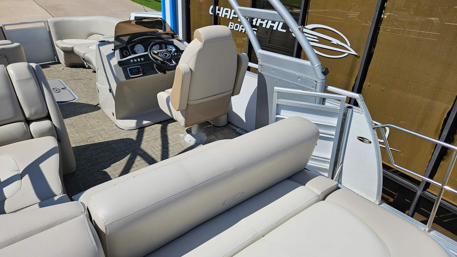 This pontoon boat is as practical as it is enjoyable. The generous deck space provides plenty of room for gear, coolers, and water toys, making it easy to prepare for a day of fun. Its manageable length and responsive handling simplify docking and maneuvering, even for those new to boating. The efficient engine helps maximize fuel economy, so you can spend more time on the water and less time refueling. Whether you’re planning a fishing trip, a family picnic, or a sunset cruise, the Harris Solstice 240 adapts to your needs with ease.