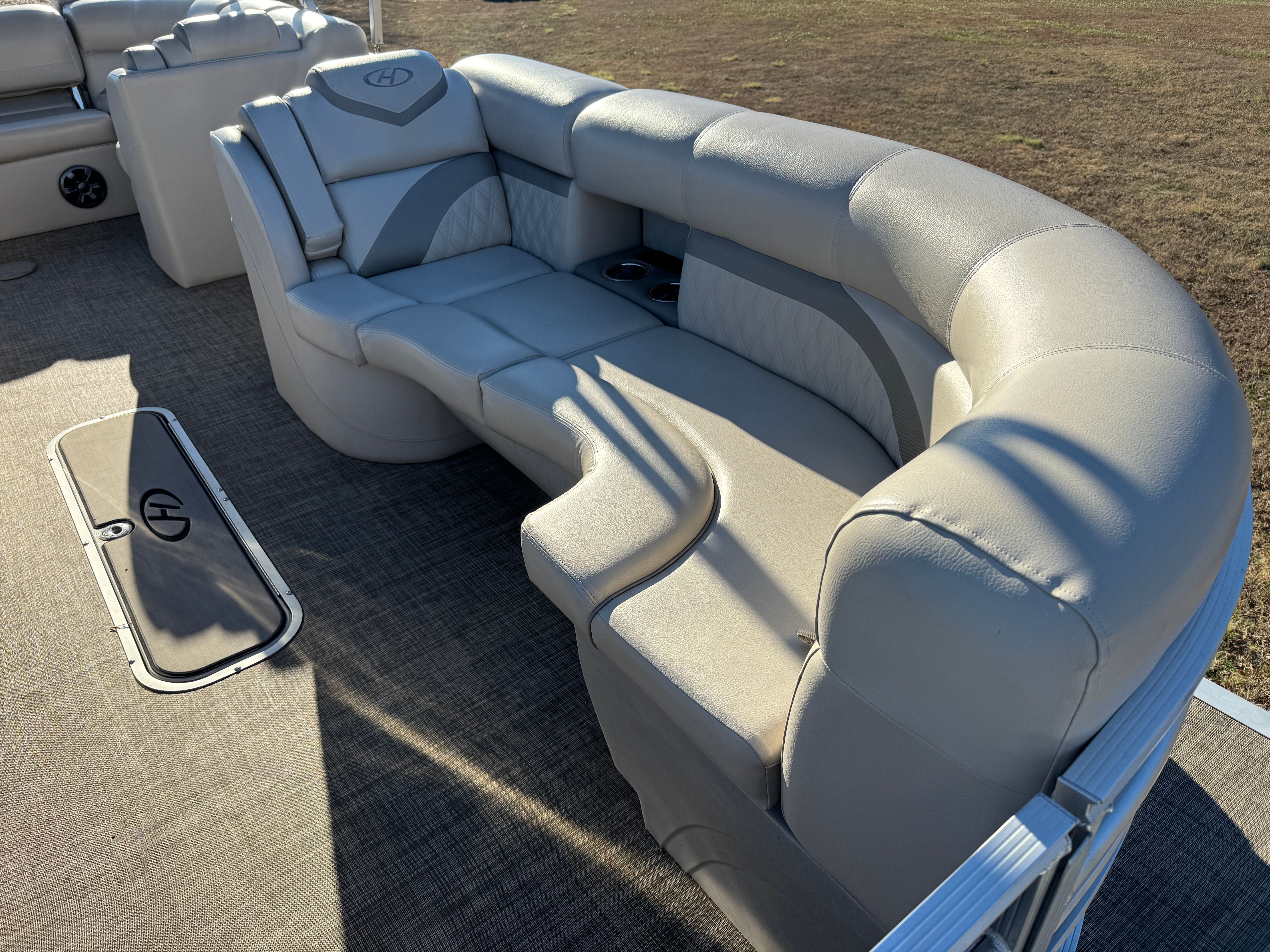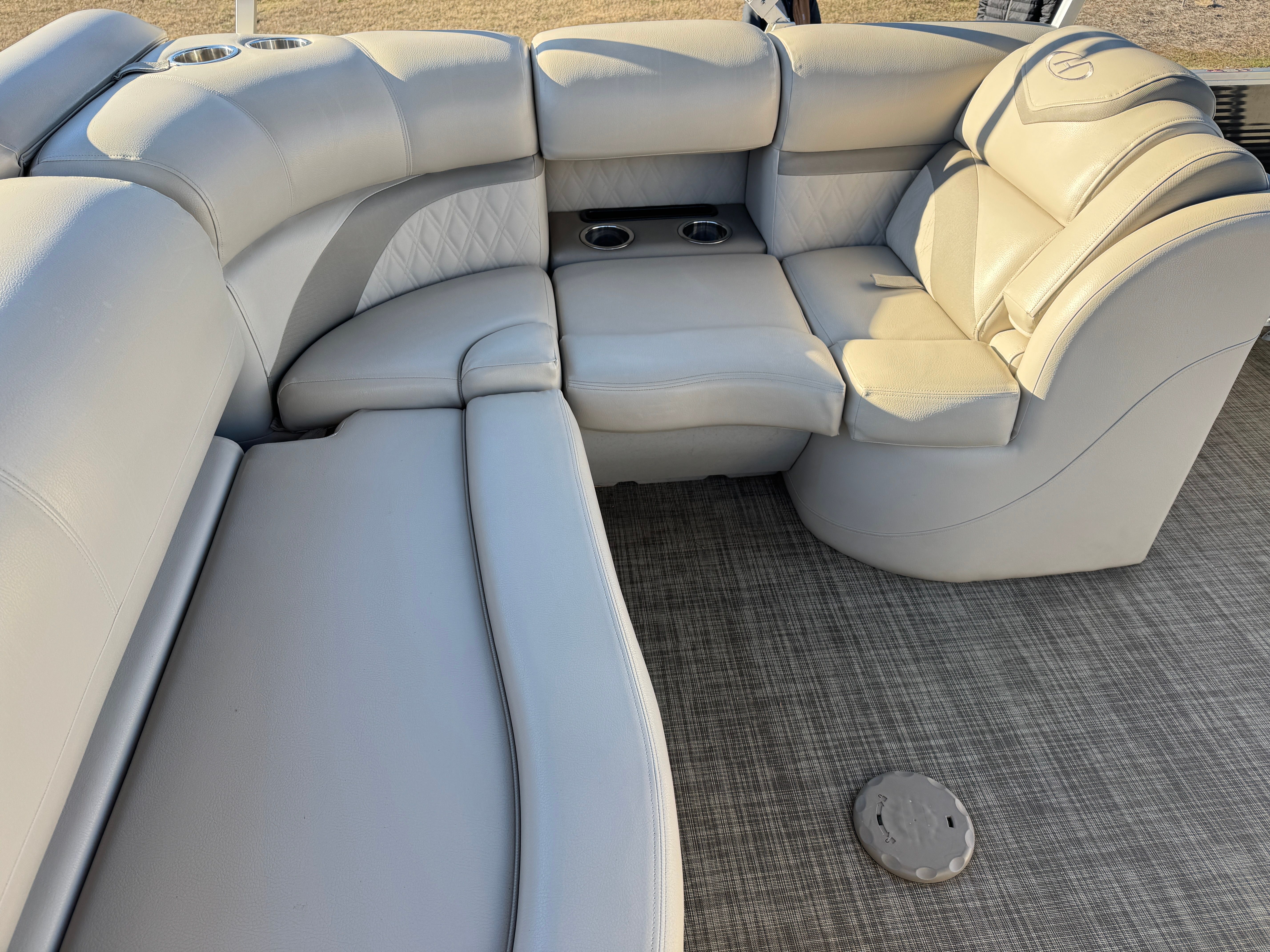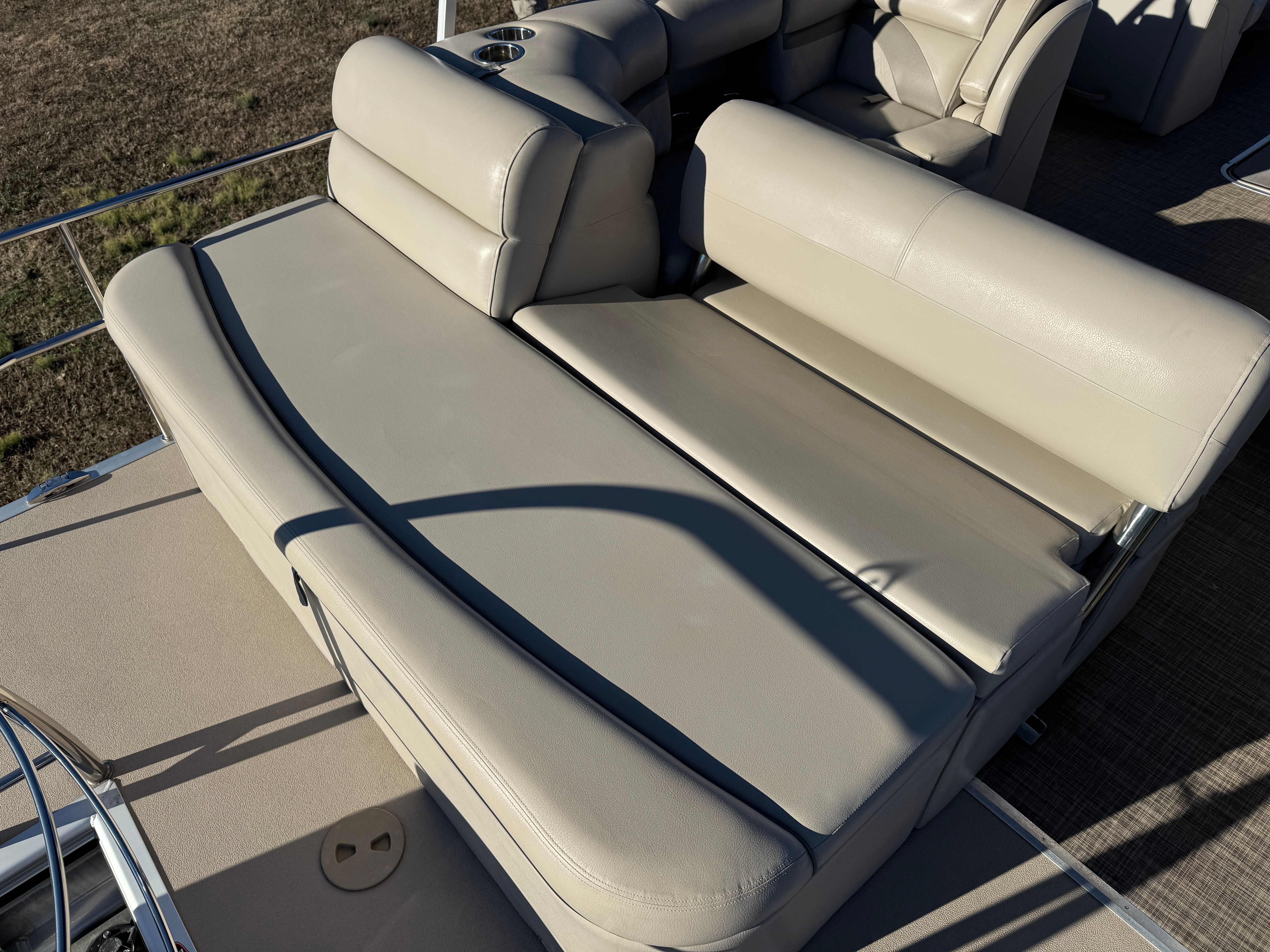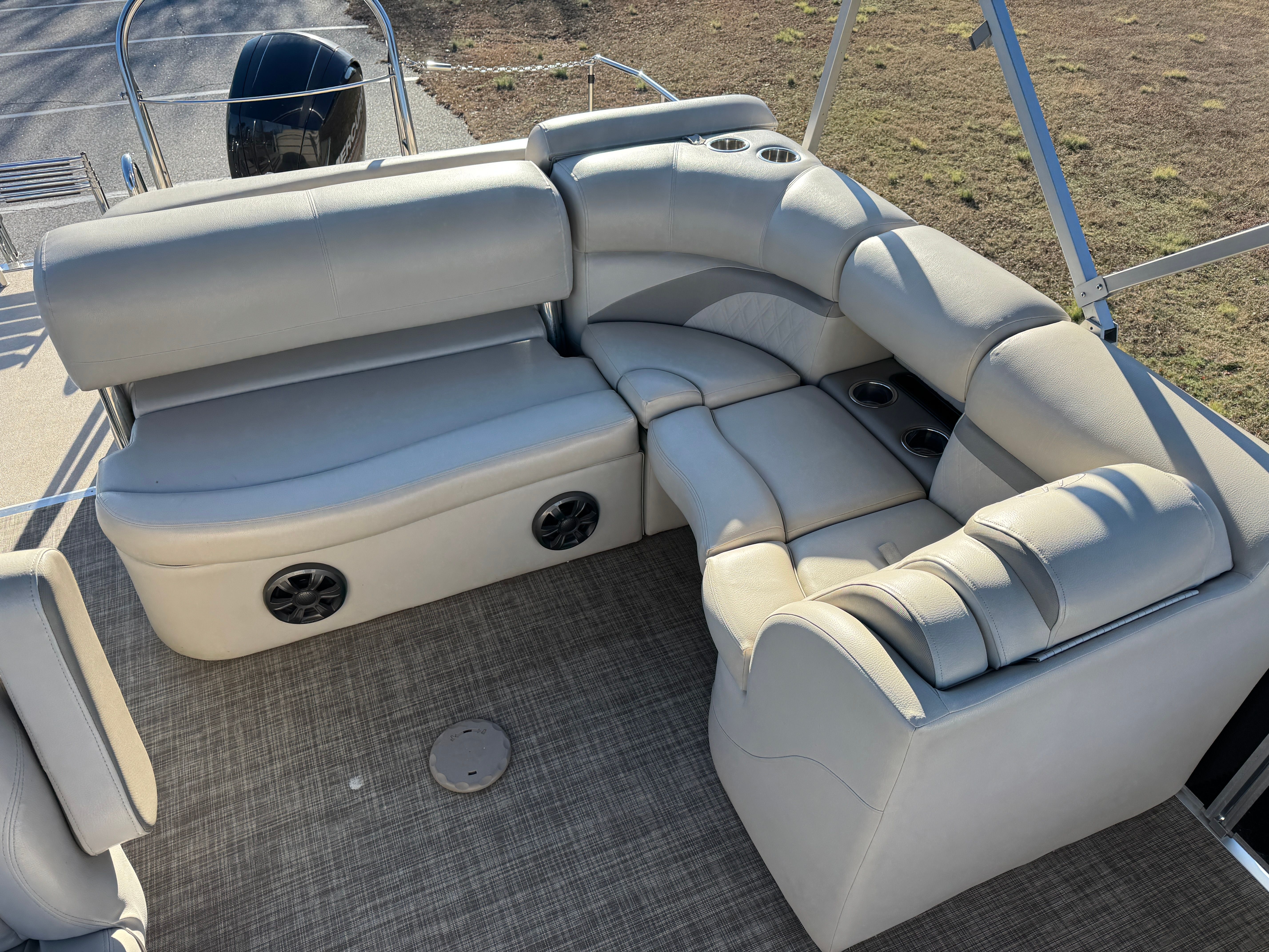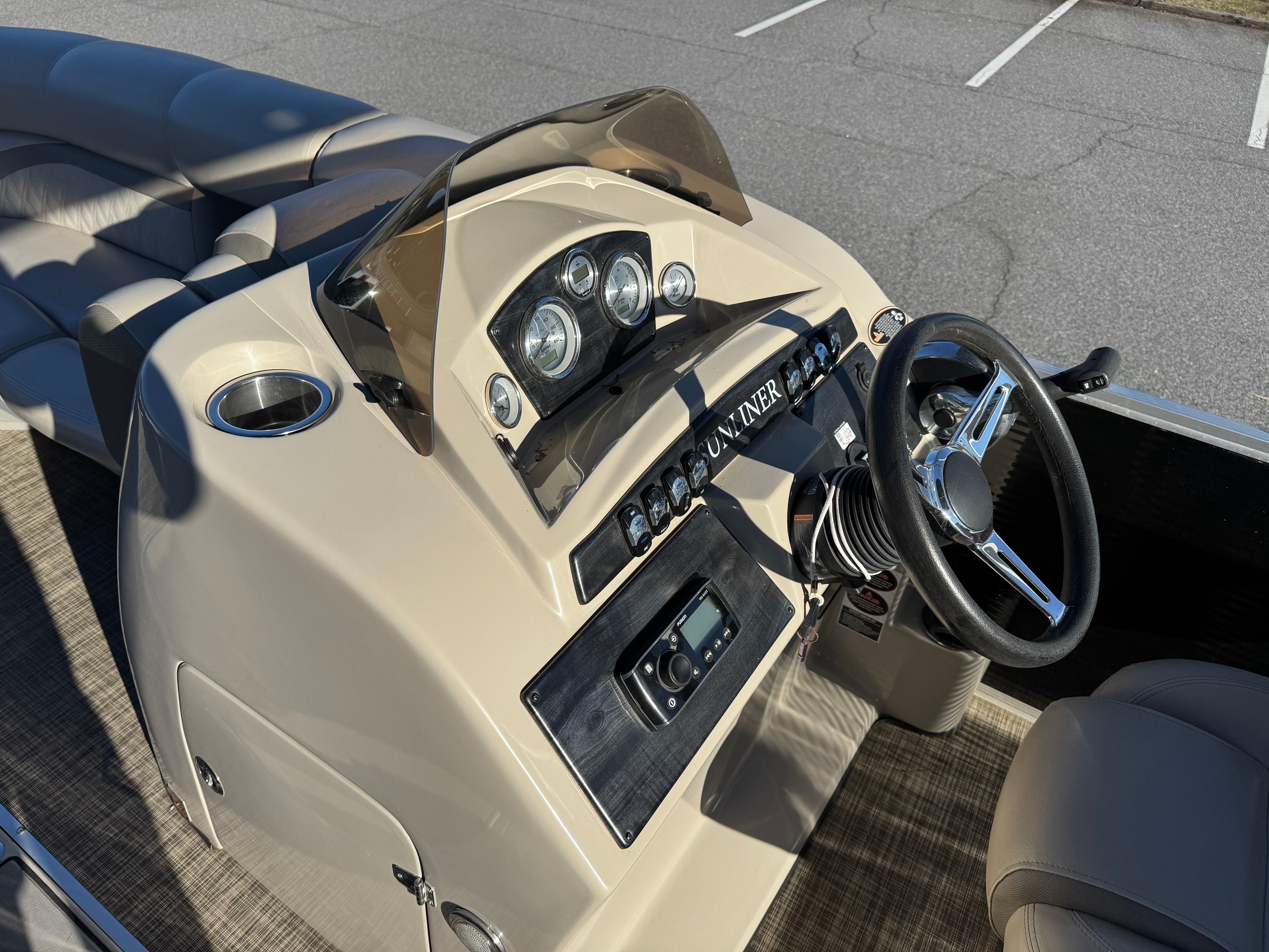 The Harris Sunliner 230 is as practical as it is enjoyable. Its manageable size makes docking and trailering straightforward, even for those new to pontoon ownership. The efficient 150-horsepower engine provides a great balance of power and fuel economy, so you can explore further without worrying about frequent refueling stops.Storage is always a consideration for boaters, and the Sunliner 230 delivers with cleverly designed compartments to keep your gear organized and out of the way. Whether you’re packing for a day of fishing, bringing along water toys, or stowing picnic supplies, you’ll appreciate the thoughtful storage solutions throughout the boat.
