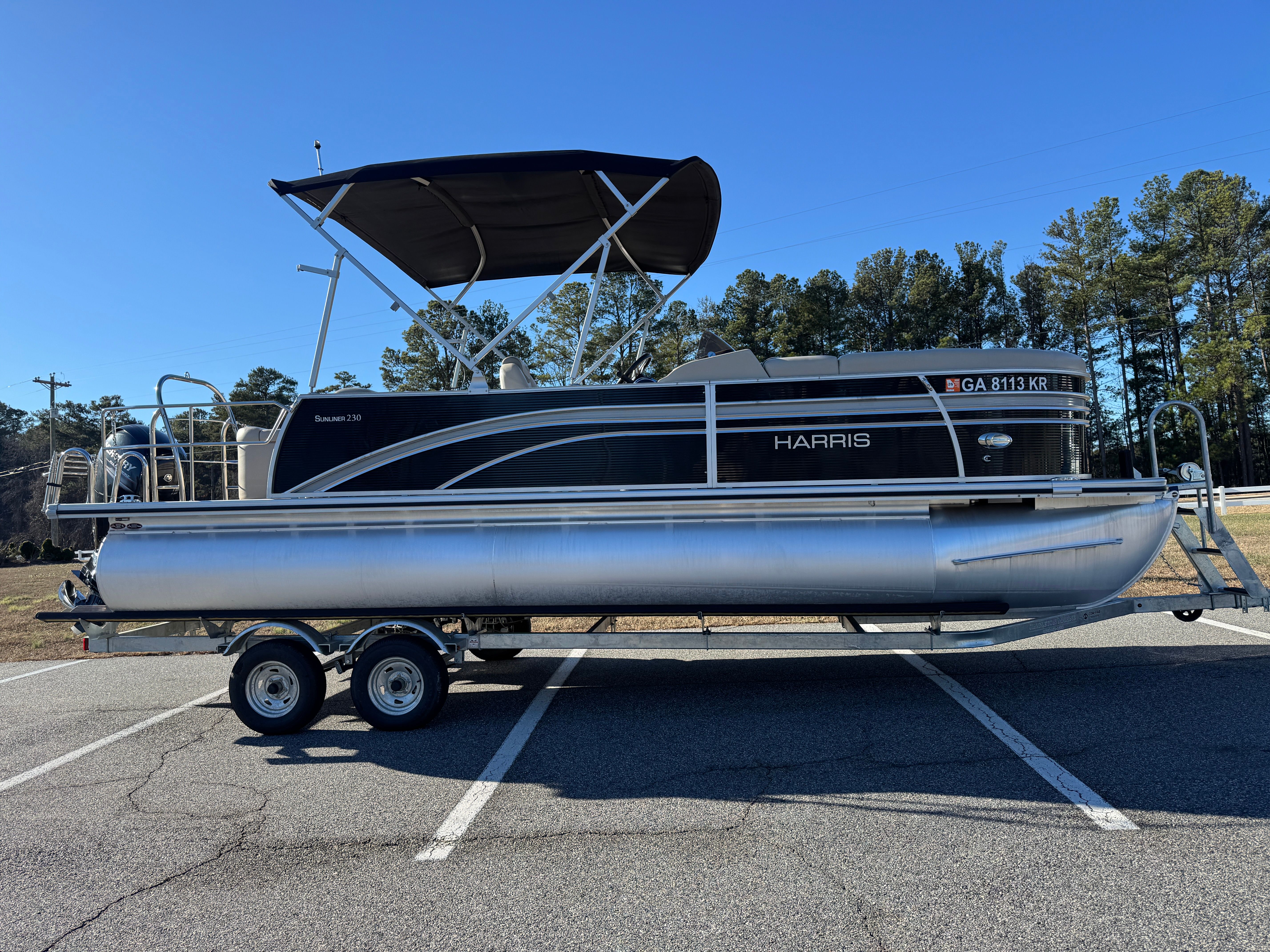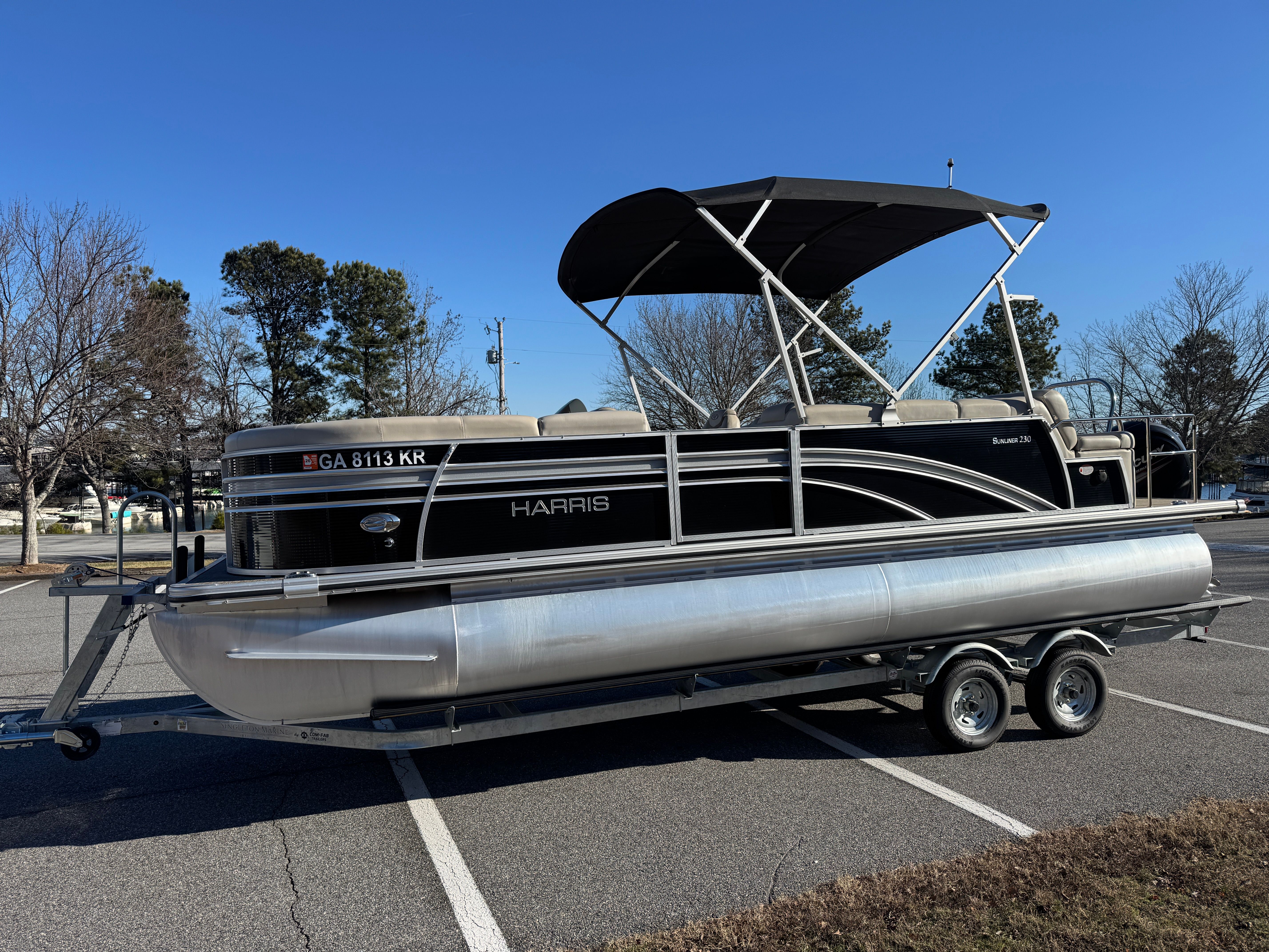 In summary, the 2019 Harris Sunliner 230 stands out as an exceptional pontoon boat for sale, combining style, performance, and versatility in one attractive package. With its 23.4-foot length, 150-horsepower engine, and only 129 engine hours, this used Harris boat for sale is ready to deliver countless days of fun and relaxation on the water. The spacious layout, quality construction, and thoughtful features make it a top choice for families, friends, and anyone seeking the ultimate boating experience.Don’t miss your chance to own this outstanding Harris Sunliner 230 pontoon. Contact the dealer today to learn more and start your next adventure on the water!
