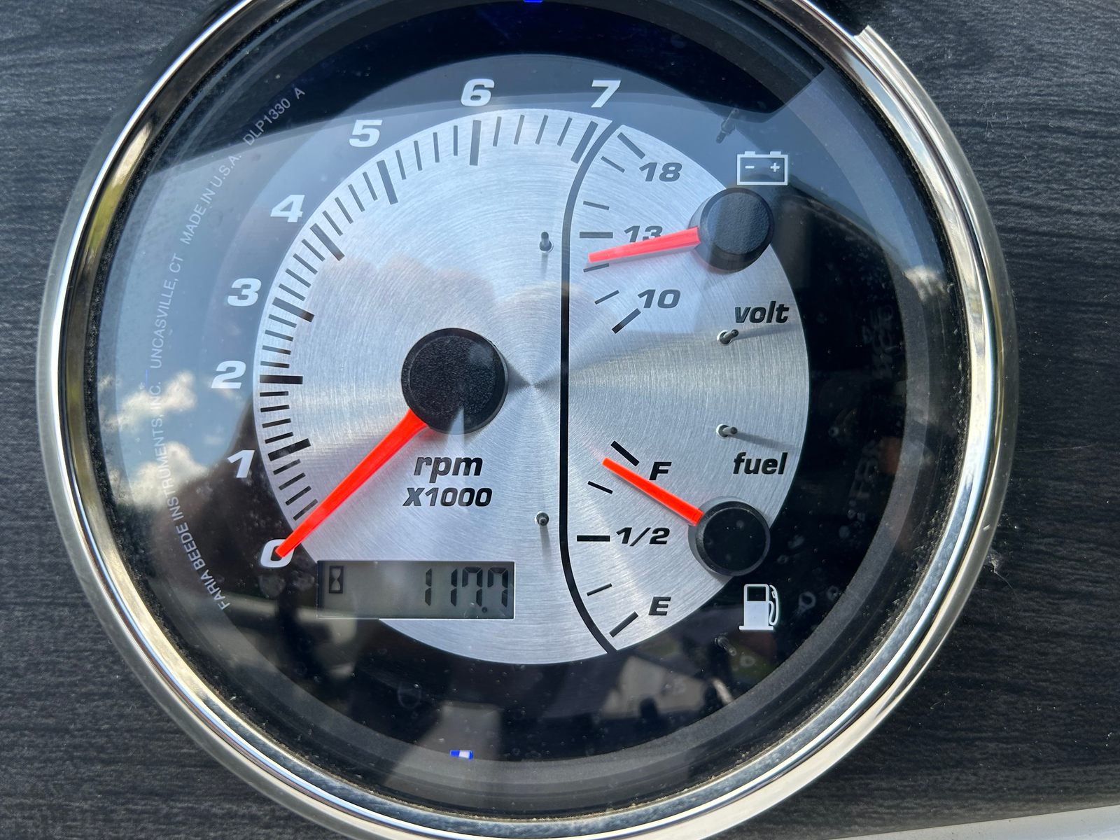Powering this impressive pontoon is a single engine with 150 horsepower, delivering a smooth and responsive ride. The 150 HP engine provides the perfect balance of power and efficiency, allowing you to cruise effortlessly, tow water toys, or reach your favorite fishing spot with ease. With only 117 engine hours, this Hurricane FD 196 promises reliable performance for many seasons to come. The engine’s design ensures quiet operation and fuel efficiency, so you can spend more time enjoying the water and less time at the fuel dock. Whether you are gliding across calm waters or navigating through gentle waves, the Hurricane FD 196 offers a confident and enjoyable boating experience.