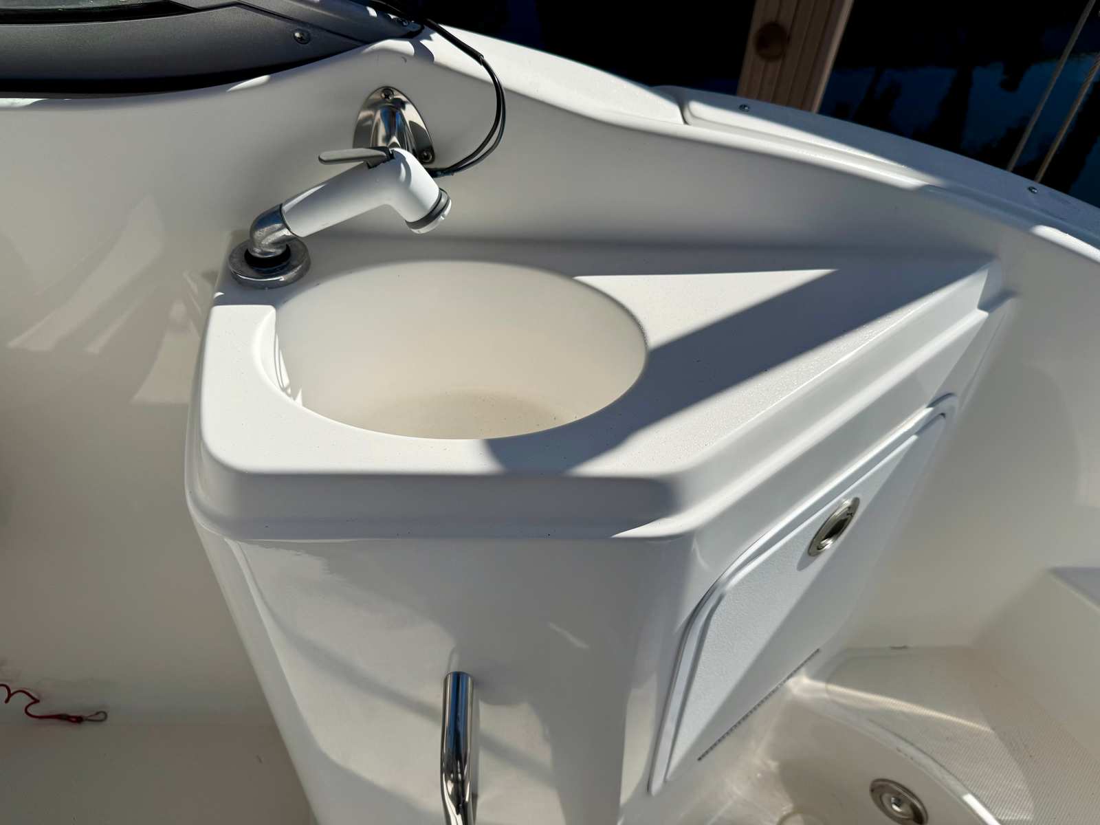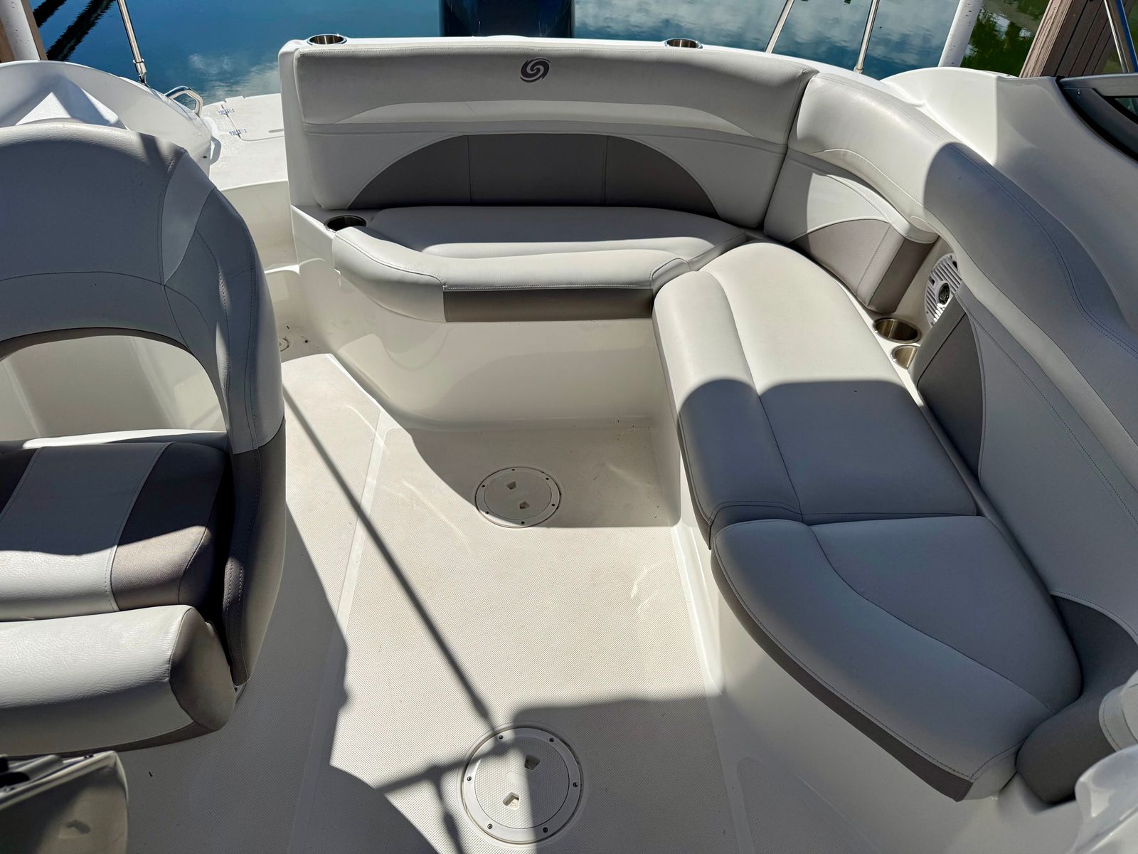 This 220DC comes well equipped with a Garmin 9-inch navigation display with integrated sonar for confident navigation, an AM/FM/Bluetooth stereo system with bow-to-stern speakers, a fully enclosed marine head, a convenient wet bar with freshwater sink, ample seating throughout, and generous storage options for gear and watersports equipment. Whether you’re out for a relaxing cruise, a day of sandbar hopping, or enjoying watersports with family and friends, this Hurricane is ready to deliver.