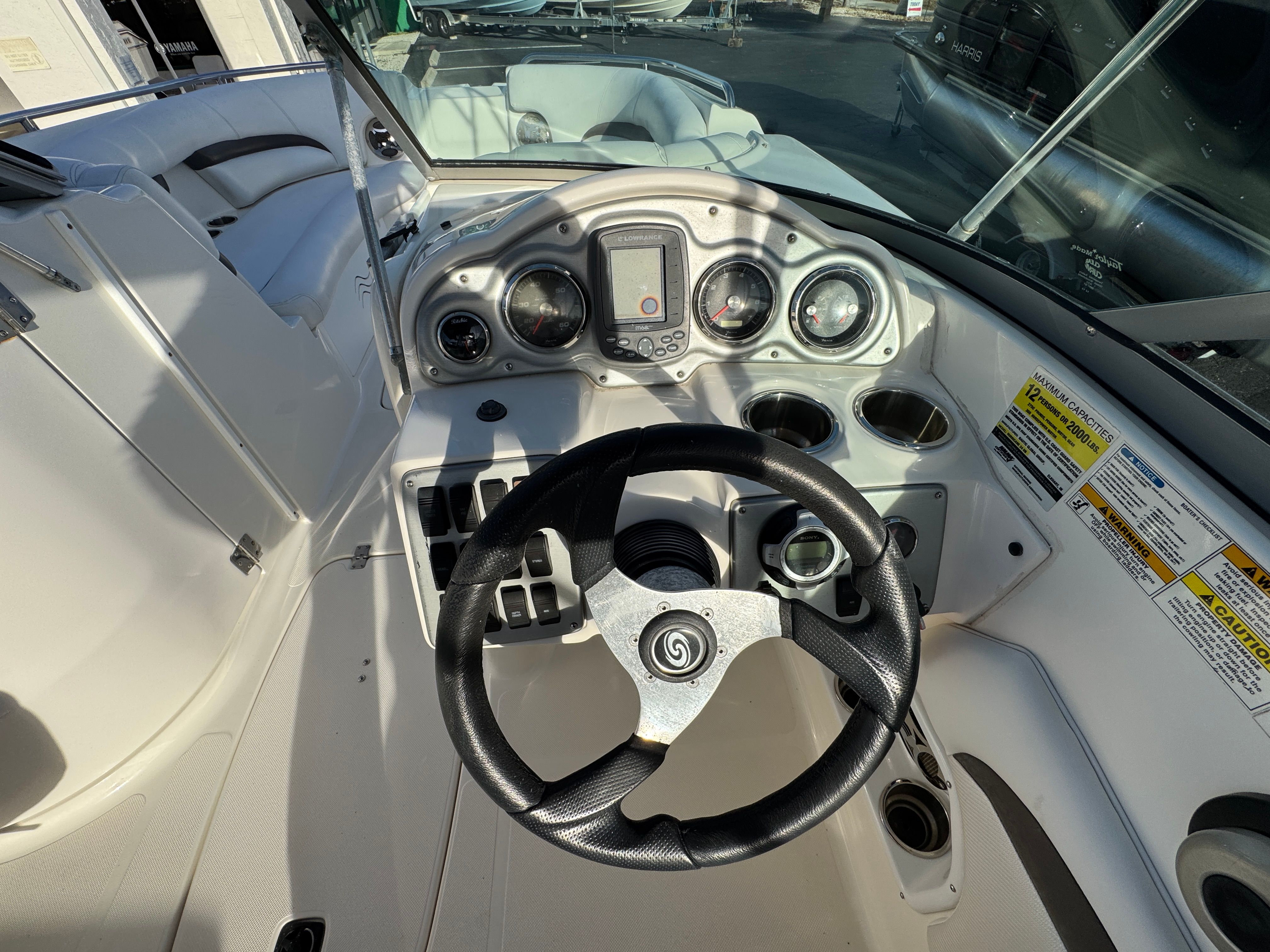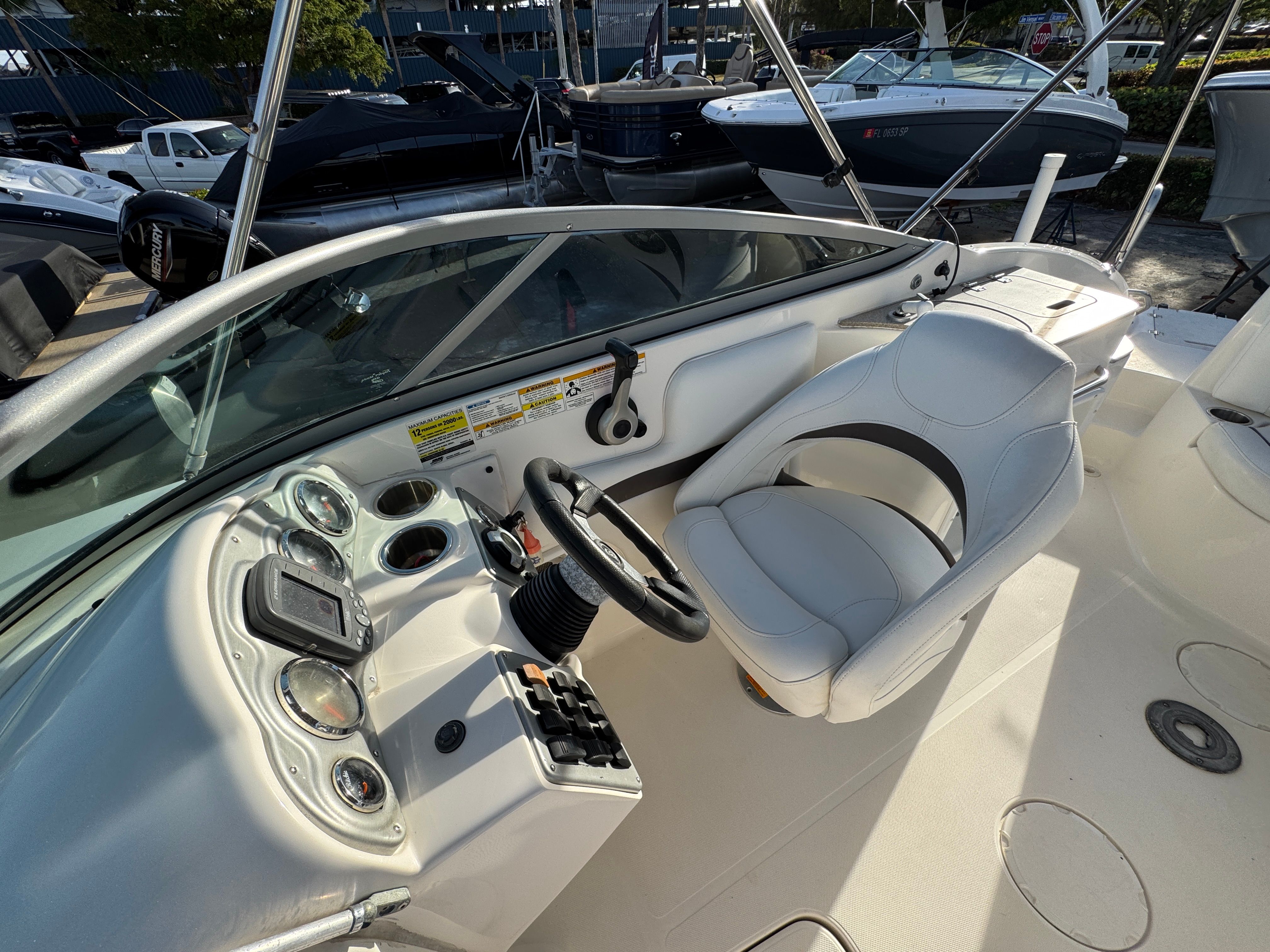 The 2012 Hurricane Sundeck 2400 truly shines in a variety of scenarios. Planning a family outing? The spacious deck and comfortable seating make it easy to bring everyone along for a day of swimming, sunbathing, and picnicking. Love fishing? The open layout provides plenty of room to cast a line and store your catch. Looking for adventure? The powerful engine and stable hull allow you to explore new waterways, tow water toys, or simply cruise in style.This deckboat is also perfect for social gatherings, offering a welcoming space for friends to relax, chat, and enjoy the scenery. Its versatility means you can easily transition from a quiet morning of fishing to an afternoon of water sports or an evening cruise under the stars.