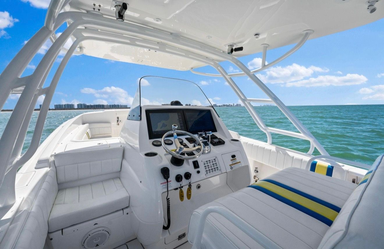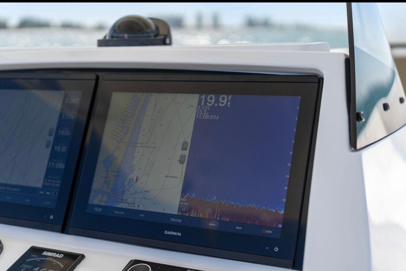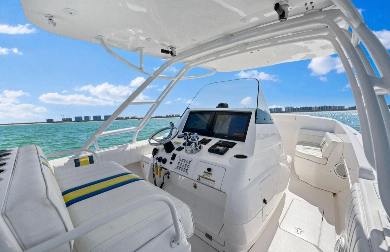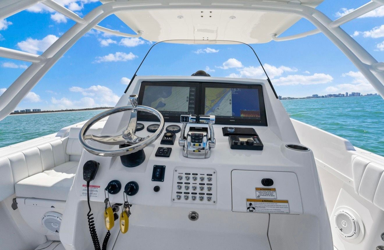 Her gel coat shines with a recent ceramic coating, she offers plenty of seating, her oversized hardtop offers plenty of shade, a cuddy cabin for extra storage/naps and she features excellent Garmin electronics (including an autopilot and radar) with 50k worth of recent improvements.