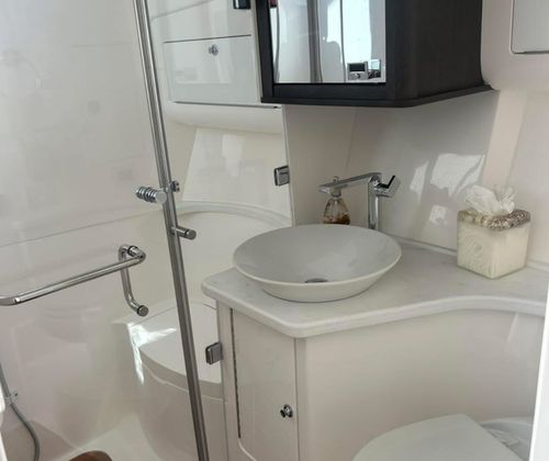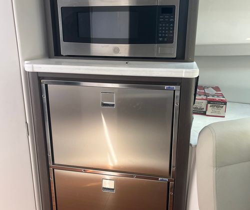 Powering the Intrepid 438 Evolution are three high-performance engines, delivering a combined 1350 horsepower. With only 492 engine hours, these motors promise plenty of life and adventure ahead. The triple engine configuration ensures impressive speed, smooth acceleration, and responsive handling, making this yacht a pleasure to captain. Whether you’re navigating open waters or maneuvering in tight marinas, the Intrepid 438 Evolution offers the kind of performance that sets it apart from other yacht boats for sale. The advanced propulsion system not only provides exhilarating speed but also enhances fuel efficiency, allowing you to enjoy longer journeys with fewer stops.