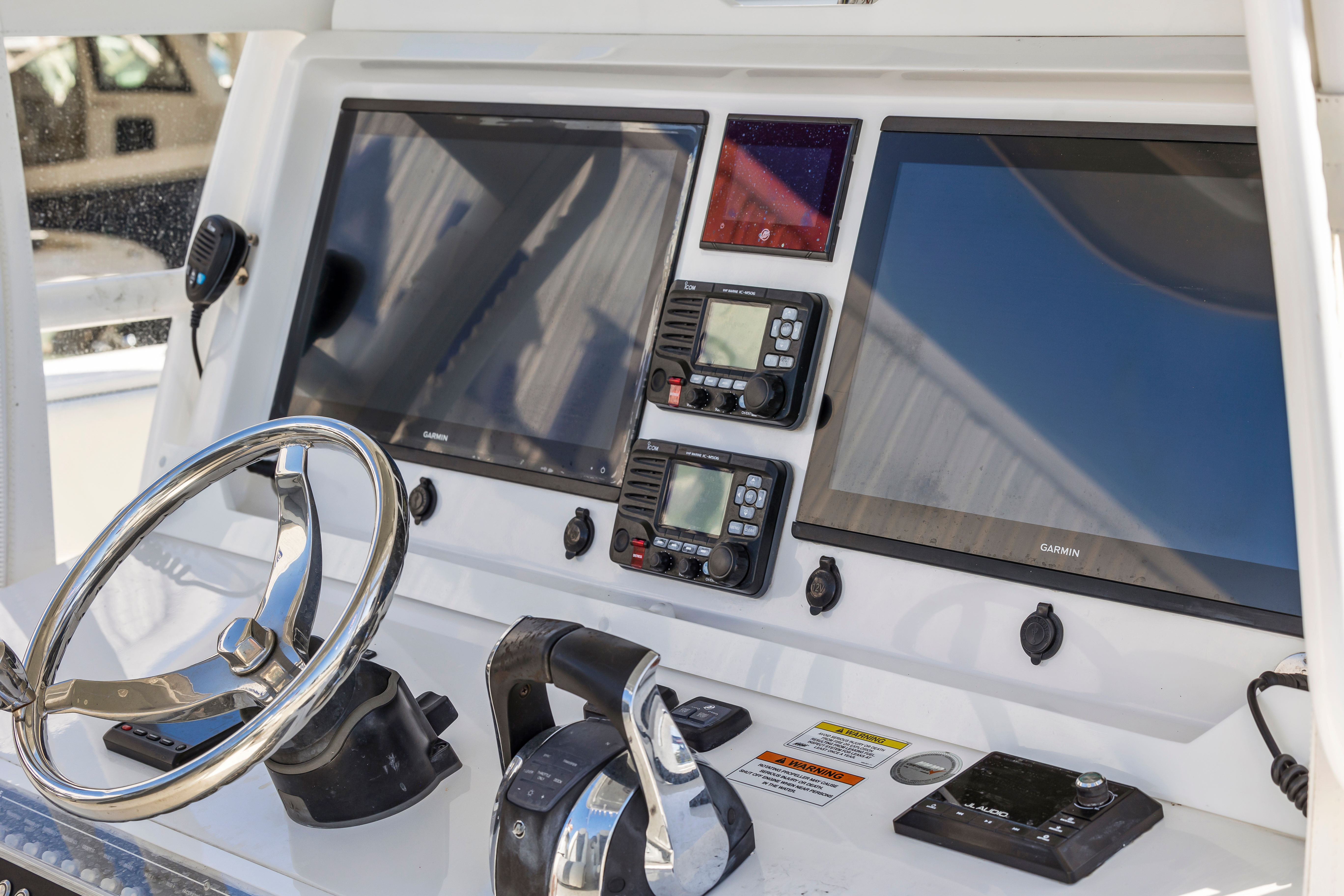 At the heart of this Invincible 40 Catamaran are four powerful engines, delivering a combined 1600 horsepower. With only 998 engine hours, these motors have plenty of life left, ensuring reliable performance for years to come. The quad-engine setup provides exhilarating acceleration, impressive top-end speed, and the ability to cover long distances with ease. Whether you are chasing game fish offshore or cruising to your favorite sandbar, the Invincible 40 Catamaran offers the kind of performance that sets it apart from other Center Console boats for sale. The catamaran hull design enhances fuel efficiency and delivers a smooth, dry ride even in challenging sea conditions, making every journey more enjoyable and comfortable.