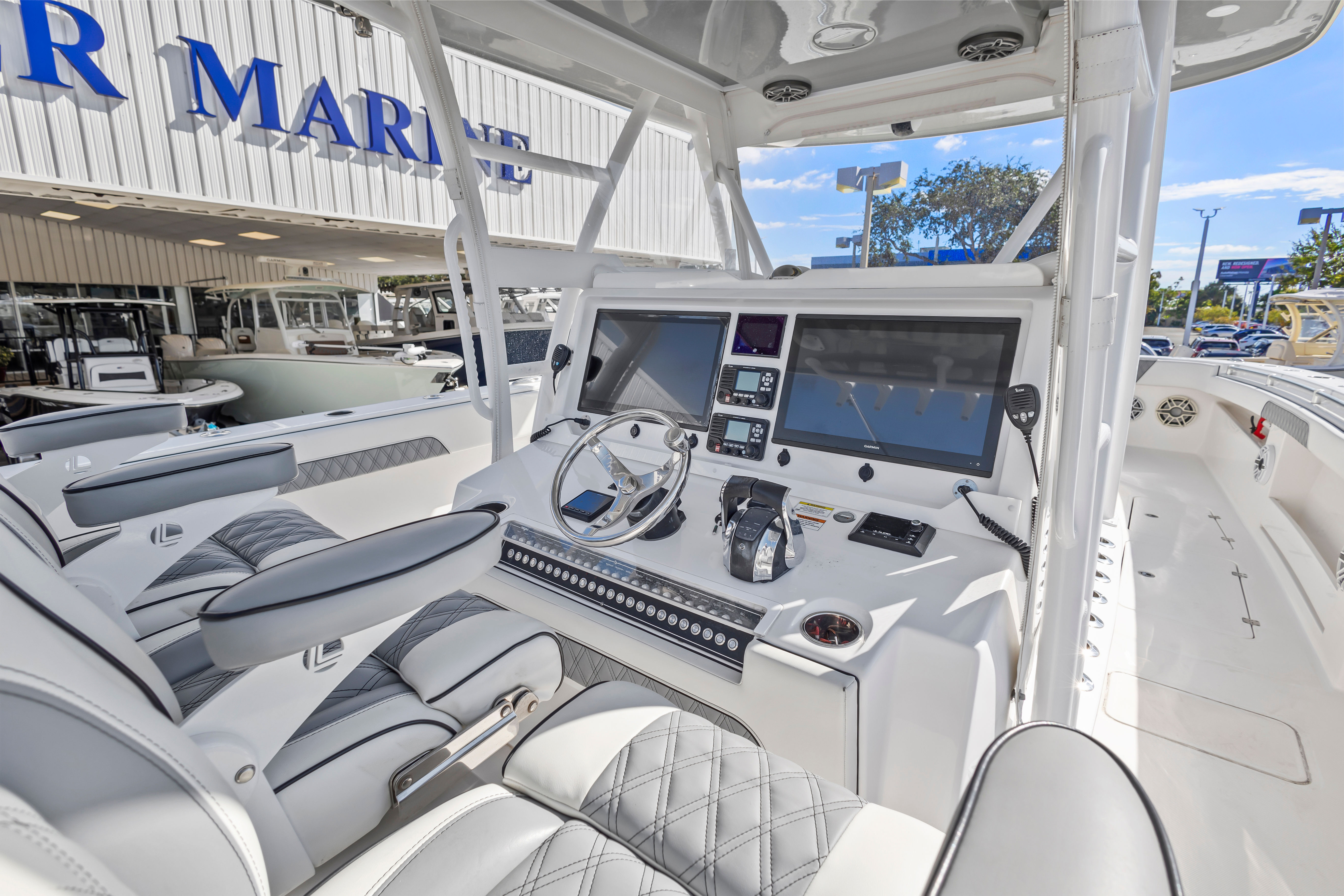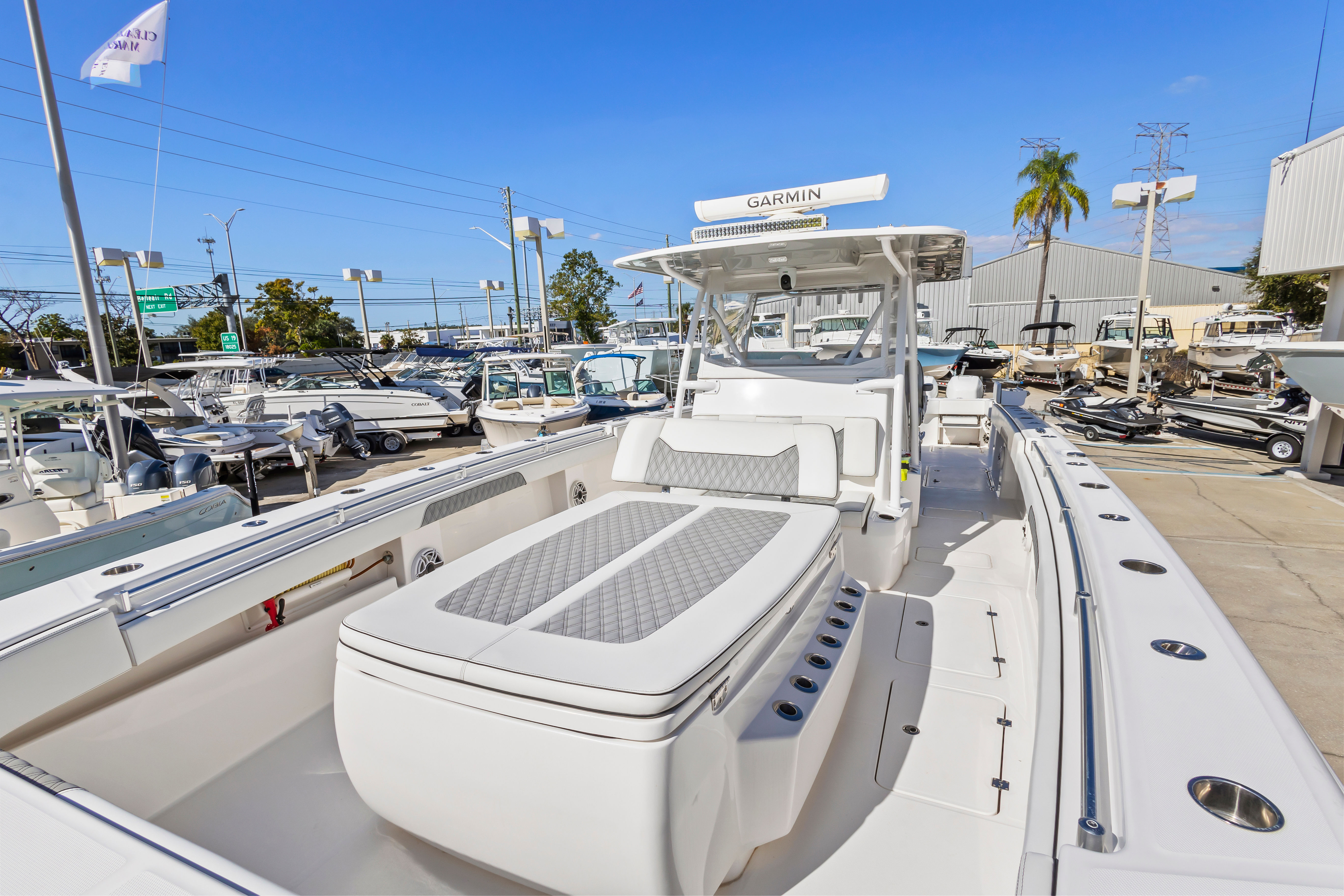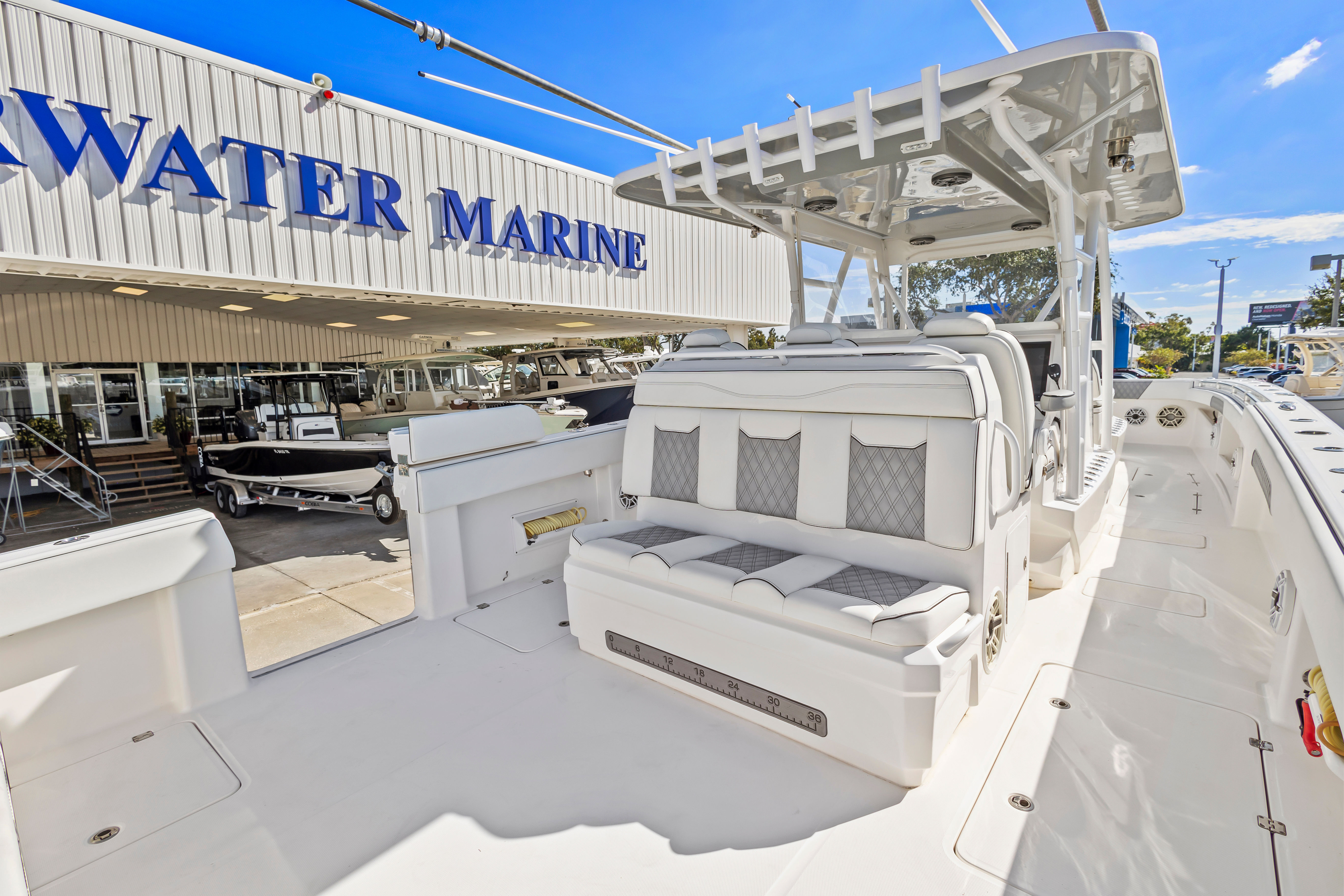 The Invincible 40 Catamaran is packed with features that cater to both serious anglers and those who appreciate luxury on the water. Its expansive Center Console layout provides unobstructed 360-degree access, perfect for fishing or entertaining. The wide beam offers exceptional stability, allowing you and your guests to move about the deck with confidence. The spacious deck is designed for versatility, accommodating everything from fishing gear to lounge seating for relaxing in the sun.Special features of this model include a robust quad-engine configuration, a state-of-the-art catamaran hull, and a thoughtfully designed helm station that puts all controls within easy reach. The console is equipped with ample storage for electronics and personal items, while the deck layout is optimized for both fishing and socializing. Every detail of the Invincible 40 Catamaran is engineered to enhance your experience on the water, from the high-quality materials to the smart, user-friendly design.