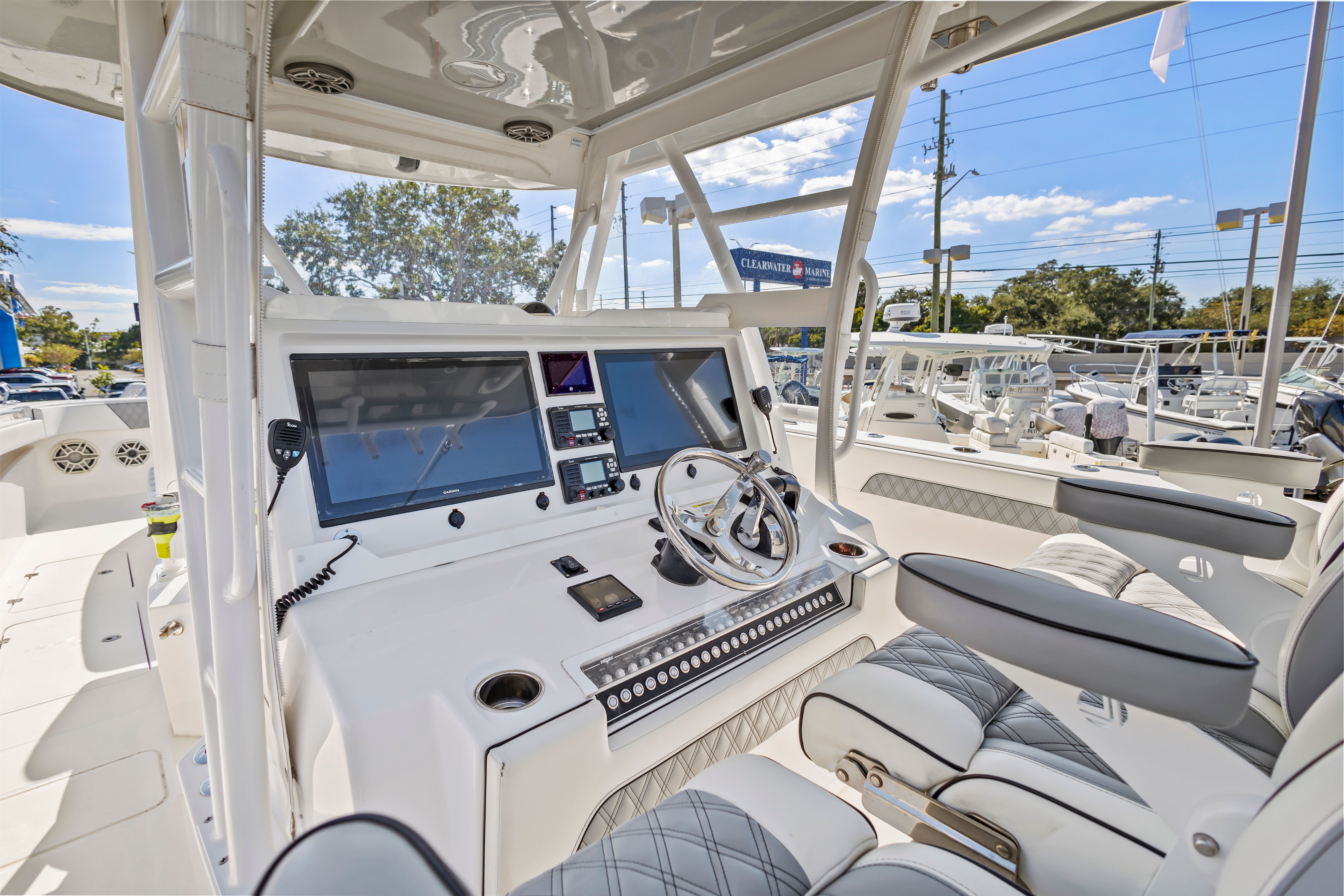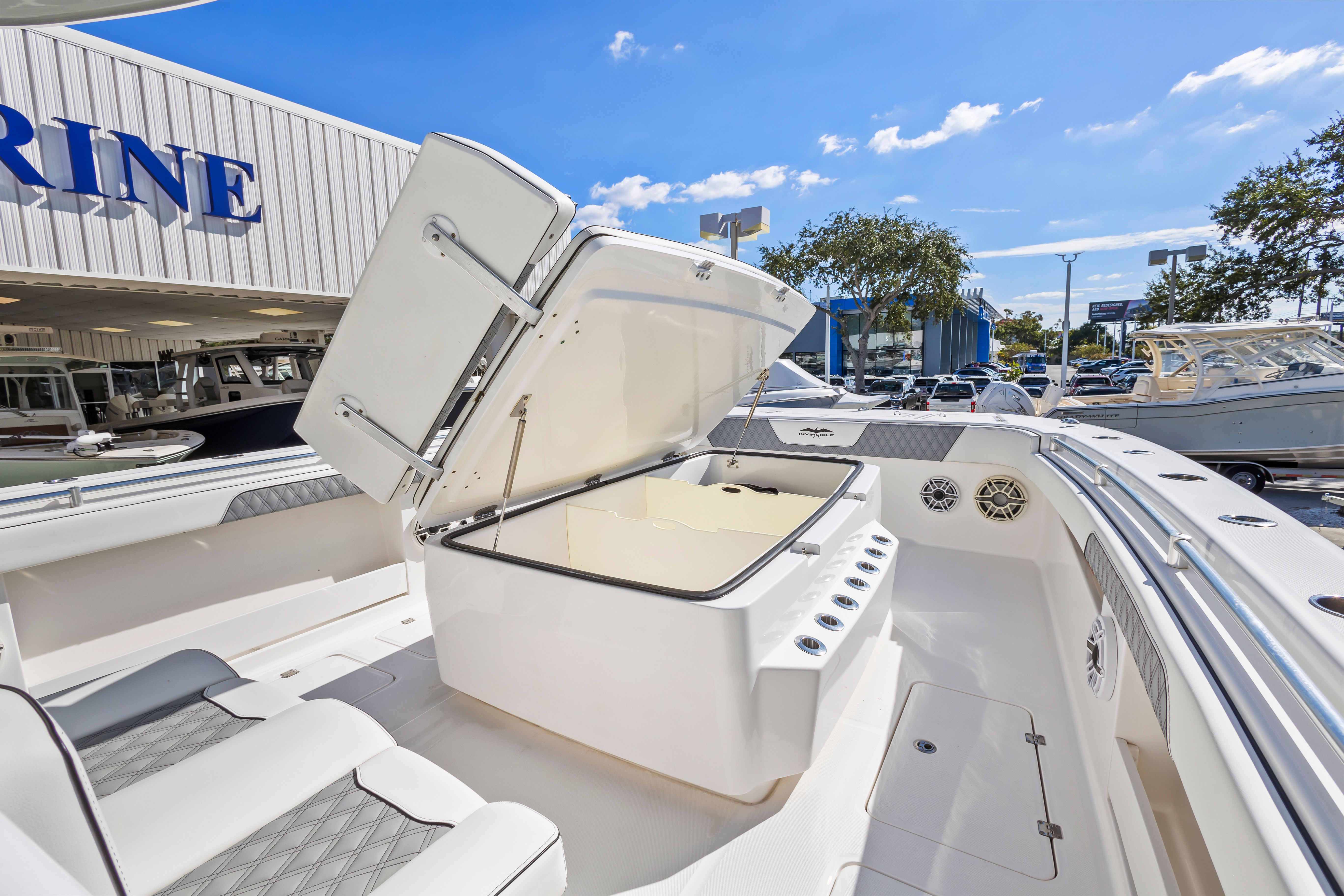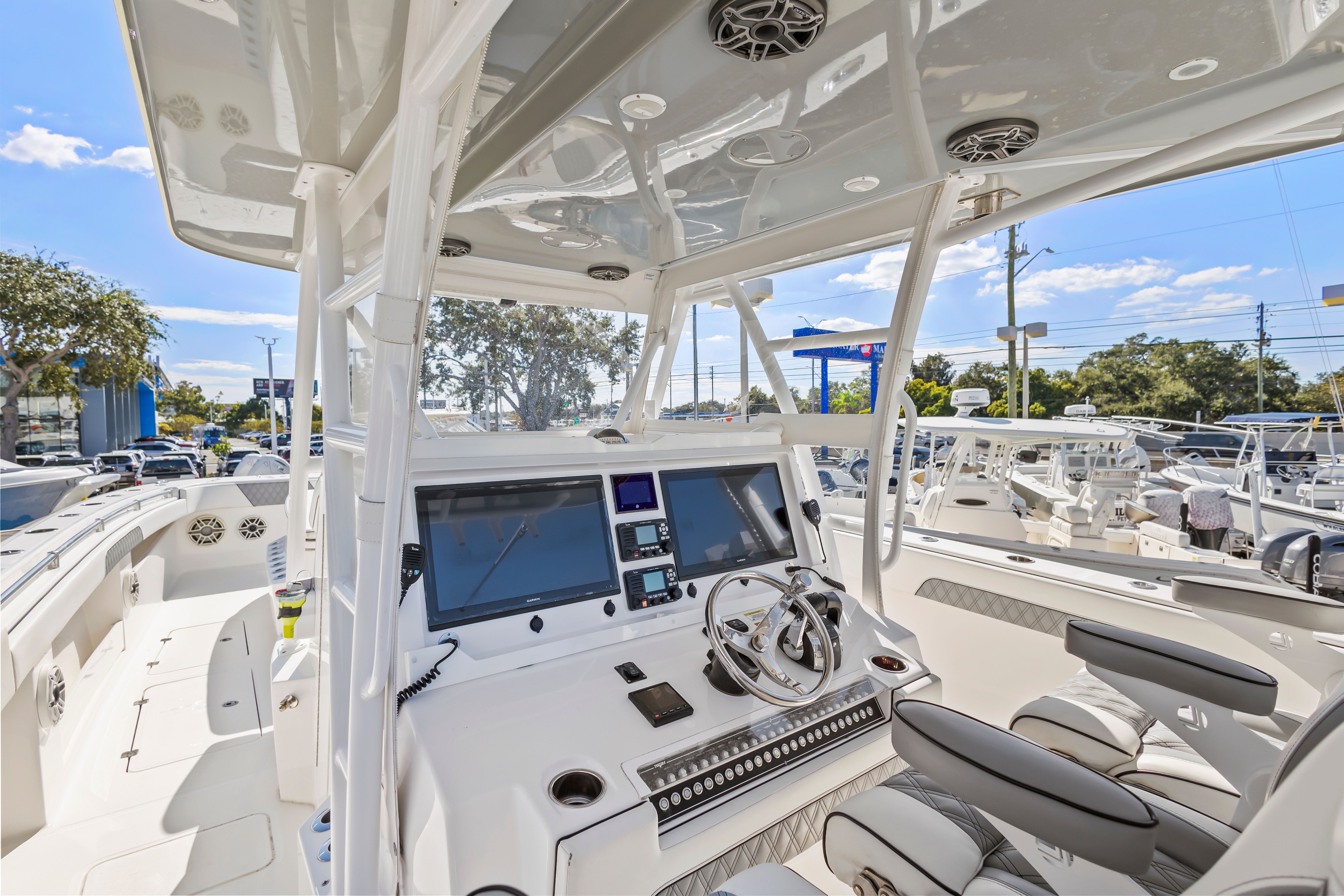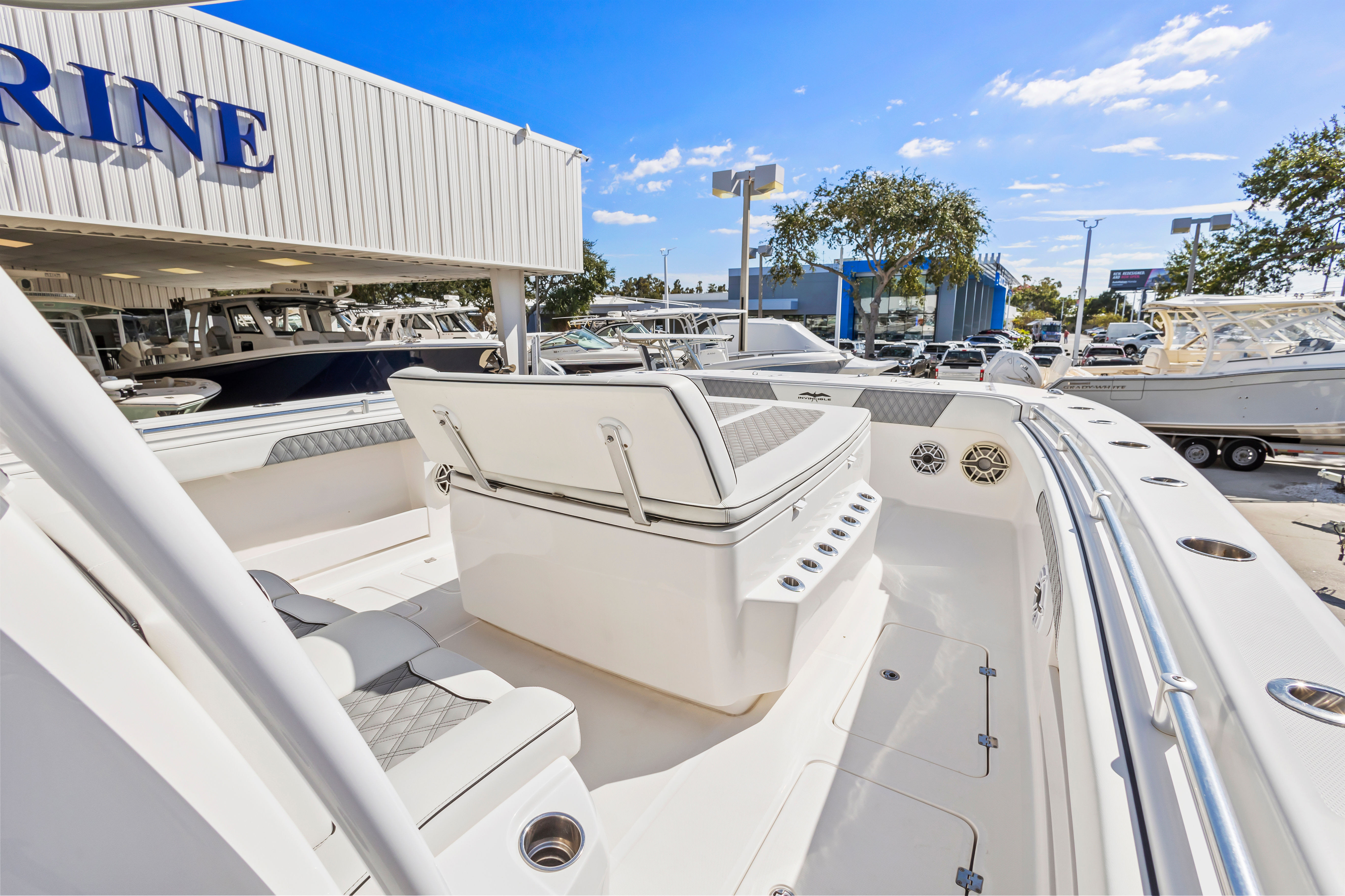 The Invincible 40 Catamaran is packed with features that cater to both serious anglers and those who appreciate luxury on the water. Its expansive Center Console layout provides unobstructed 360-degree access, perfect for fishing or entertaining. The wide beam offers exceptional stability, allowing you and your guests to move about the deck with confidence. The spacious deck is designed for versatility, accommodating everything from fishing gear to lounge seating for relaxing in the sun.Special features of this model include a robust quad-engine configuration, a state-of-the-art catamaran hull, and a thoughtfully designed helm station that puts all controls within easy reach. The console is equipped with ample storage for electronics and personal items, while the deck layout is optimized for both fishing and socializing. Every detail of the Invincible 40 Catamaran is engineered to enhance your experience on the water, from the high-quality materials to the smart, user-friendly design.
