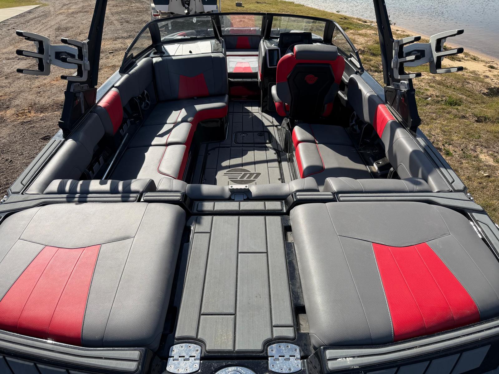 At the heart of the 2021 Malibu Wakesetter 23 MXZ is a powerful single engine delivering an exhilarating 430 horsepower. This robust engine ensures that the boat has all the muscle needed to create massive wakes and smooth rides, whether you are wakeboarding, waterskiing, or simply cruising across the lake. The advanced engineering behind this Malibu boat for sale guarantees responsive handling, quick acceleration, and reliable performance, making every outing a memorable adventure. The 430-horsepower engine is designed to provide both power and efficiency, so you can spend more time enjoying the water and less time worrying about fuel stops.