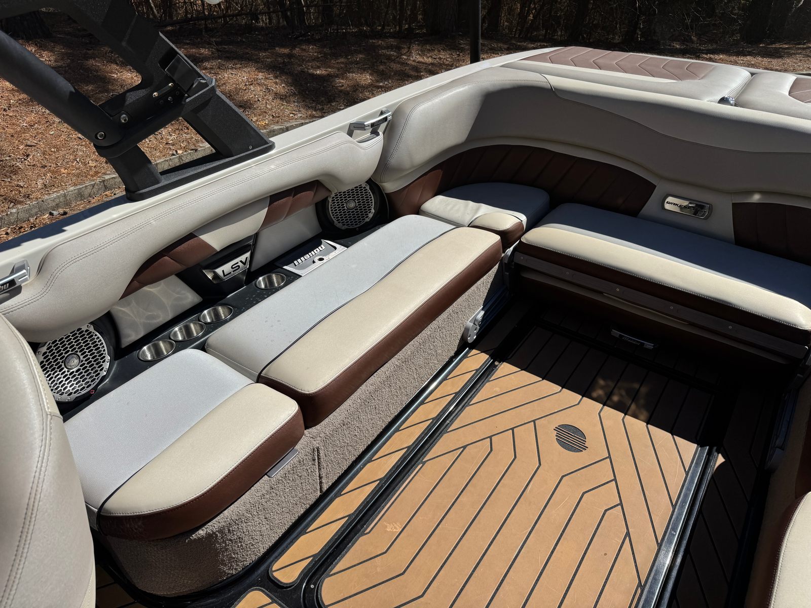 The Malibu Wakesetter 25 LSV shines in a variety of scenarios, making it the perfect choice for families, friends, and serious wake sports enthusiasts alike. Picture yourself launching into glassy water at sunrise, the boat’s powerful engine creating the perfect wake for your first ride of the day. Later, gather your crew for an afternoon of tubing, swimming, and sunbathing, with plenty of space for everyone to spread out and relax. The 25 LSV is also ideal for hosting on-the-water gatherings, with its comfortable seating and inviting atmosphere. Whether you’re chasing the perfect wave, exploring new coves, or simply enjoying the freedom of the open water, this Malibu boat for sale is built to deliver unforgettable experiences.