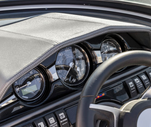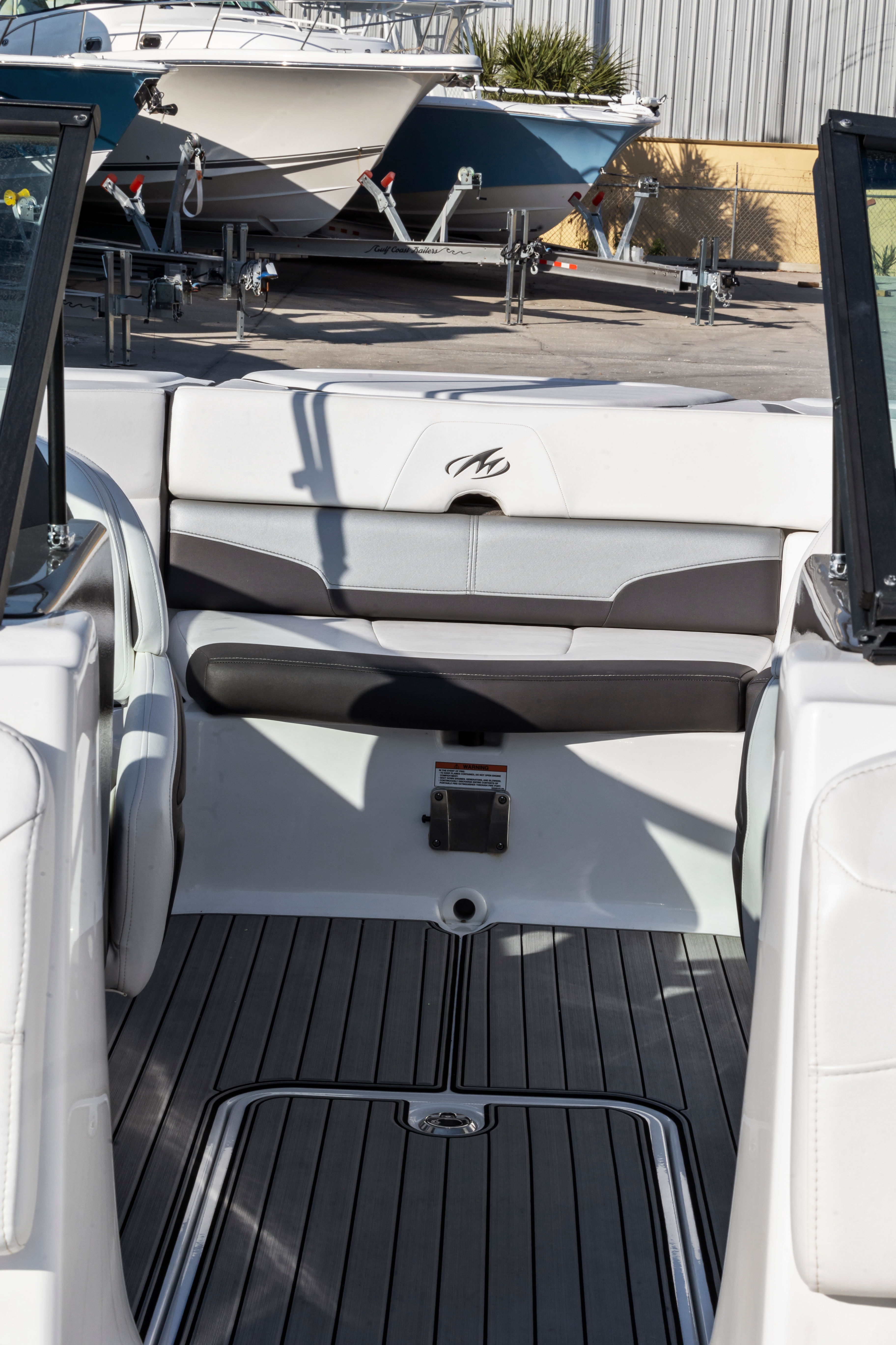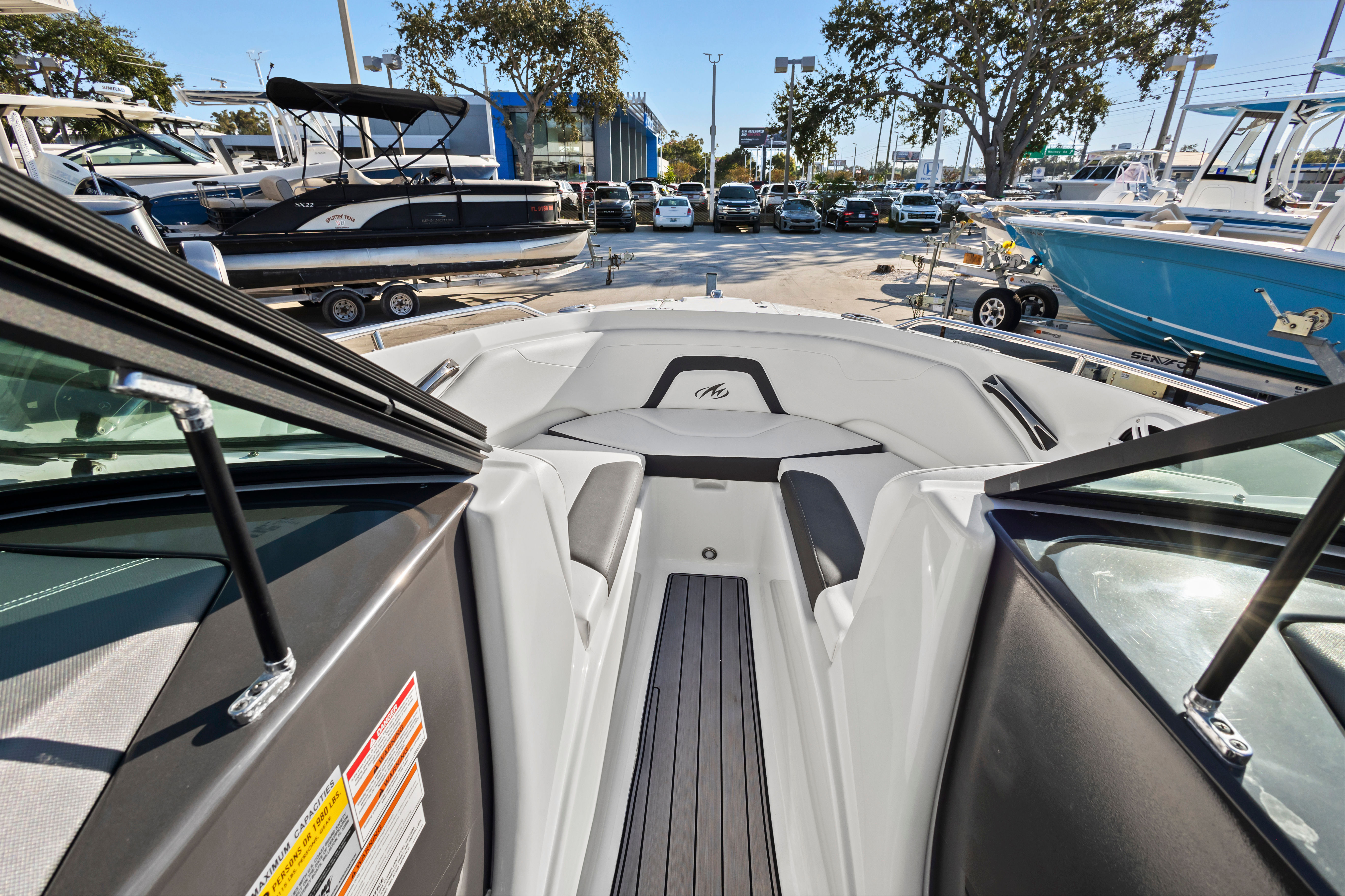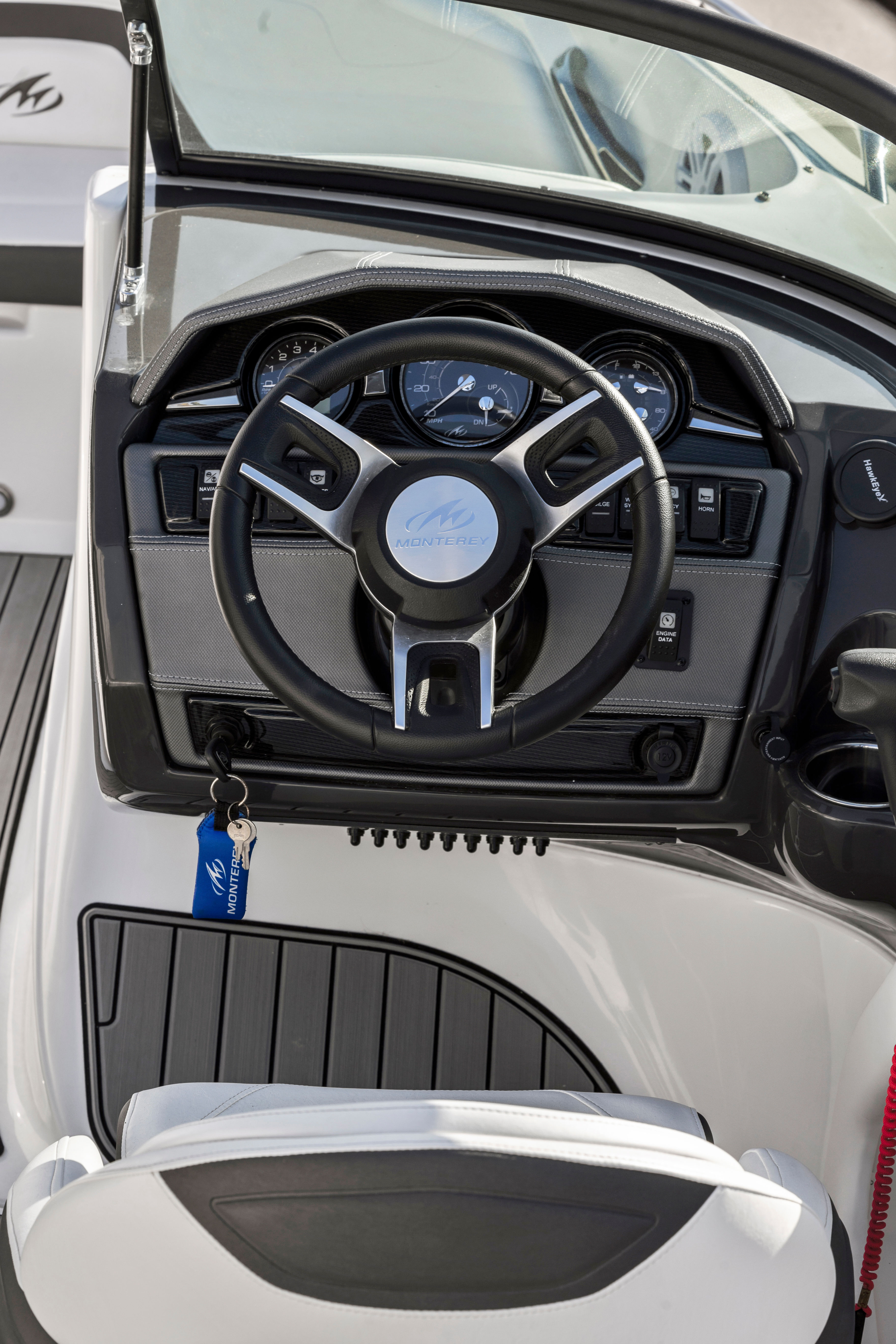 The Monterey 224FS Bowrider is packed with features that enhance both comfort and convenience. Its spacious cockpit and bow seating areas are thoughtfully designed to maximize passenger comfort, providing ample room for relaxation and socializing. The ergonomic helm station offers intuitive controls and excellent visibility, ensuring a stress-free boating experience. High-quality materials and attention to detail are evident throughout, from the plush seating to the stylish accents that define the Monterey brand.This Bowrider’s 22-foot length provides a generous amount of onboard space without sacrificing agility or ease of handling. The open bow design invites guests to stretch out and soak up the sun, while the wraparound windshield offers protection from the elements. Storage compartments are strategically placed to keep gear organized and out of the way, allowing you to make the most of your time on the water.