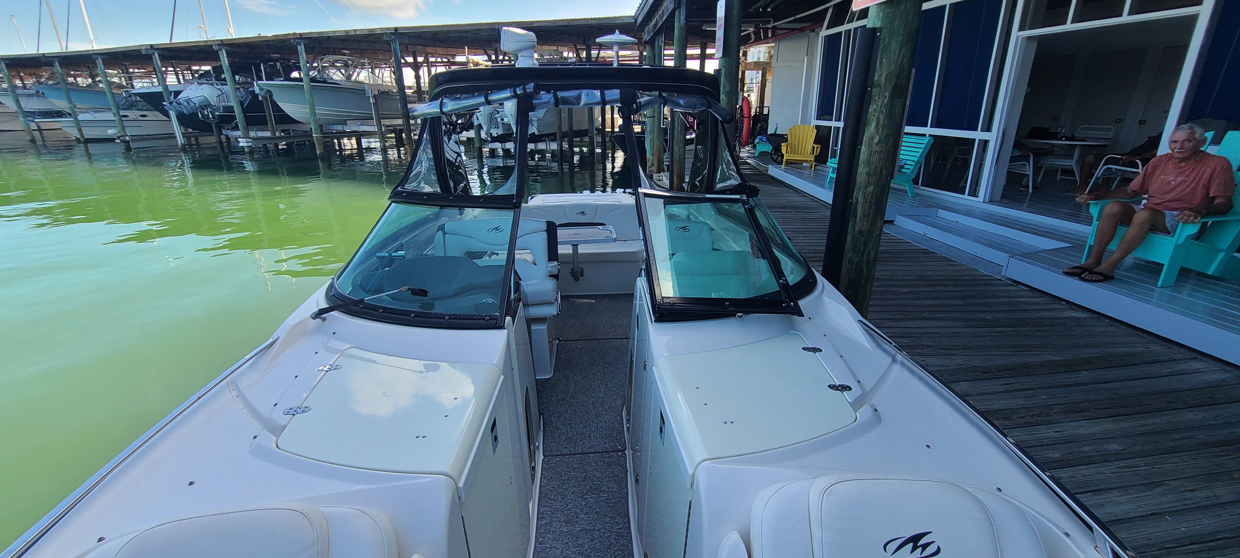 Practicality is a hallmark of the Monterey 328SS. The thoughtful storage options allow you to keep the deck clutter-free, making it easy to move around and enjoy every inch of space. Docking is a breeze thanks to the responsive handling and dual engines, giving you confidence in tight marinas or busy docks. The efficient design helps maximize fuel economy, so you can spend more time on the water and less time refueling.The durable construction and quality materials ensure that this bowrider boat for sale is built to last, providing peace of mind for years to come. Whether you are planning a weekend getaway, a day trip with friends, or a spontaneous adventure, the 328SS is ready to deliver a memorable experience every time.