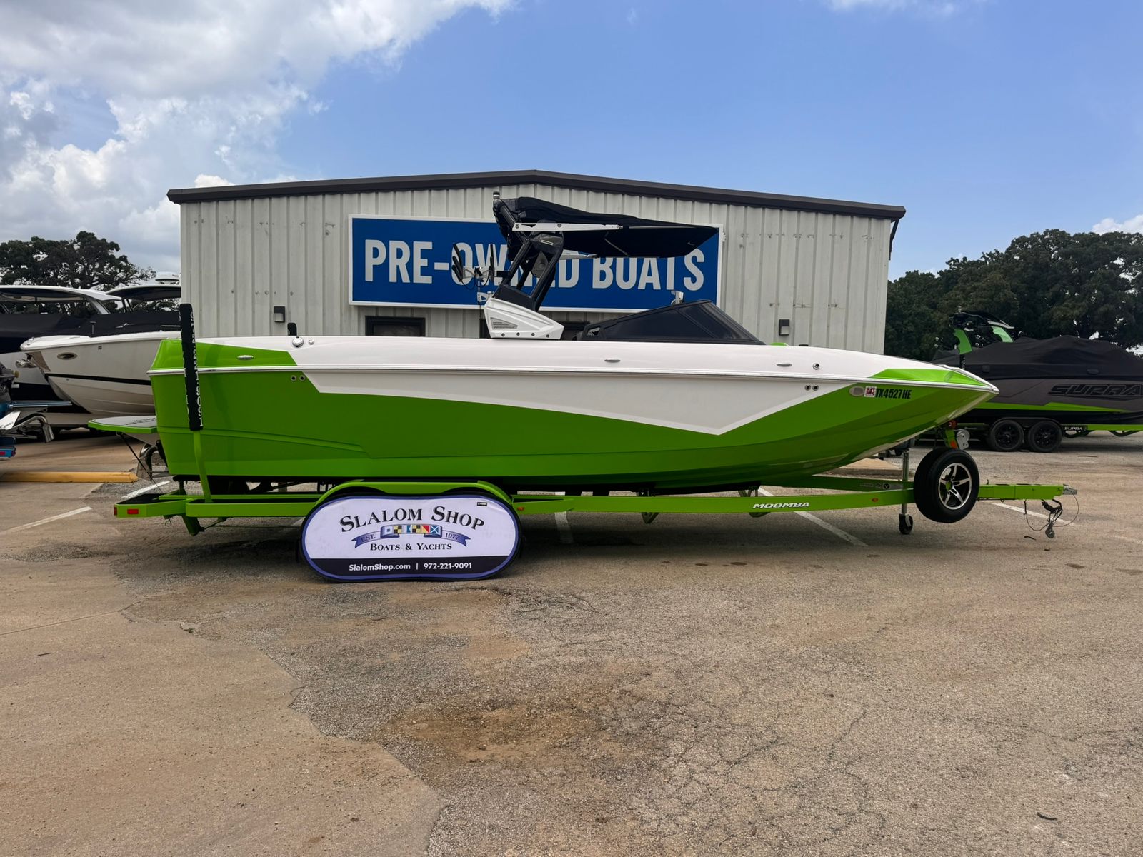 Now available on consignment at our New Used Boat Super Center in Lewisville, this 2019 Moomba Makai delivers high-performance wakesurfing and watersports with luxury features and cutting-edge technology. Finished in Intense Green & White Gelcoat, this Makai is powered by an Indmar 6.2L Raptor Direct Injected V8 Engine and has 378 hours of run time.