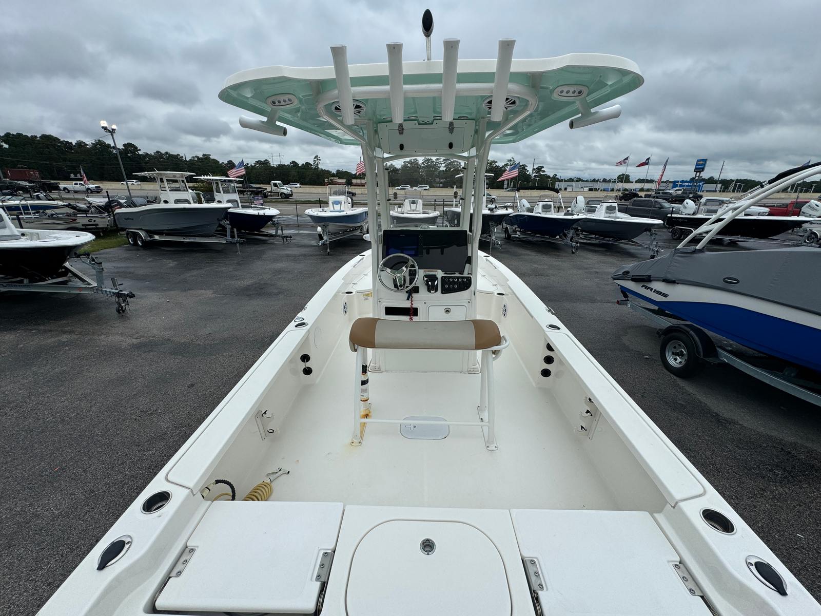 This Bay Boat is engineered for practicality and ease of ownership. The tandem axle trailer simplifies launching, hauling, and storing the boat, making it accessible for weekend getaways or spontaneous adventures. The hydraulic jackplate and trim tabs contribute to fuel efficiency and smooth handling, reducing operating costs and enhancing the overall boating experience. Storage compartments are thoughtfully integrated to keep gear organized and out of the way, allowing you to focus on enjoying your time on the water. The Minn Kota I Pilot trolling motor is a game-changer for anglers, providing hands-free operation and precise positioning for successful fishing trips.