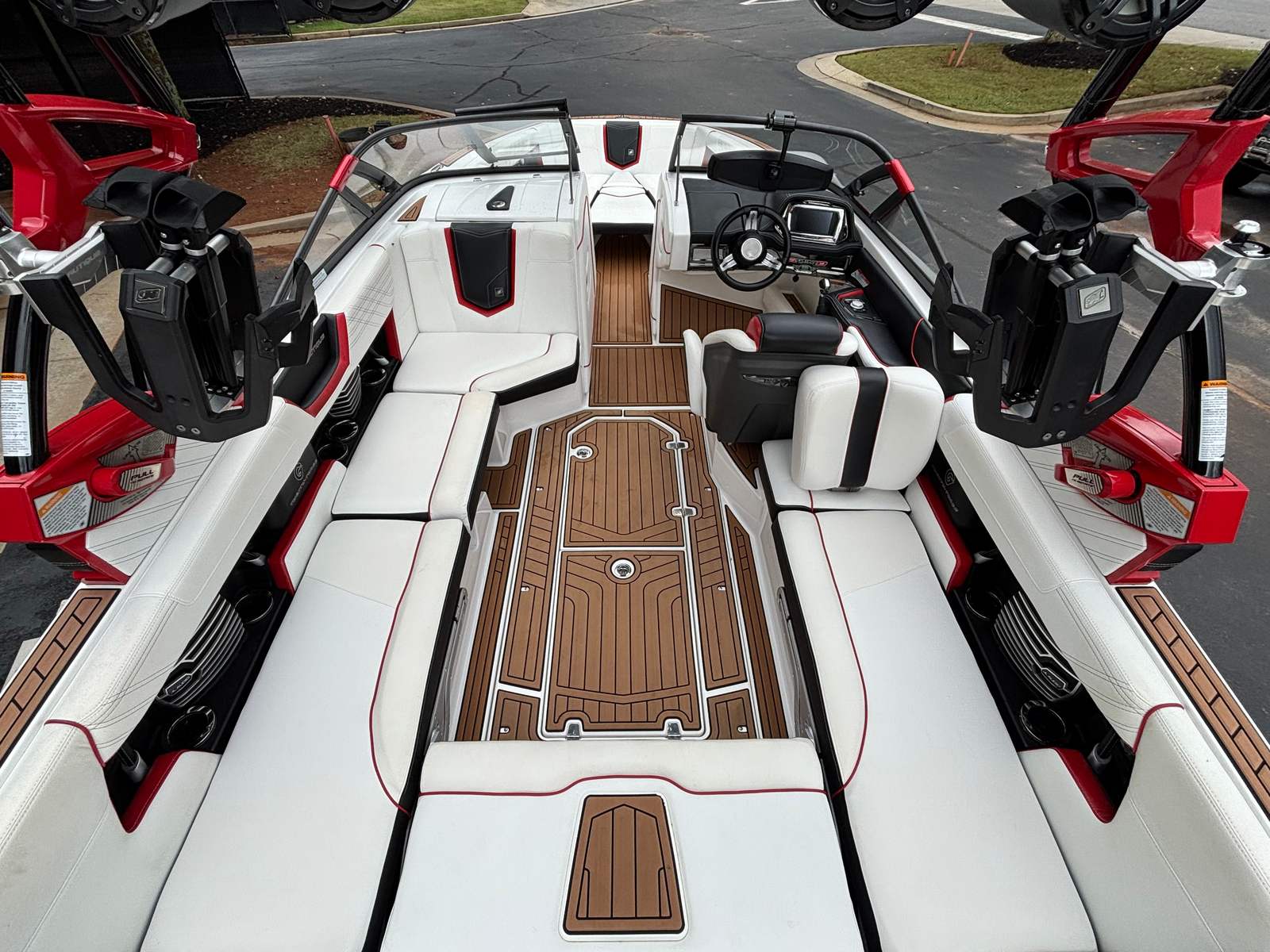Easily surf left to right at the push of a button. Equipped with premium JL Audio, the digital screen makes it possible to control everything at the helm, keeps this boat at the top of the food chain in not only wake performance but also interior functionality.