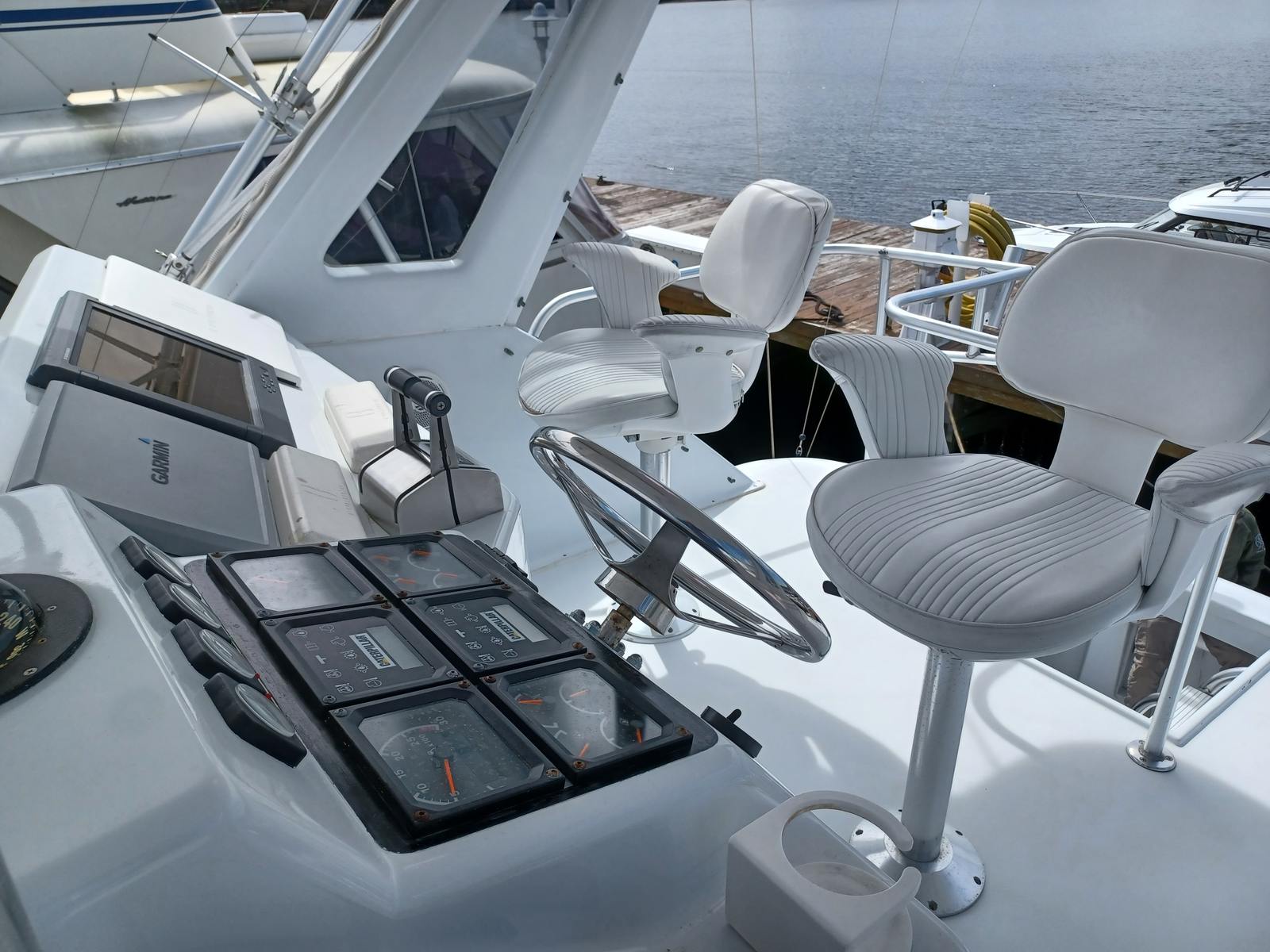 The Ocean Yachts 48 Super Sport is as practical as it is enjoyable. Its thoughtful design includes ample storage for fishing gear, coolers, and personal belongings, ensuring everything you need is always within reach. The twin engines not only provide impressive speed but also contribute to easier docking and maneuvering in tight spaces. Fuel efficiency is another key advantage, allowing you to spend more time on the water and less time at the fuel dock. The boat’s durable construction and reliable performance make it a smart investment for anyone seeking a used offshore fishing boat that delivers both excitement and peace of mind.