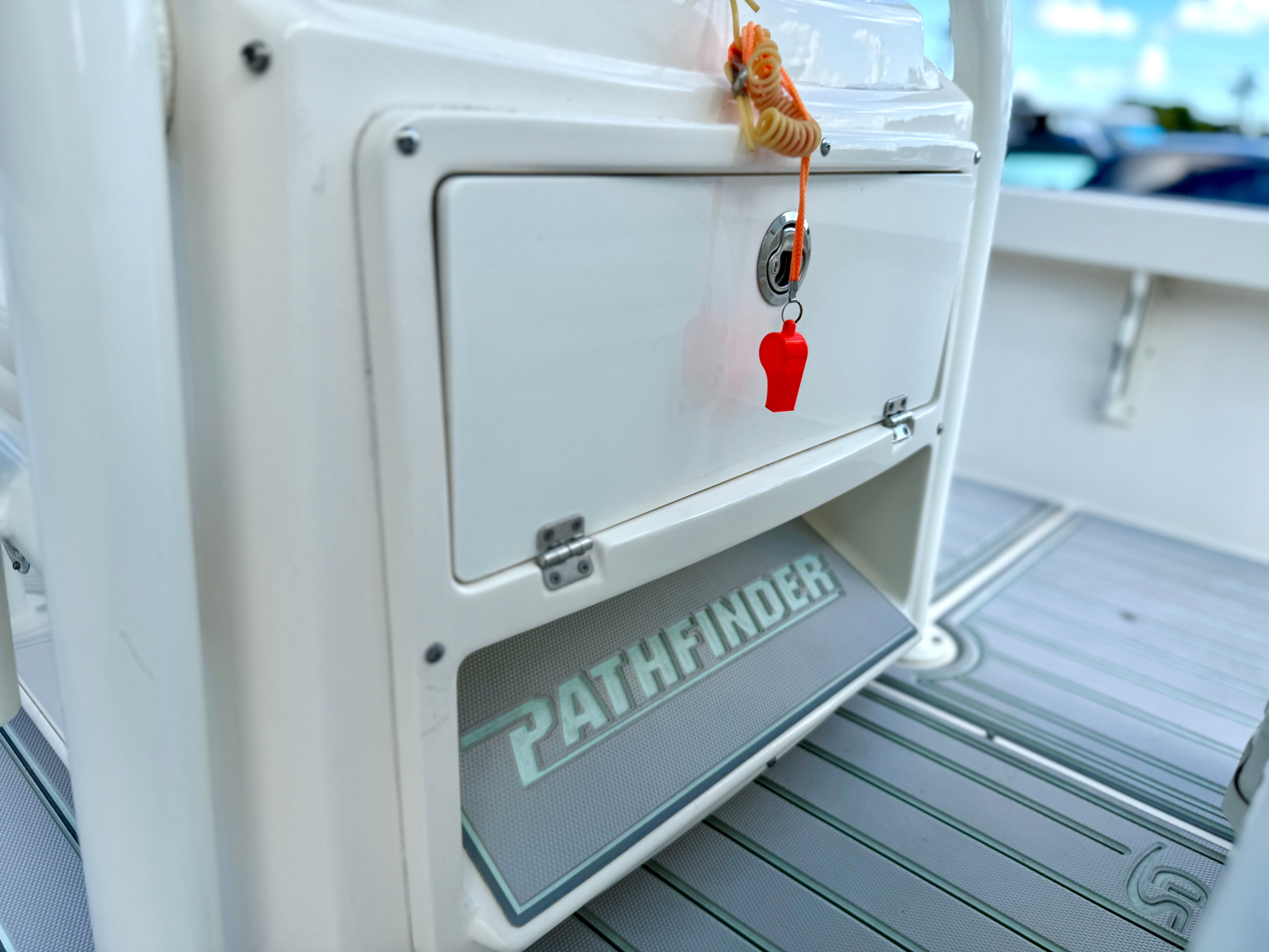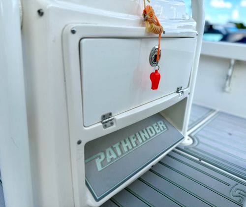The 2023 Pathfinder 2600 HPS Center Console is packed with features that cater to both fishing enthusiasts and leisure seekers. Its spacious deck layout allows for easy movement and unobstructed access to all areas of the boat, making it perfect for casting lines or socializing with guests. The Center Console design provides excellent visibility and control, while the ergonomic helm ensures comfortable navigation during long outings.Special features of the Pathfinder 2600 HPS include advanced hull construction for a smooth and stable ride, ample storage compartments for gear and personal items, and a thoughtfully designed seating arrangement that maximizes comfort for everyone on board. The boat’s layout is optimized for both fishing and relaxation, with plenty of room for coolers, tackle boxes, and other essentials. The durable materials and quality craftsmanship are evident throughout, reflecting Pathfinder’s commitment to building boats that stand the test of time.
