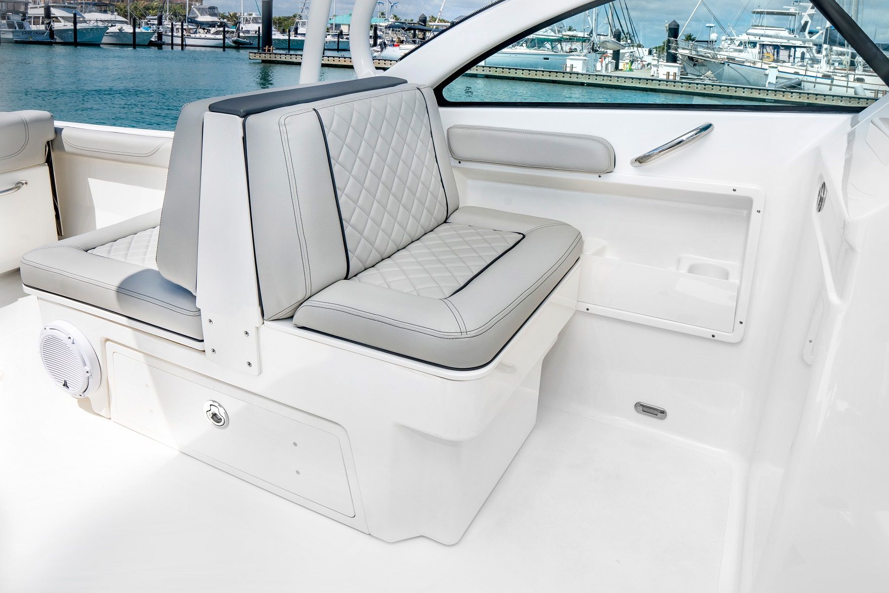 The 2026 Pursuit DC 246 is a brand-new dual console boat that measures just over 25 feet in length, offering ample space for relaxation, entertainment, and on-the-water activities. Its sleek Flag Blue hull, accented by an Arctic White bootstripe and Quartz Gray details, ensures that this boat turns heads wherever it goes. The upgraded upholstery in White and Gray adds a modern, sophisticated touch to the spacious seating areas, making every outing feel like a special occasion. With its innovative design and premium finishes, the DC 246 is engineered to deliver both style and substance for boaters who demand the best.