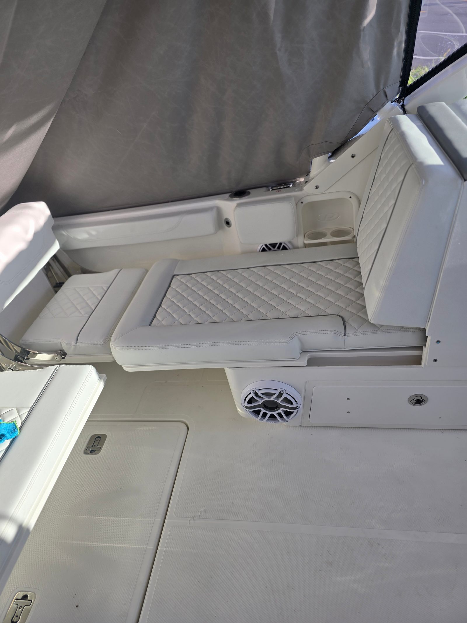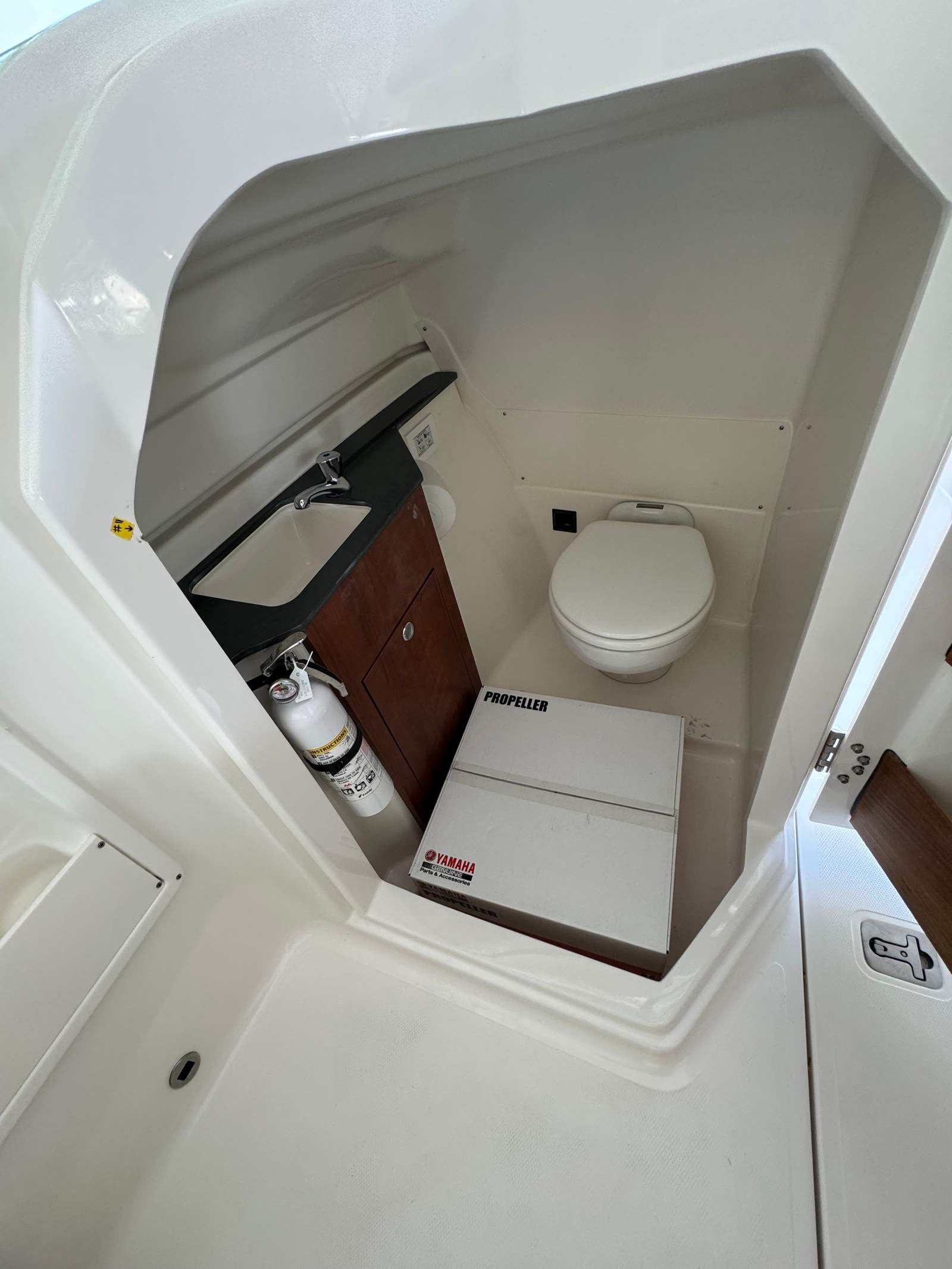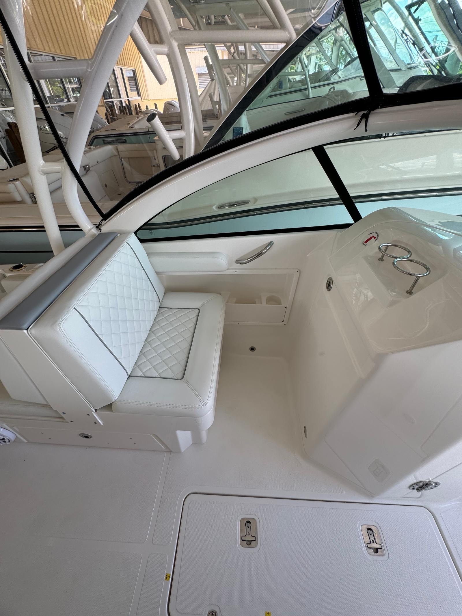 The Pursuit DC 246 is as practical as it is stylish. Its manageable length of just over 25 feet makes docking and trailering straightforward, even for those new to boating. The anchor windlass simplifies the process of setting and retrieving anchor, saving time and effort so you can focus on enjoying your day. The upgraded electric freshwater head and holding tank add a level of comfort that is especially appreciated during longer trips or when entertaining guests.Storage is thoughtfully integrated throughout the boat, providing ample space for water toys, fishing gear, and personal belongings. The dual console design offers protection from the elements, allowing you to extend your boating season and enjoy the water in a variety of conditions. Fuel efficiency is enhanced by the advanced Yamaha engine, helping you make the most of every outing without worrying about excessive fuel costs.