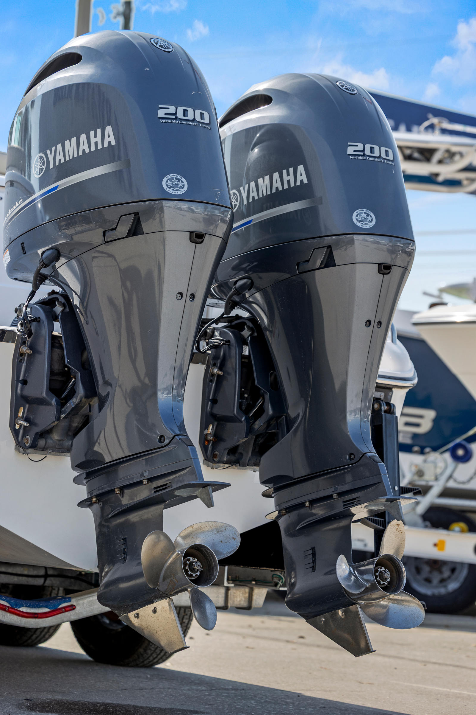 The Yamaha digital gauges, electronic throttle and shift (DES), and integrated hydraulic steering provide a responsive and intuitive helm experience. Whether docking in tight quarters or running in choppy conditions, this setup offers the precision and control you expect from a premium dual-console vessel.