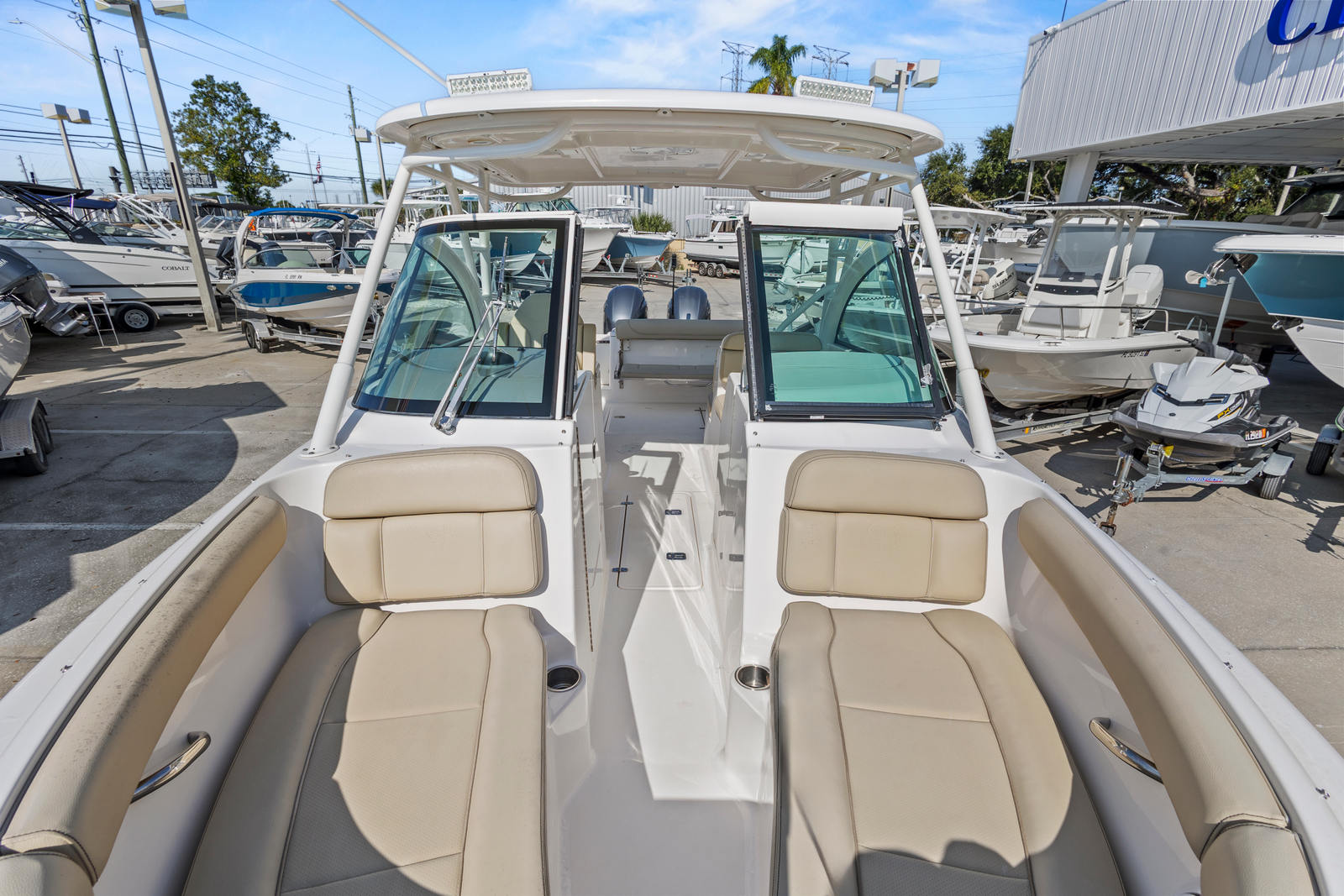 One of the defining features of the 265 DC is its well-appointed cabin and enclosed head. On the port side, you’ll find a spacious head compartment with a marine toilet, sink, and vanity—ventilated, easy to access, and a huge plus on long days aboard. Opposite, there’s a portside console cabin/storage space that can be used for gear, dry storage, or even a quick escape from the sun. Combined, these dual consoles provide ample storage and the kind of convenience rarely found in boats of this size.