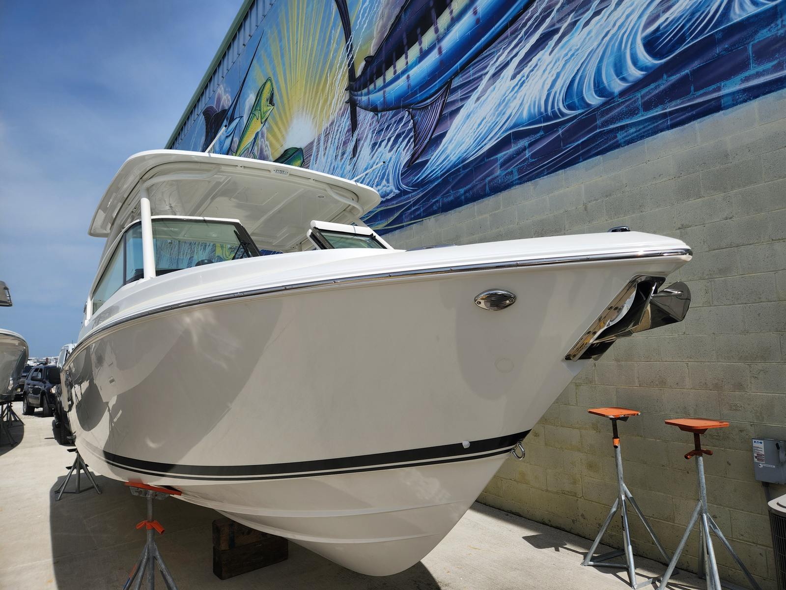 The Pursuit DC 266 is as practical as it is luxurious. The dual console design provides ample storage for gear, water toys, and personal items, keeping the deck clutter-free and organized. The anchor windlass add-on simplifies the process of securing your boat, making it easy to stop and enjoy your favorite spots without hassle. The boat’s efficient twin engines offer a balance of power and fuel economy, allowing you to spend more time on the water and less time at the fuel dock.Docking is made simple with the advanced maneuverability systems, giving you confidence in any marina or crowded anchorage. The durable construction and high-quality materials ensure that your Pursuit boat for sale will stand up to years of use, maintaining its beauty and performance season after season.