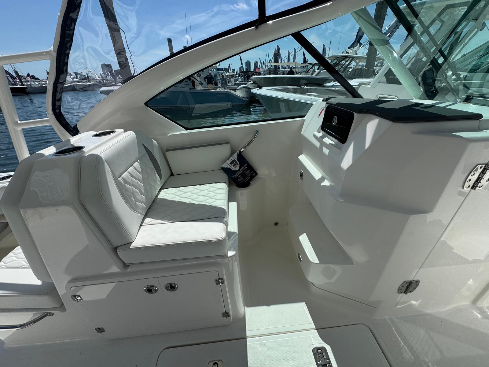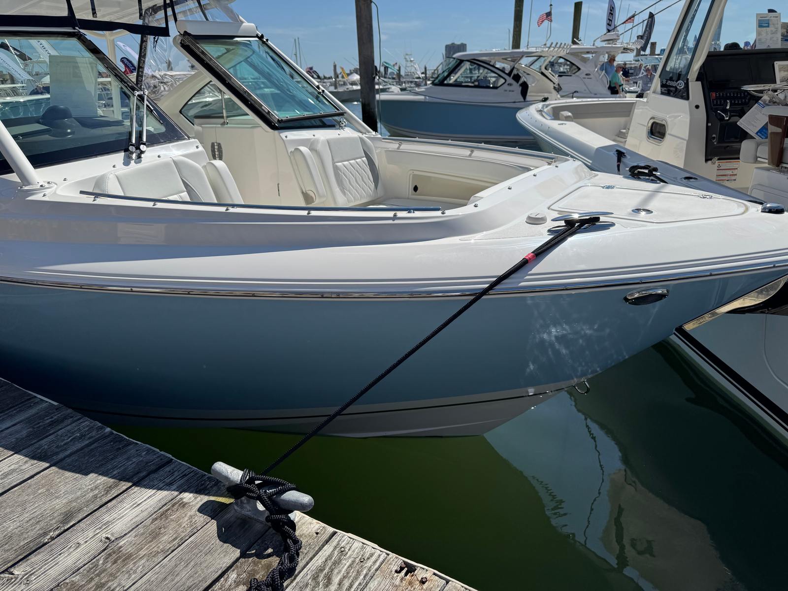 The 2026 Pursuit DC 266 measures an impressive 27.33 feet in length, offering ample space for family, friends, and gear. Its sleek Arctic Blue hull, accented by an Arctic White bootstripe and Quartz Gray details, ensures that this boat turns heads wherever it goes. The helm features a sophisticated Carbon finish, adding a touch of modern elegance to the captain’s domain. As a new model, the DC 266 promises the latest advancements in design and technology, making it a standout option for anyone searching for a Pursuit boat for sale.