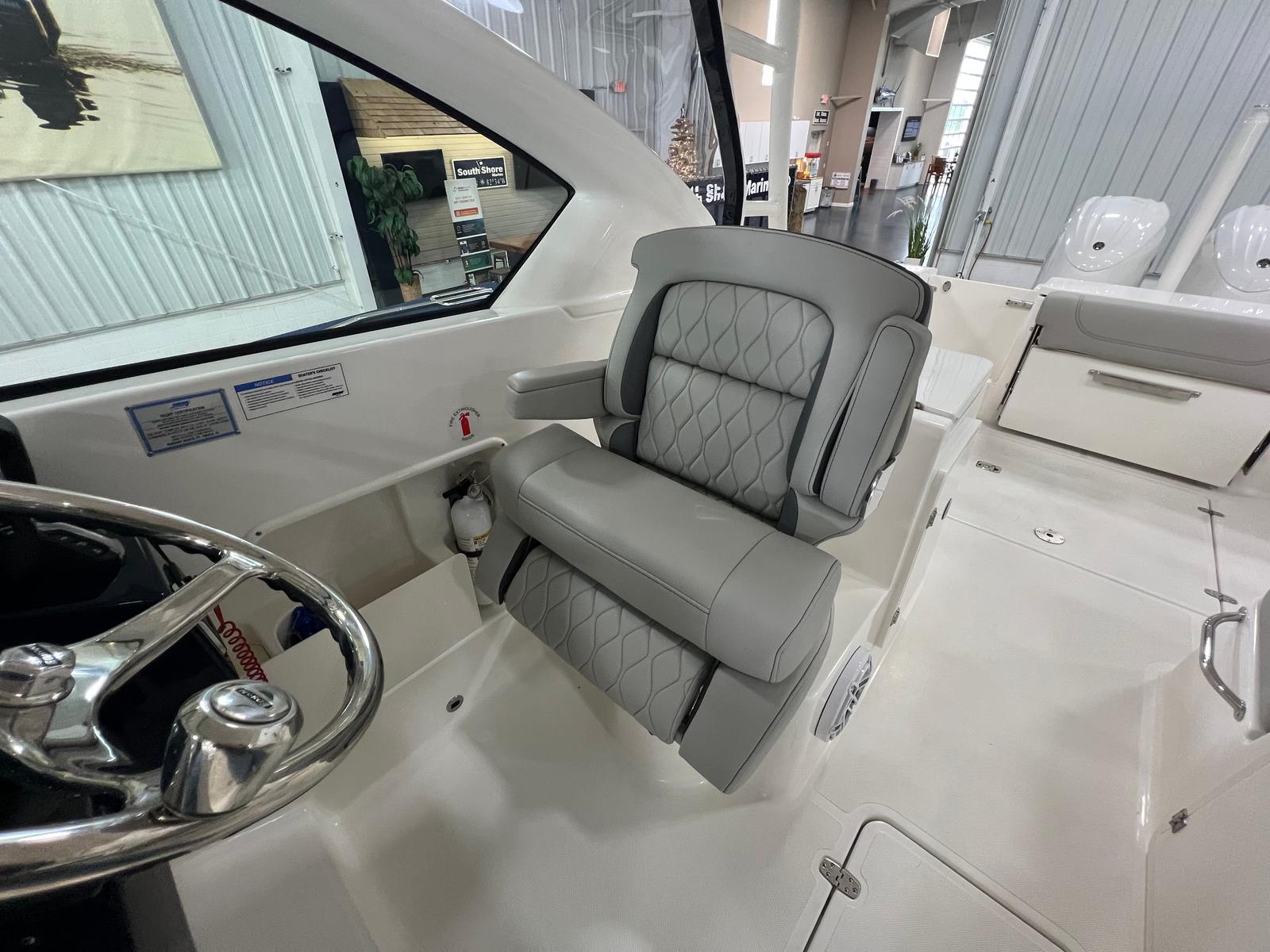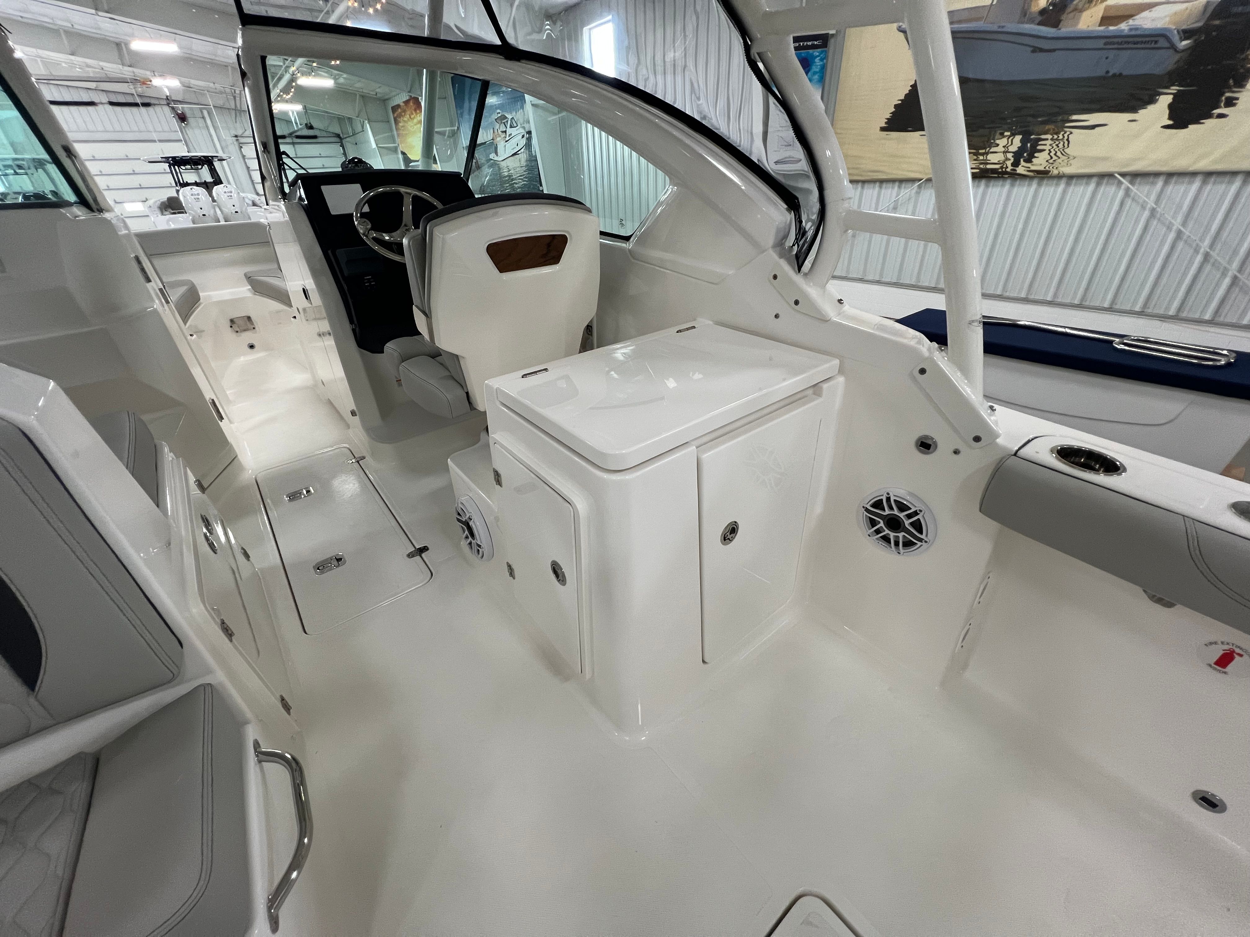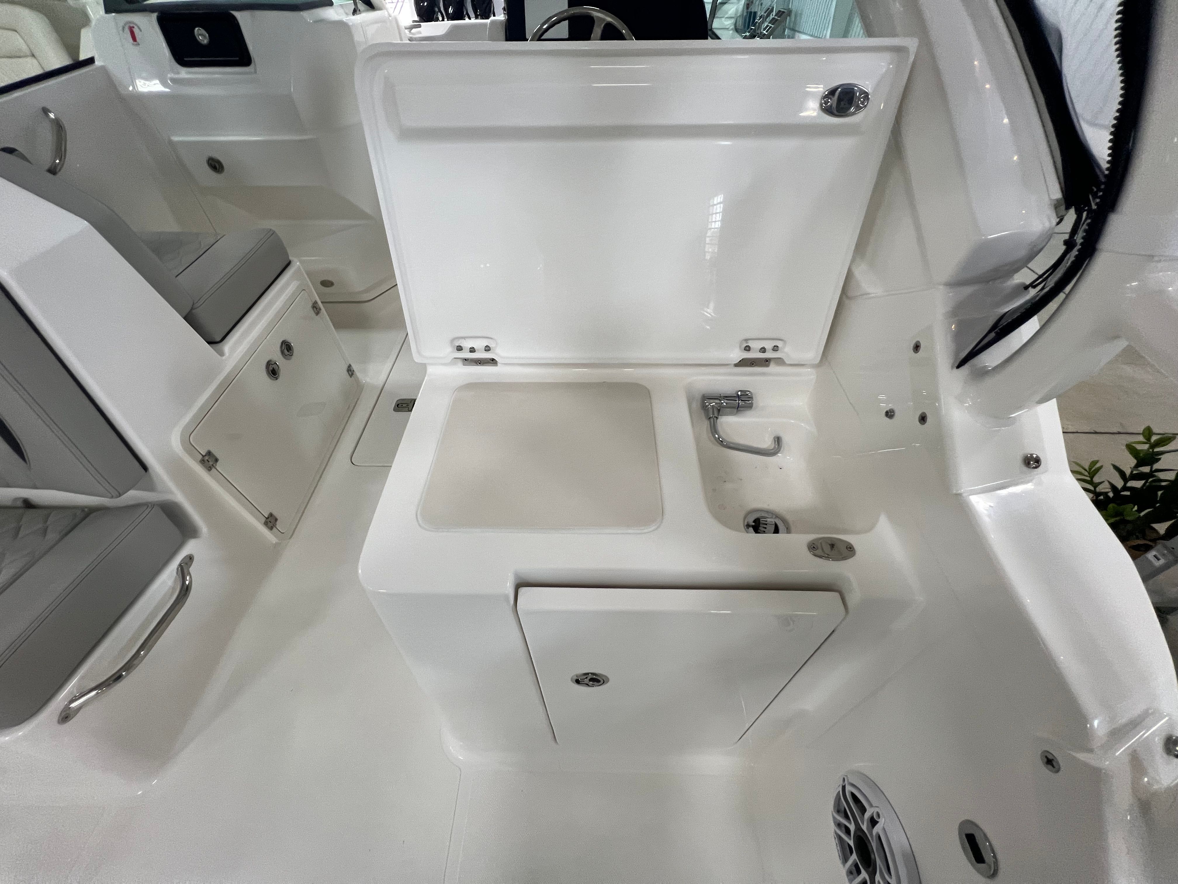 The Pursuit 266 DC is packed with features that cater to both relaxation and adventure. The dual console layout creates distinct spaces for both captain and passengers, offering ample seating and storage throughout the boat. The spacious cockpit is designed for socializing, with comfortable seating arrangements that make it easy to entertain friends and family. The bow area provides additional seating, perfect for soaking up the sun or enjoying a quiet moment on the water. Every inch of the Pursuit 266 DC is thoughtfully designed to maximize usability and enjoyment. The ergonomic helm station ensures that the captain has easy access to all controls and navigation equipment, while the wide walk-through windshield allows for seamless movement between the bow and cockpit areas. The boat’s generous beam enhances stability and provides plenty of room for everyone on board to stretch out and relax.