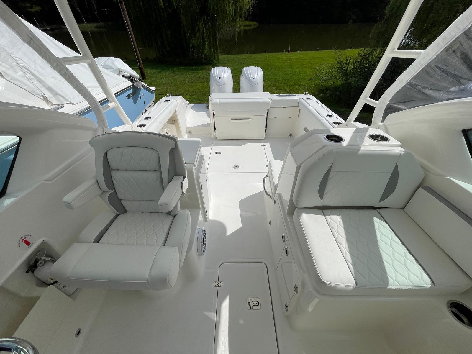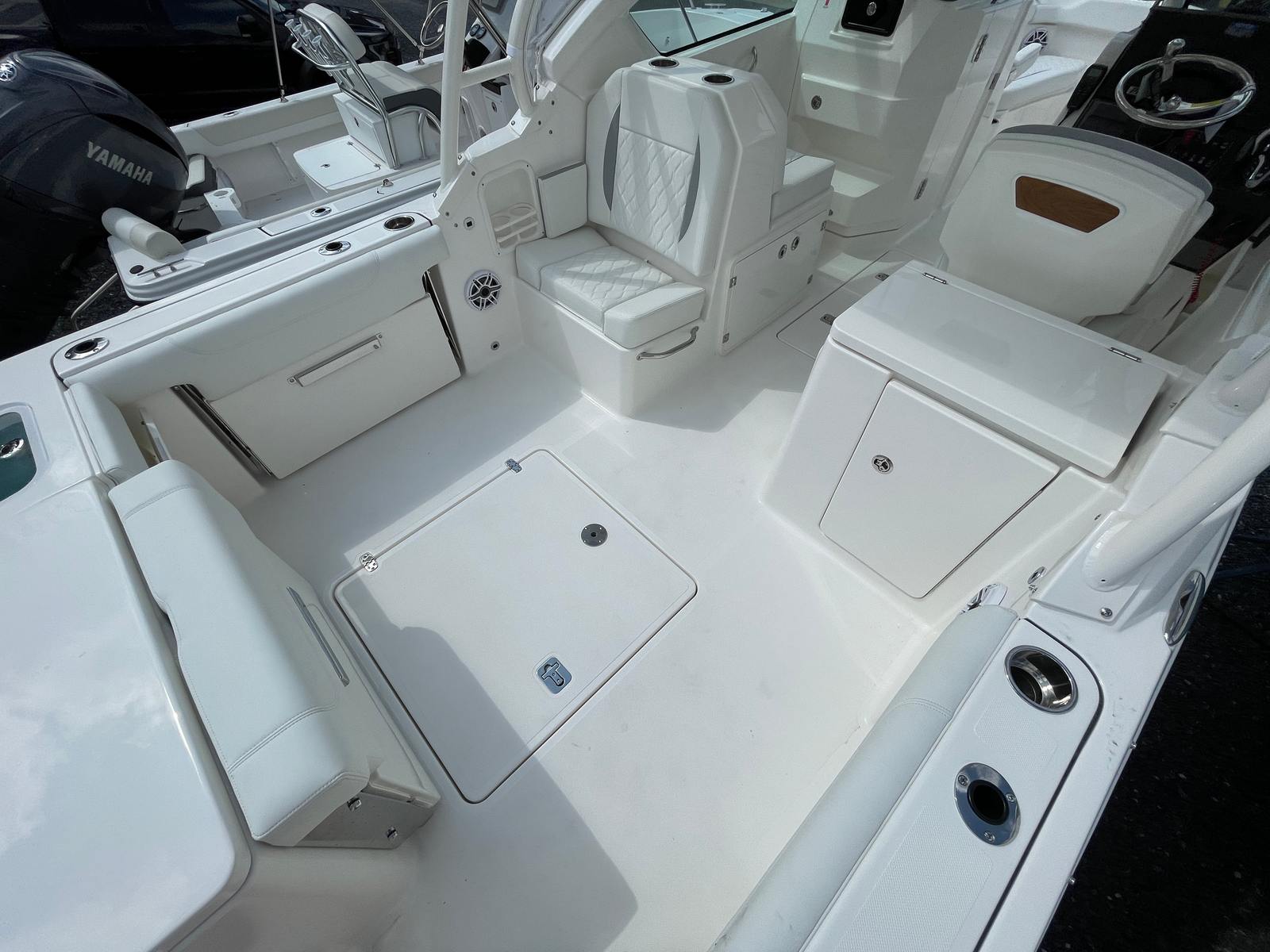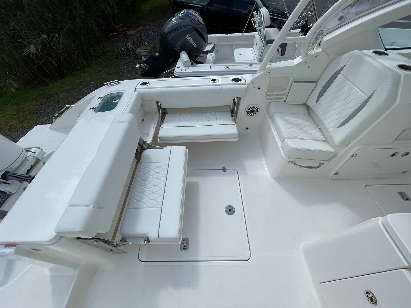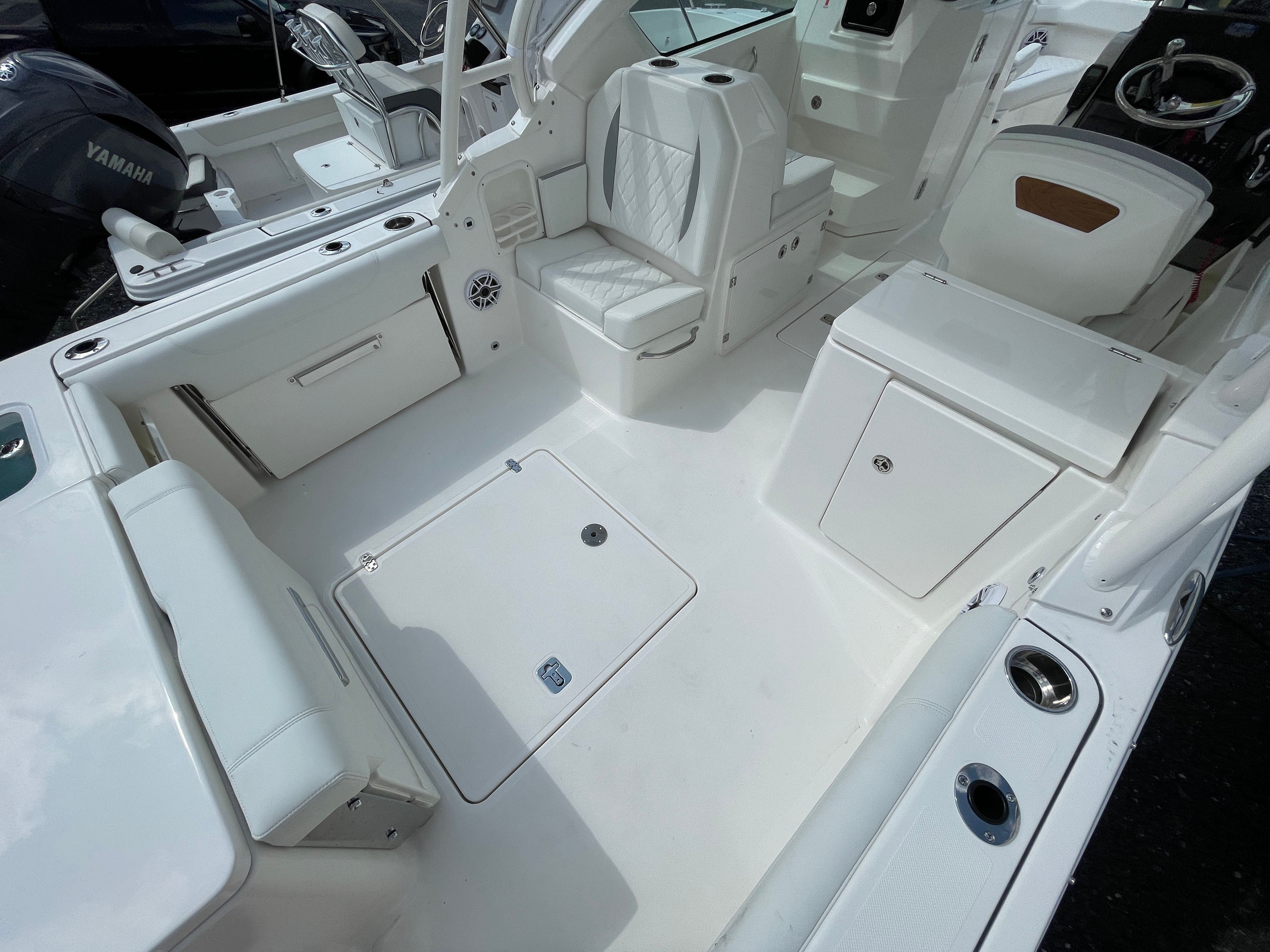 The Pursuit DC 266 is designed with practicality in mind, making ownership as enjoyable as it is rewarding. The anchor windlass system streamlines the anchoring process, saving you time and effort when you want to stop and relax. The digital steering and control systems make docking and maneuvering a breeze, even in challenging conditions. The boat’s generous length provides ample storage for gear, water toys, and supplies, keeping the deck clutter-free and organized.Fuel efficiency is enhanced by the twin Yamaha engines, allowing you to spend more time on the water and less time at the fuel dock. The durable Neptune Gray hull and high-quality finishes ensure that your boat will maintain its stunning appearance for years to come, with minimal maintenance required.