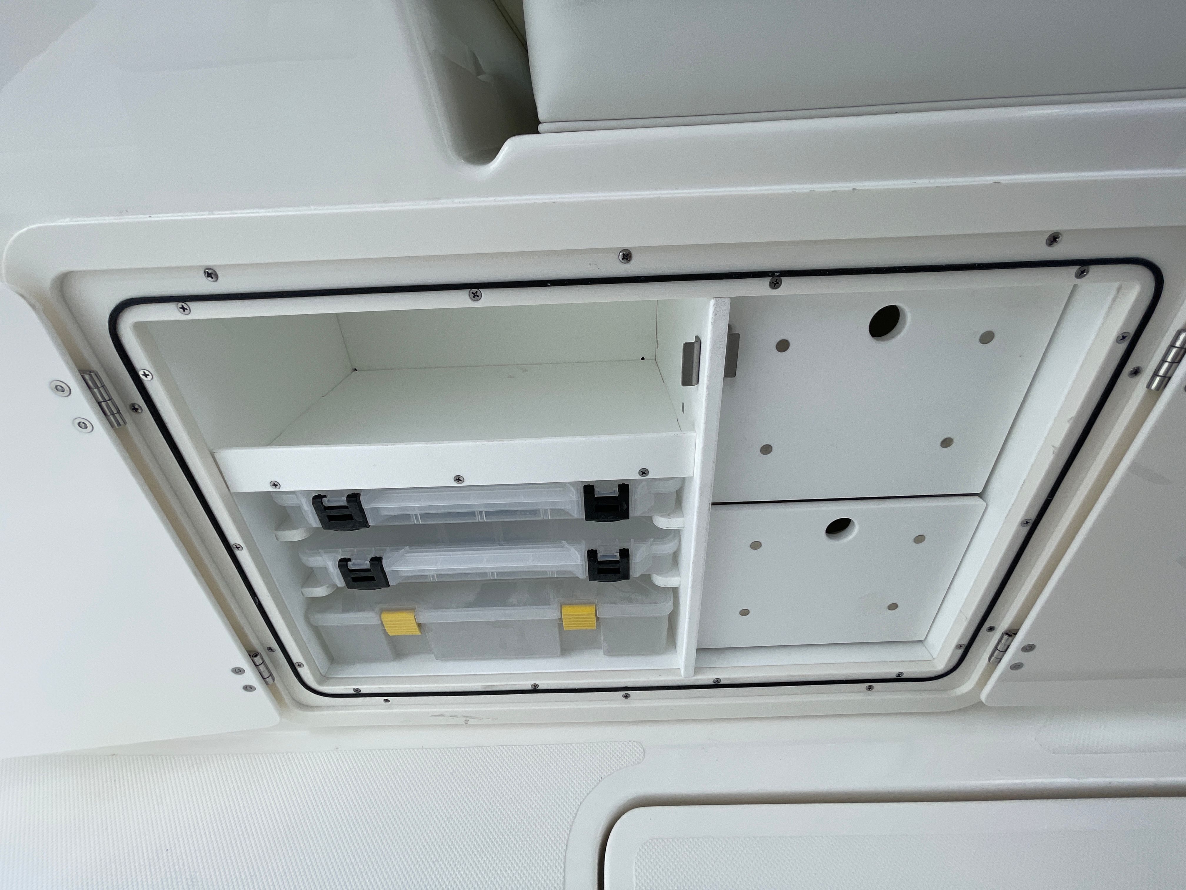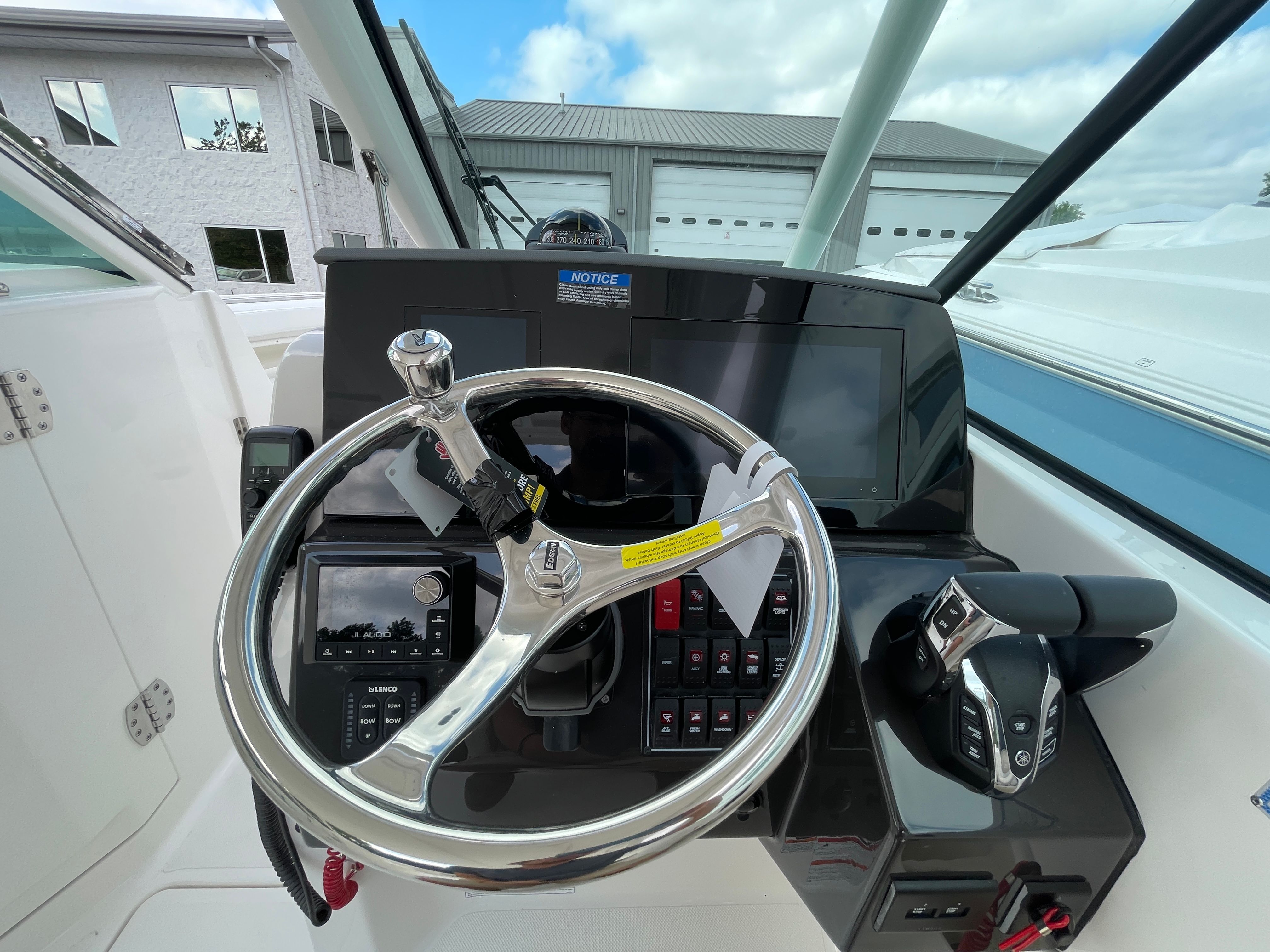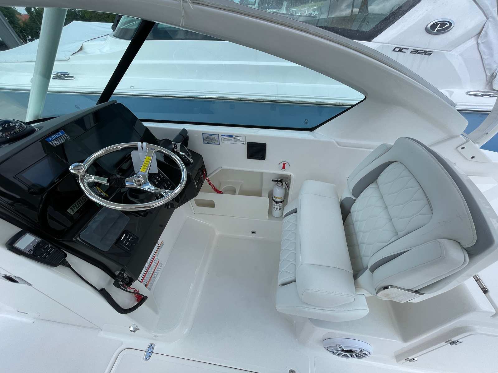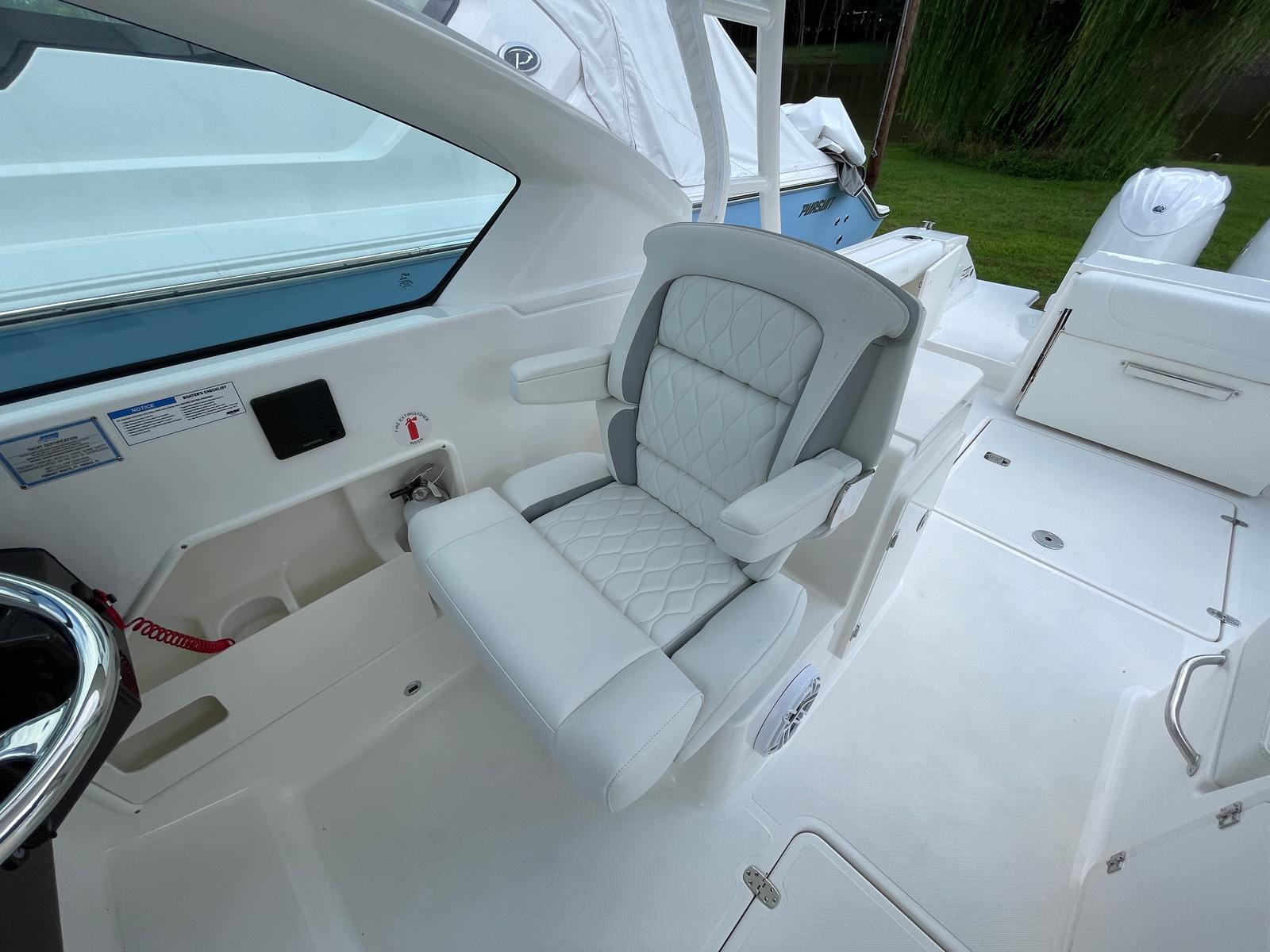 This Pursuit DC 266 is loaded with premium features designed to enhance every moment on board. The Neptune Gray hull and Platinum bootstripe create a sophisticated, modern look, while the Carbon helm adds a touch of high-tech elegance. The upgraded white/gray upholstery not only elevates the aesthetic but also provides superior comfort for you and your guests.For those who love to entertain, the fiberglass bow table with both bow and cockpit mounts offers versatile dining and socializing options. The anchor windlass system with remote makes anchoring effortless, allowing you to secure your spot with the push of a button. When the sun sets, the three Sea Blaze Quattro Spectrum underwater lights and four blue LED mid-level cockpit accent lights create a vibrant, inviting atmosphere, perfect for evening cruises or dockside gatherings.Music lovers will appreciate the premium JL Audio stereo upgrade, featuring a custom-tuned 6-channel DSP amp, subwoofer, four sport speakers with blue backlighting, an external antenna, and a Sirius receiver with a three-month subscription. Whether you’re relaxing at anchor or cruising at speed, you’ll enjoy crystal-clear sound throughout the boat.