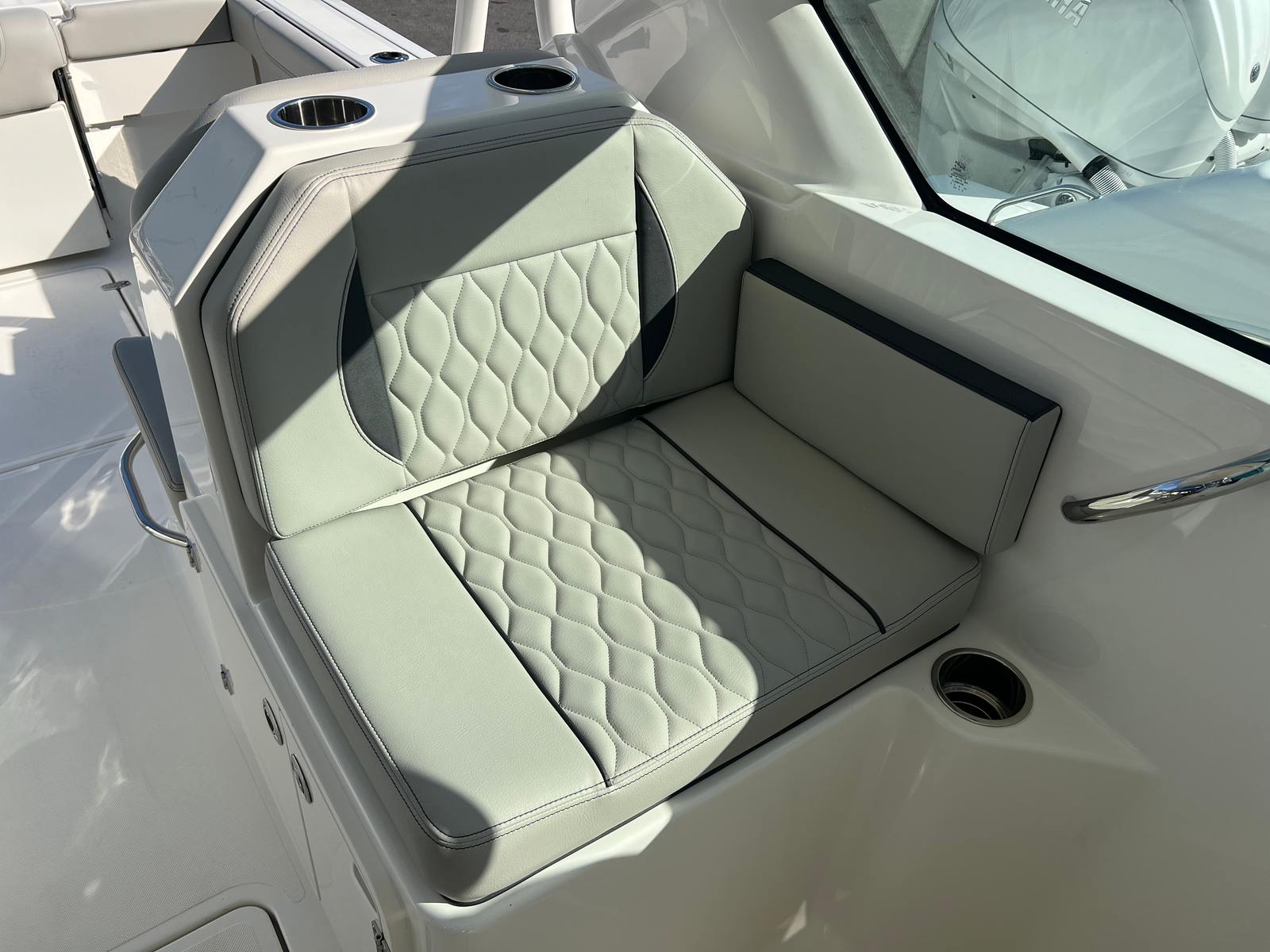 Power and precision are at the heart of the Pursuit DC 266. Equipped with twin Yamaha F200 engines in a striking pearlescent white finish, this dual console boat delivers a combined 400 horsepower. The advanced Digital Electronic Steering and Helm Master EX Digital Electronic Control (DEC) system provide seamless handling and effortless maneuverability, ensuring a smooth and responsive ride in a variety of conditions. The Multifunction Display Interface puts all essential information at your fingertips, allowing you to monitor performance metrics and navigate with confidence. Whether you are cruising at high speeds or enjoying a leisurely day on the water, the Pursuit DC 266 offers a thrilling and reliable boating experience.