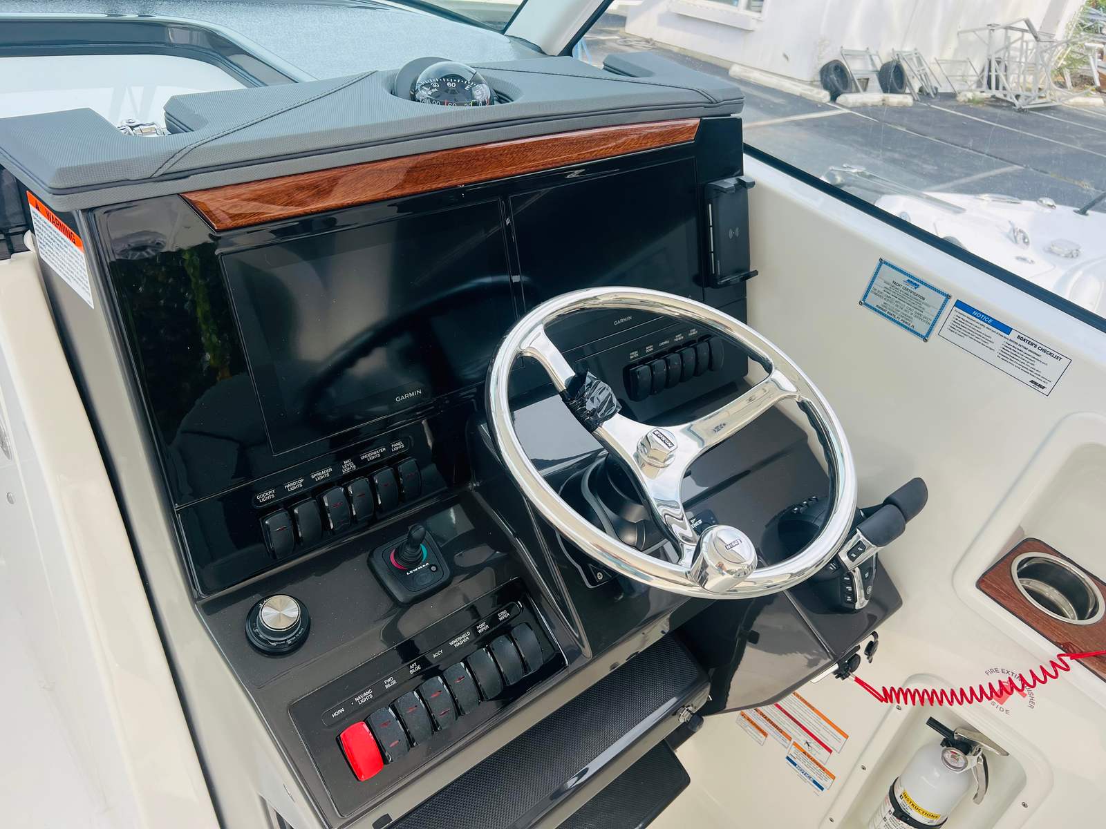 Owning a Pursuit DC 306 Dual Console boat means embracing a lifestyle of fun, relaxation, and adventure. The spacious layout accommodates family and friends with ease, offering plenty of room for sunbathing, dining, and socializing. The convertible bow table and sun pad create a versatile space for lounging or enjoying meals with a view. The premium stereo system sets the mood for every outing, whether you’re hosting a party or unwinding after a day of exploration.The advanced helm and steering systems make piloting the DC 306 intuitive and enjoyable, while the bow thruster simplifies docking and close-quarters maneuvering. The underwater lights add a touch of magic to evening cruises, illuminating the water and creating a captivating atmosphere. With ample storage and a dedicated refrigerator/freezer, you’ll have everything you need for extended trips and spontaneous adventures.