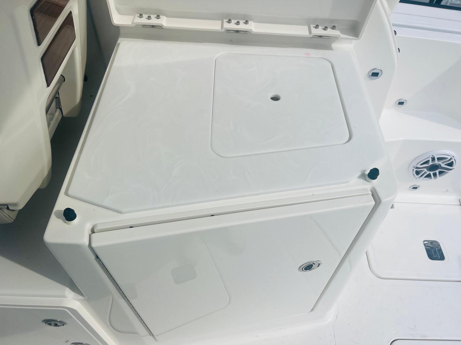 - 12v 2.3 cubic ft Refrigerator/Freezer, Stainless Steel (replaces Standard Tackle Storage) (Requires Shore Power Package)