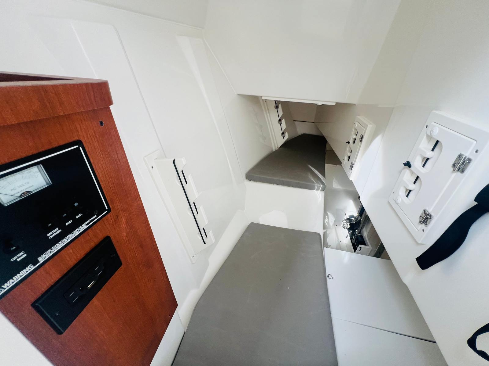The Pursuit DC 306 is packed with premium features designed to enhance your boating experience. The Multifunction Display Interface puts navigation, engine data, and entertainment at your fingertips, while the bow thruster (requires the shore power package) offers superior maneuverability for docking and tight spaces. The helm features a sophisticated carbon finish, adding a modern touch to the captain’s command center.Enjoy the ambiance created by three all-color Sea Blaze Quattro Spectrum underwater lights, perfect for evening cruises and dockside gatherings. The Premium Stereo Upgrade by JL Audio includes a custom-tuned 6-channel DSP amp, subwoofer, four M6 Sport speakers with blue backlighting (excluding speakers over the dash), an external antenna, Sirius receiver, and a three-month subscription—ensuring your favorite tunes are always part of the adventure.The bow table converts into a sun pad with a cushion, offering flexible seating and lounging options for guests. For added convenience, the 12v 2.3 cubic ft stainless steel refrigerator/freezer (requires shore power package) replaces the standard tackle storage, making it easy to keep refreshments and snacks chilled throughout the day. The 120V/60Hz 30 Amp Shore Power Package with cord provides reliable power for onboard systems, enhancing comfort and functionality wherever you dock.