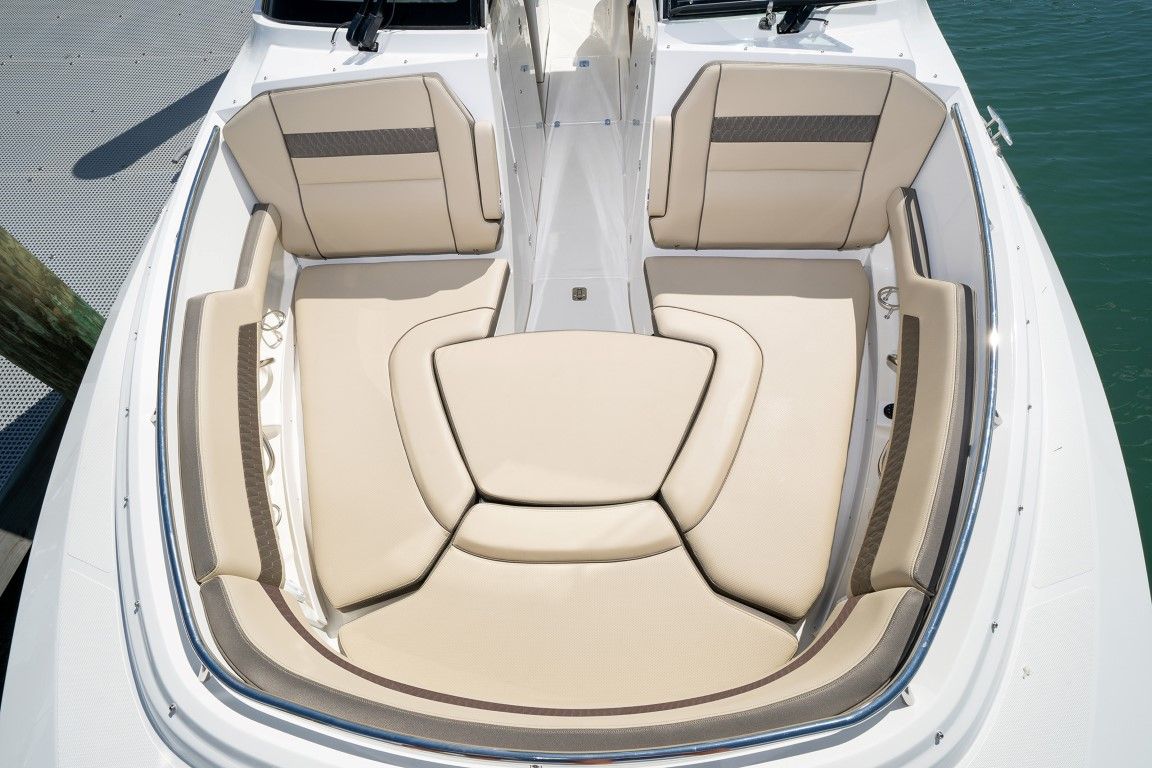 he Pursuit 326 DC is loaded with features that cater to both leisure and adventure. The spacious dual console layout provides separate helm and passenger areas, offering flexibility for different activities. The ergonomically designed helm station ensures easy access to controls and navigation equipment, enhancing the captain’s experience. Plush seating throughout the boat invites relaxation, while the expansive bow and cockpit areas are perfect for sunbathing, dining, or socializing. Storage solutions are thoughtfully integrated, allowing you to stow gear, water toys, and personal items securely. The Pursuit 326 DC also boasts advanced safety features, ensuring peace of mind for you and your guests during every voyage.